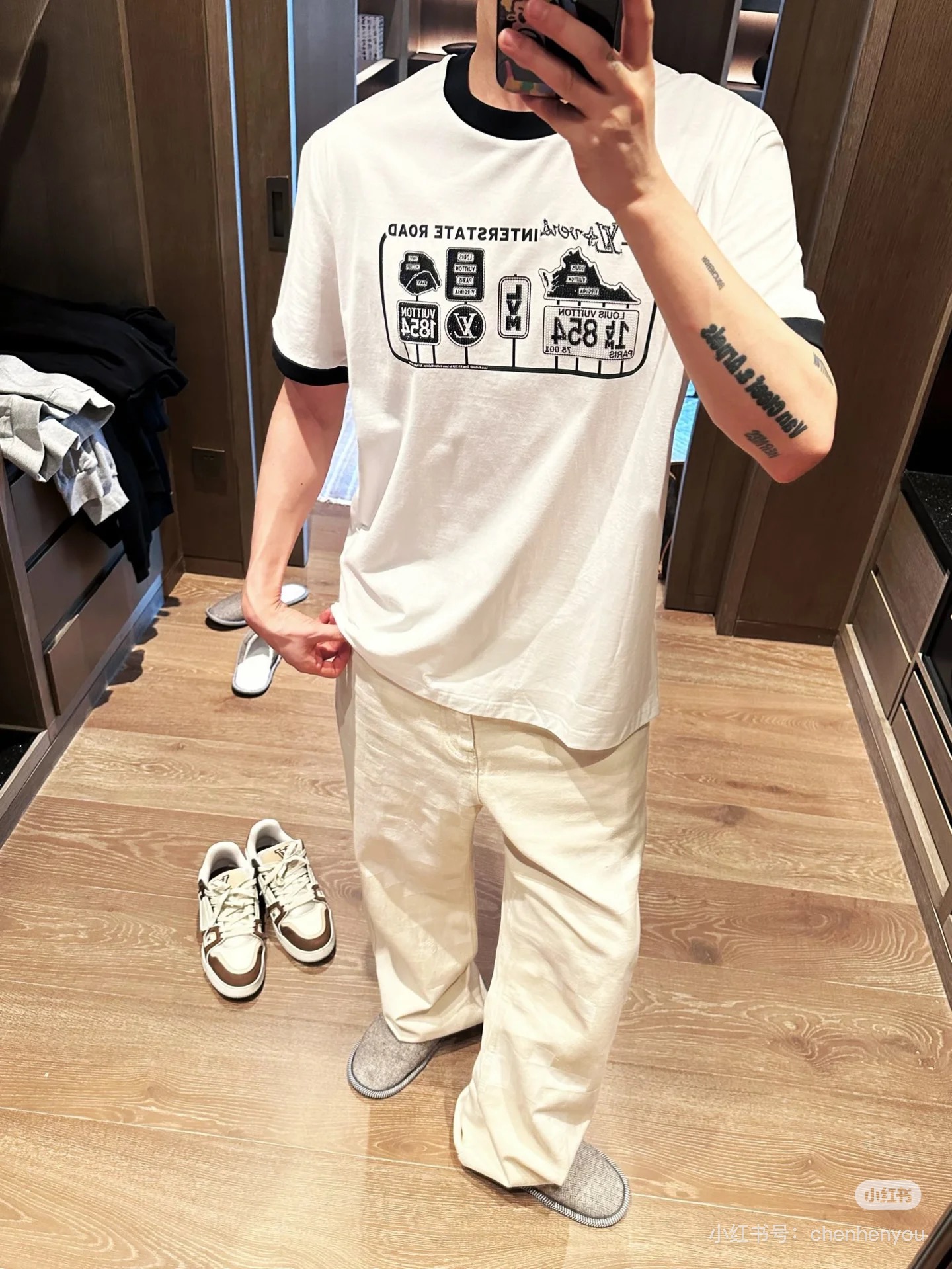 这款衣服是AAAAA 1:1 质量 (非常棒). 使用了和原版一模一样的材料. 商标部分也保持了和路易威登/Louis Vuitton一样. 图片拍摄是实物衣服拍摄, 您所收到的实物保证和我们图片一模一样.