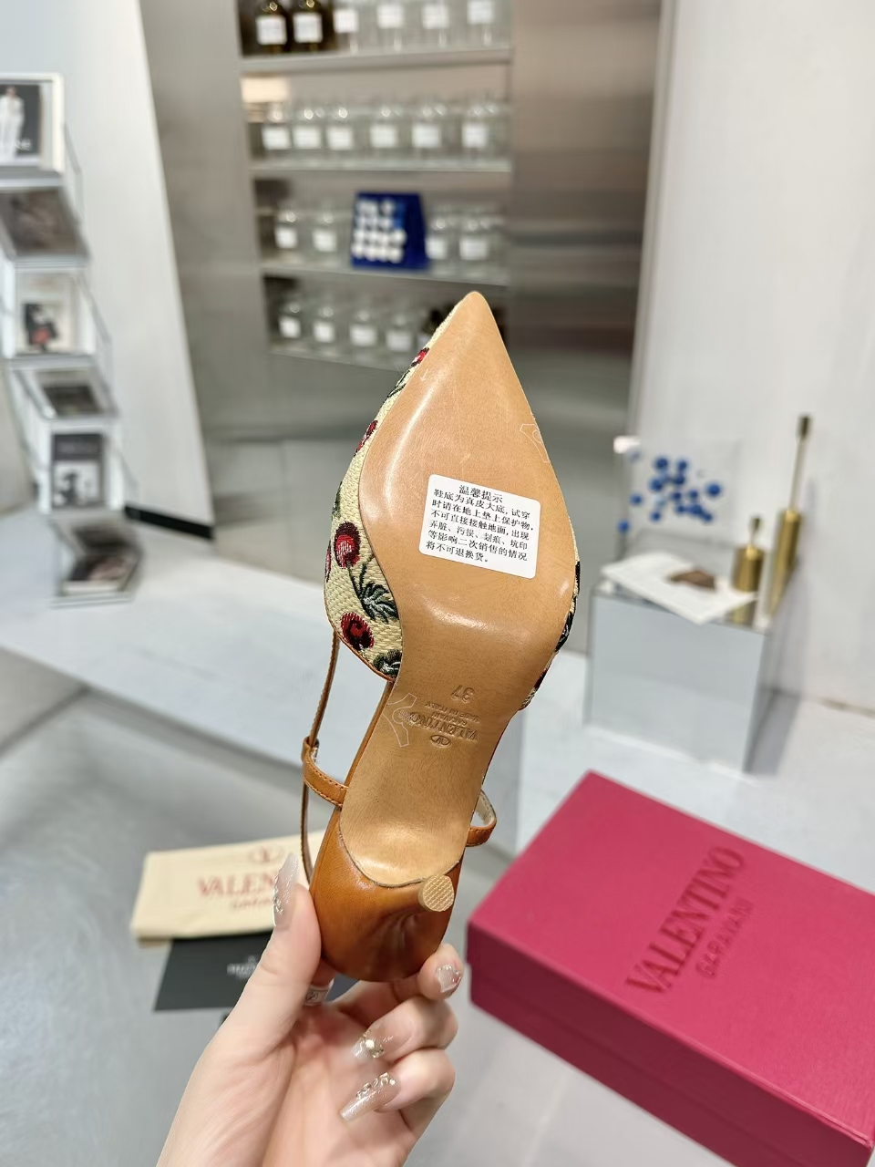 这款鞋子是AAAAA 1:1 质量 (非常棒). 使用了和原版一模一样的材料. 商标部分也保持了和华伦天奴/Valentino一样. 图片拍摄是实物鞋子拍摄, 您所收到的实物保证和我们图片一模一样.