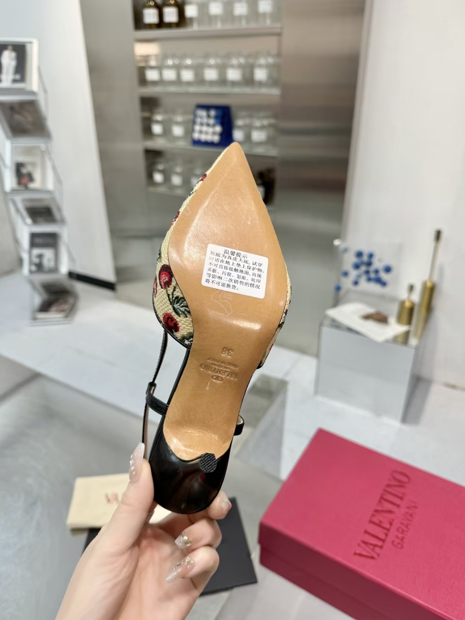这款鞋子是AAAAA 1:1 质量 (非常棒). 使用了和原版一模一样的材料. 商标部分也保持了和华伦天奴/Valentino一样. 图片拍摄是实物鞋子拍摄, 您所收到的实物保证和我们图片一模一样.