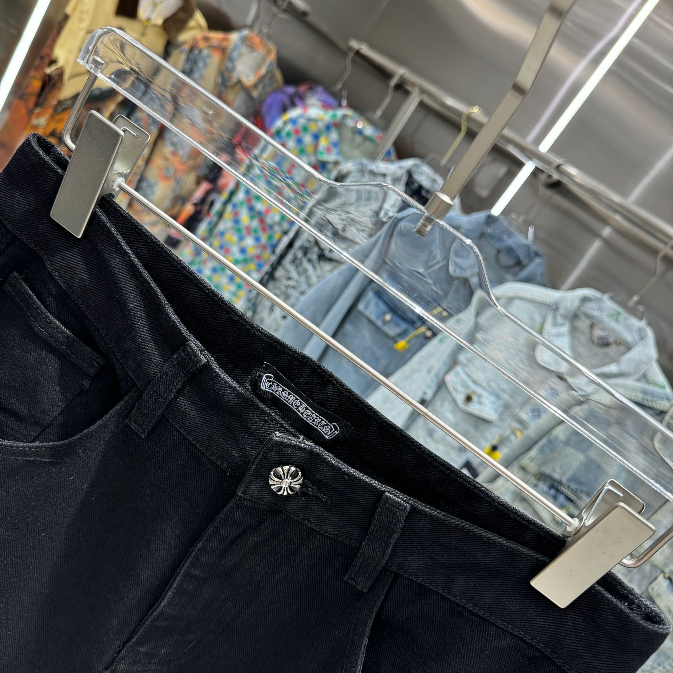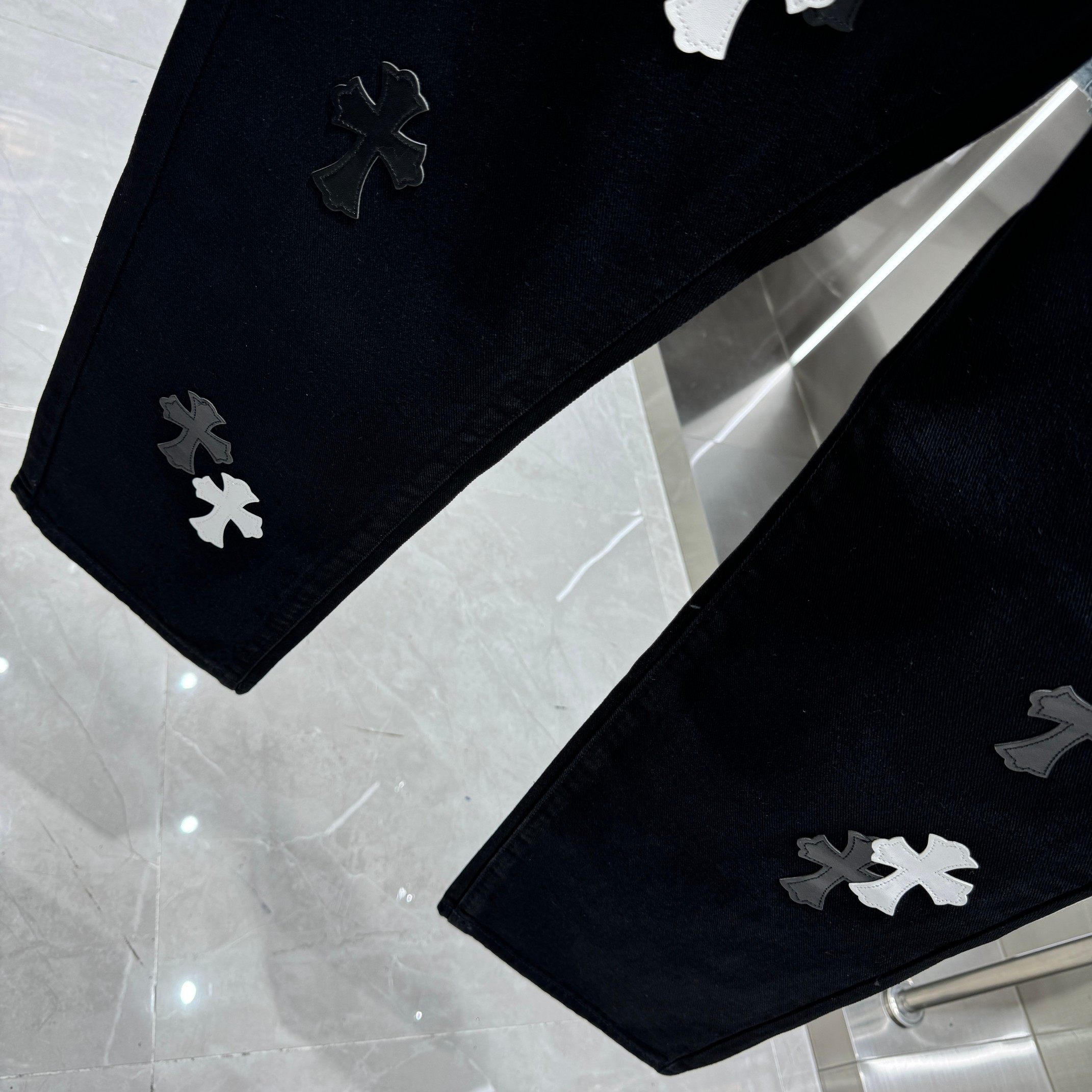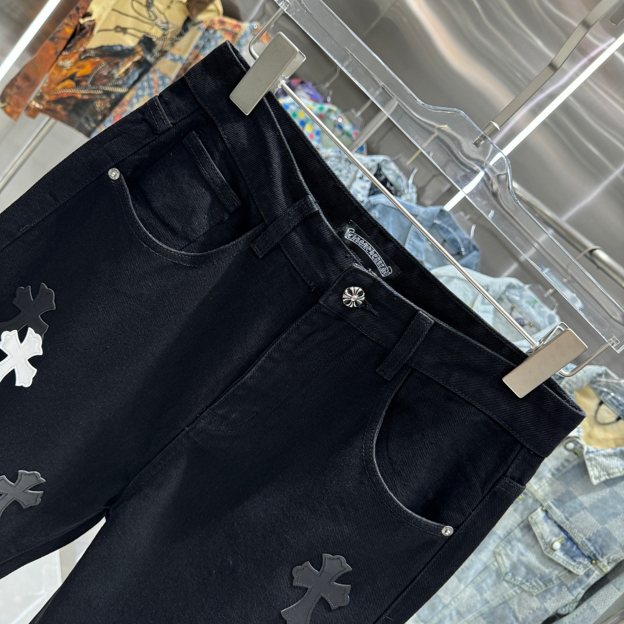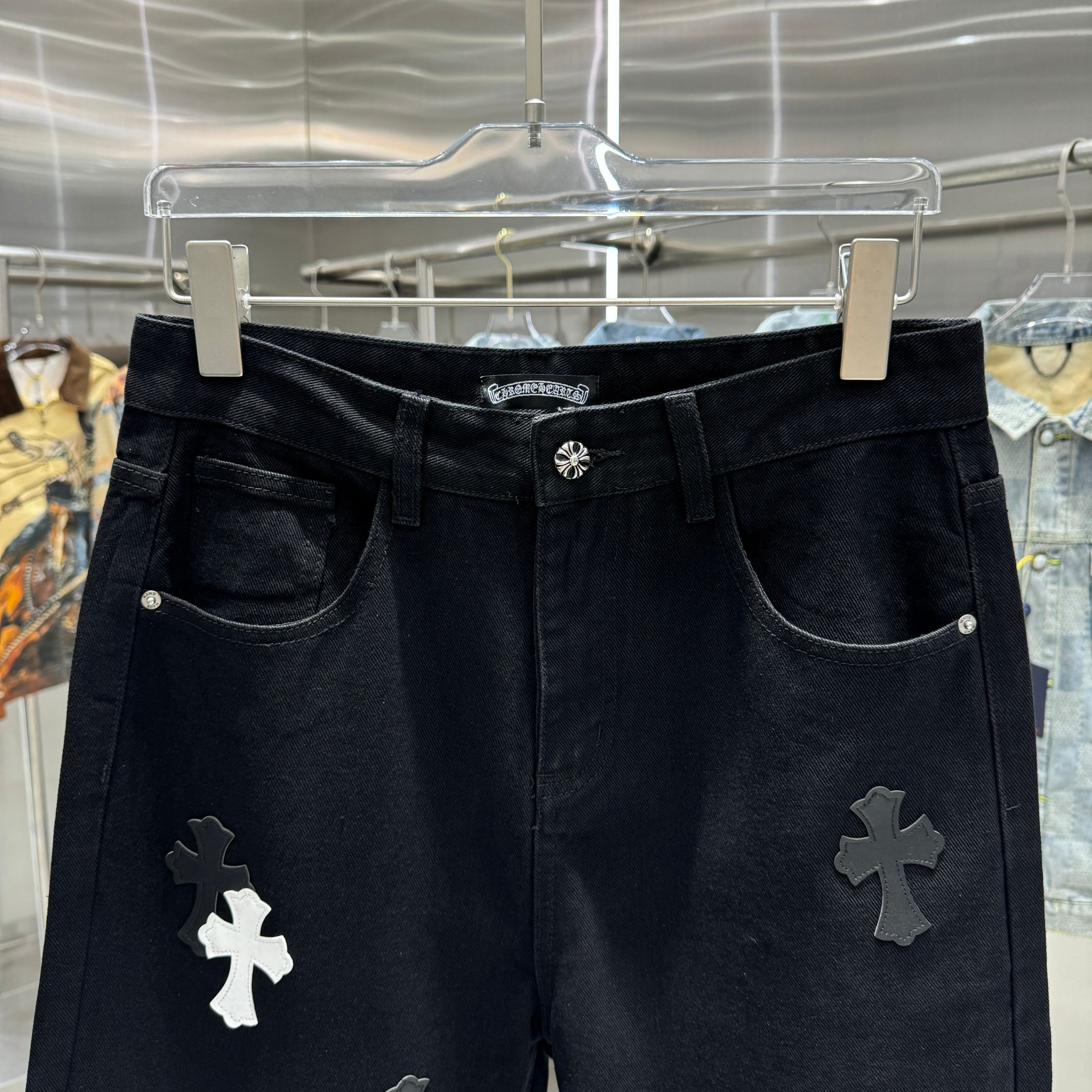 这款衣服是AAAAA 1:1 质量 (非常棒). 使用了和原版一模一样的材料. 商标部分也保持了和克罗心/Chrome Hearts一样. 图片拍摄是实物衣服拍摄, 您所收到的实物保证和我们图片一模一样.