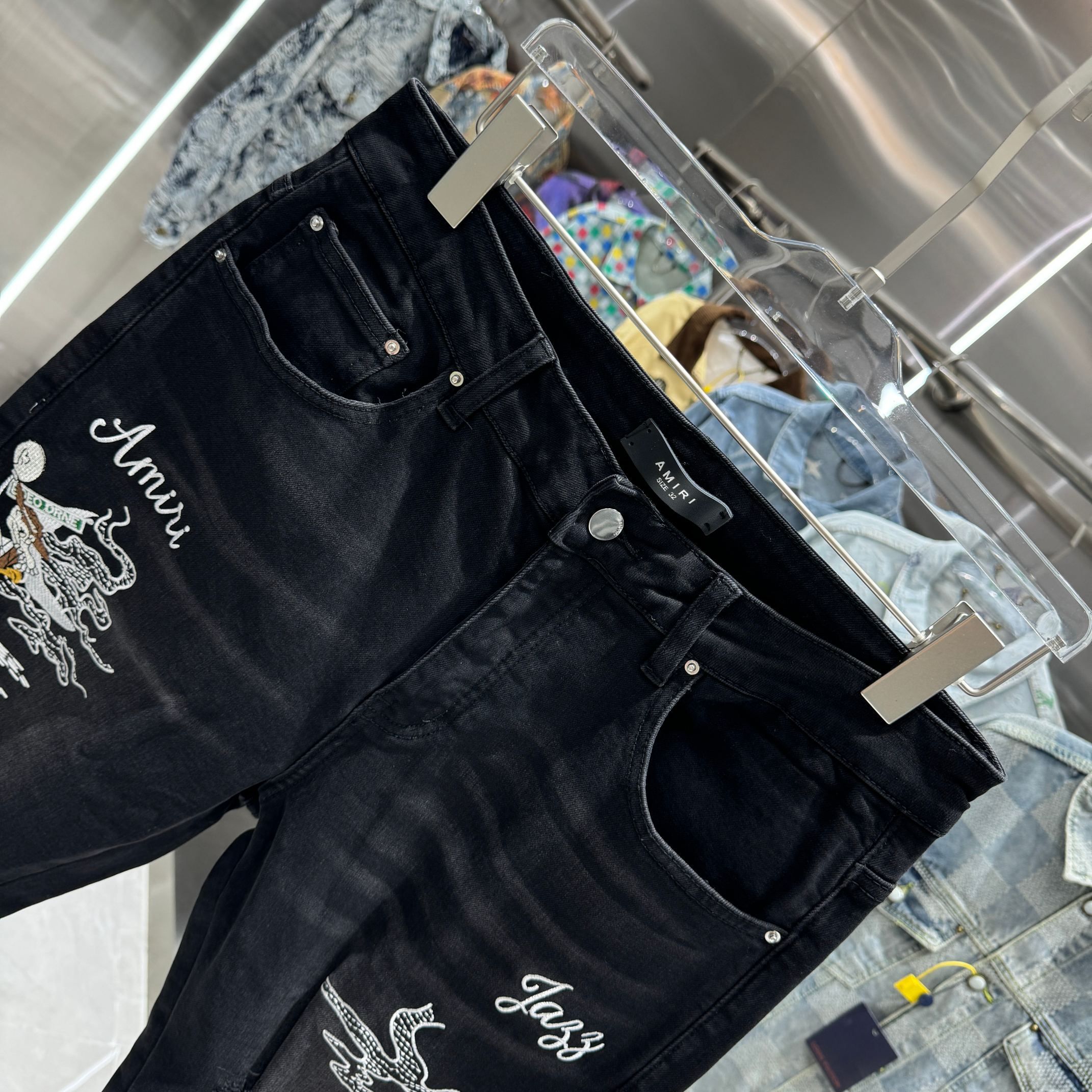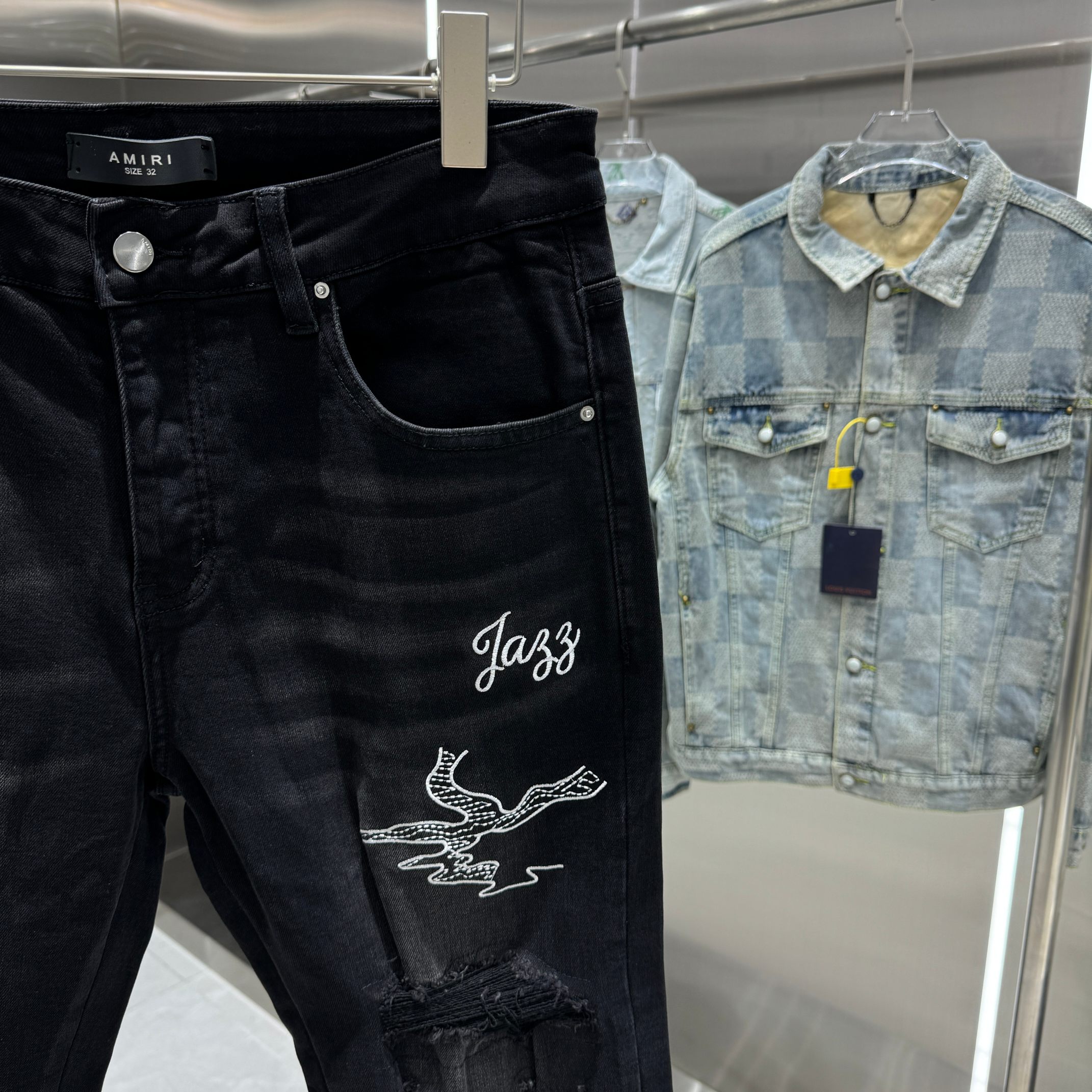 这款衣服是AAAAA 1:1 质量 (非常棒). 使用了和原版一模一样的材料. 商标部分也保持了和AMIRI一样. 图片拍摄是实物衣服拍摄, 您所收到的实物保证和我们图片一模一样.