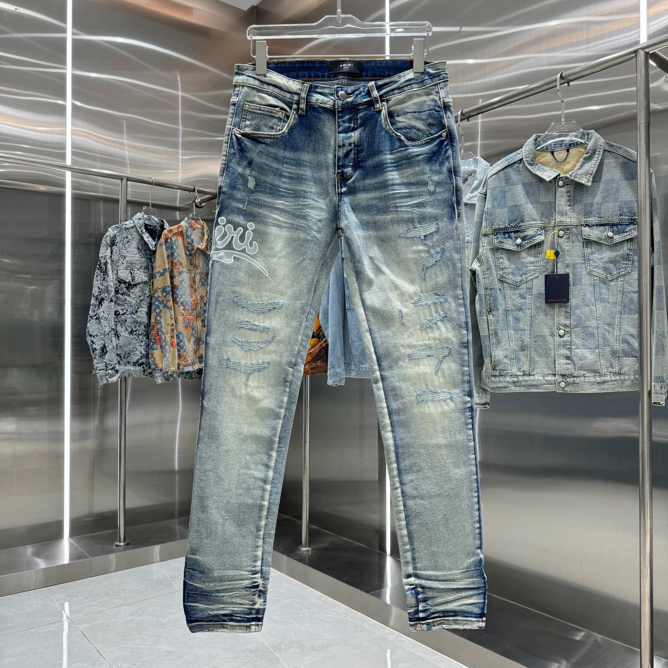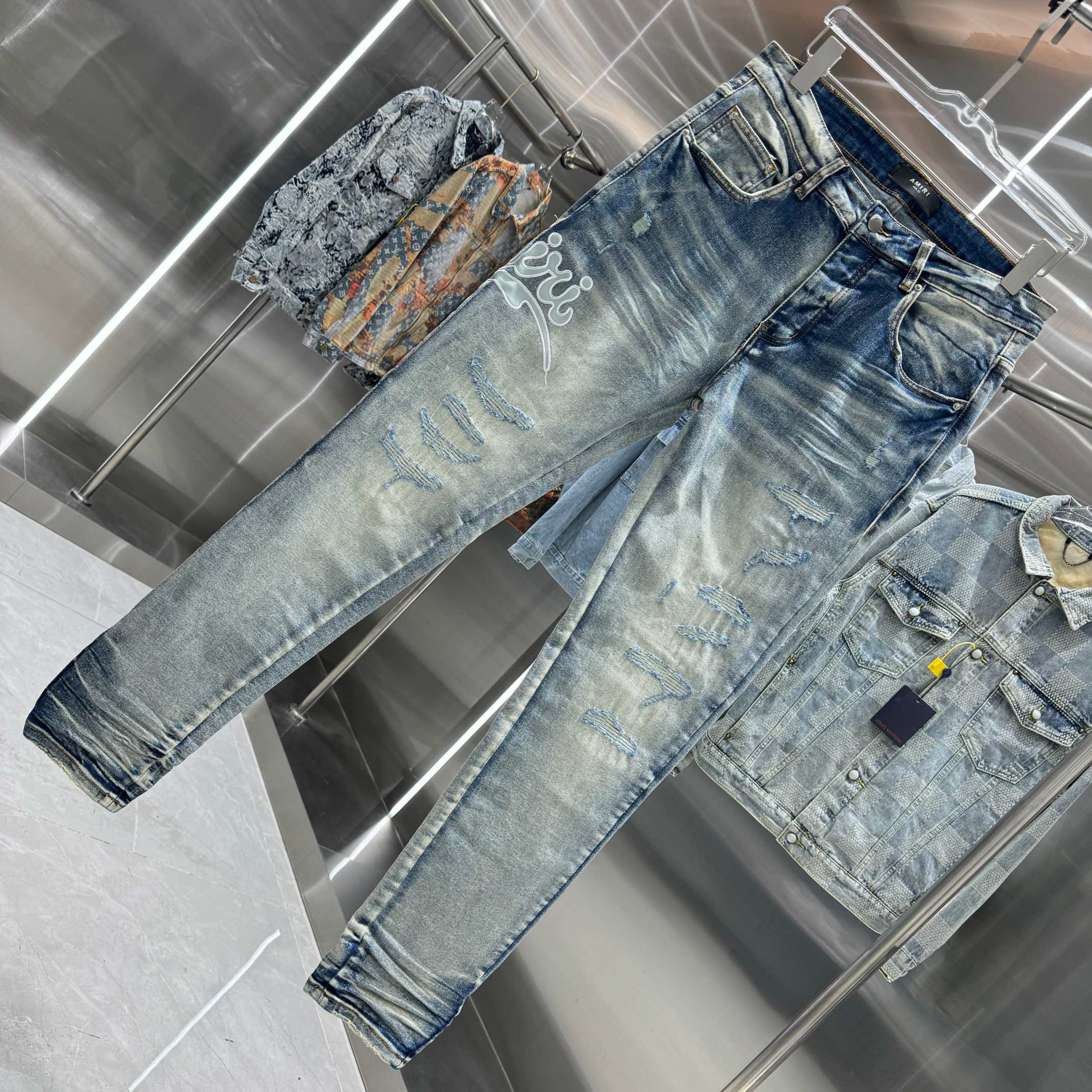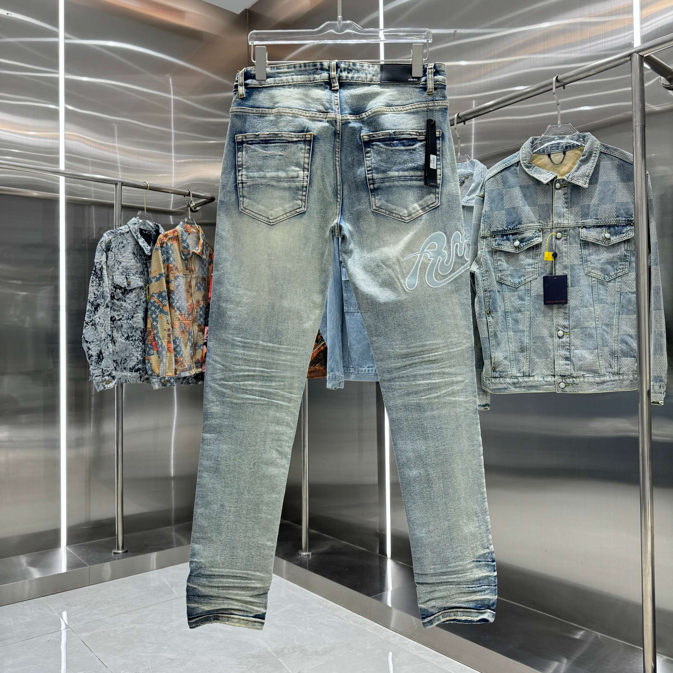 这款衣服是AAAAA 1:1 质量 (非常棒). 使用了和原版一模一样的材料. 商标部分也保持了和AMIRI一样. 图片拍摄是实物衣服拍摄, 您所收到的实物保证和我们图片一模一样.