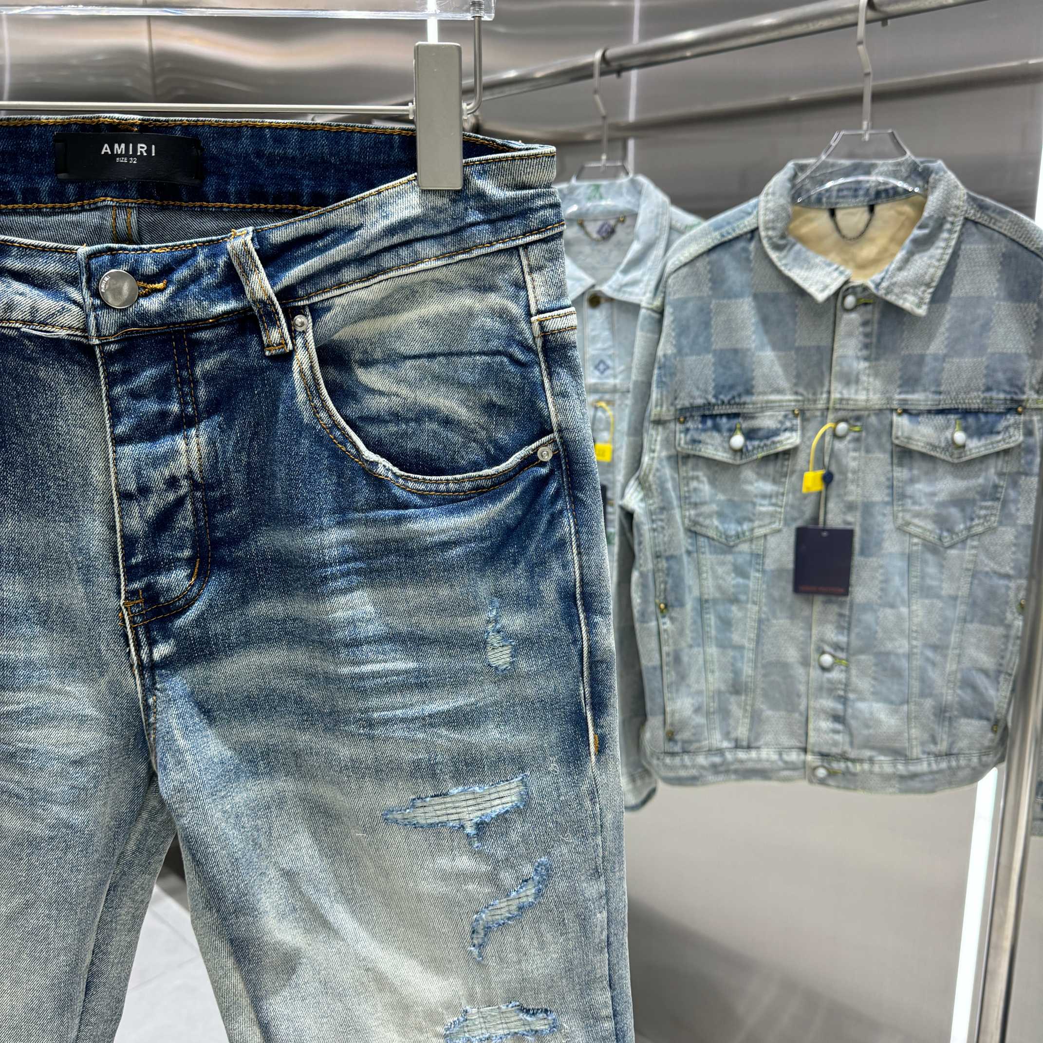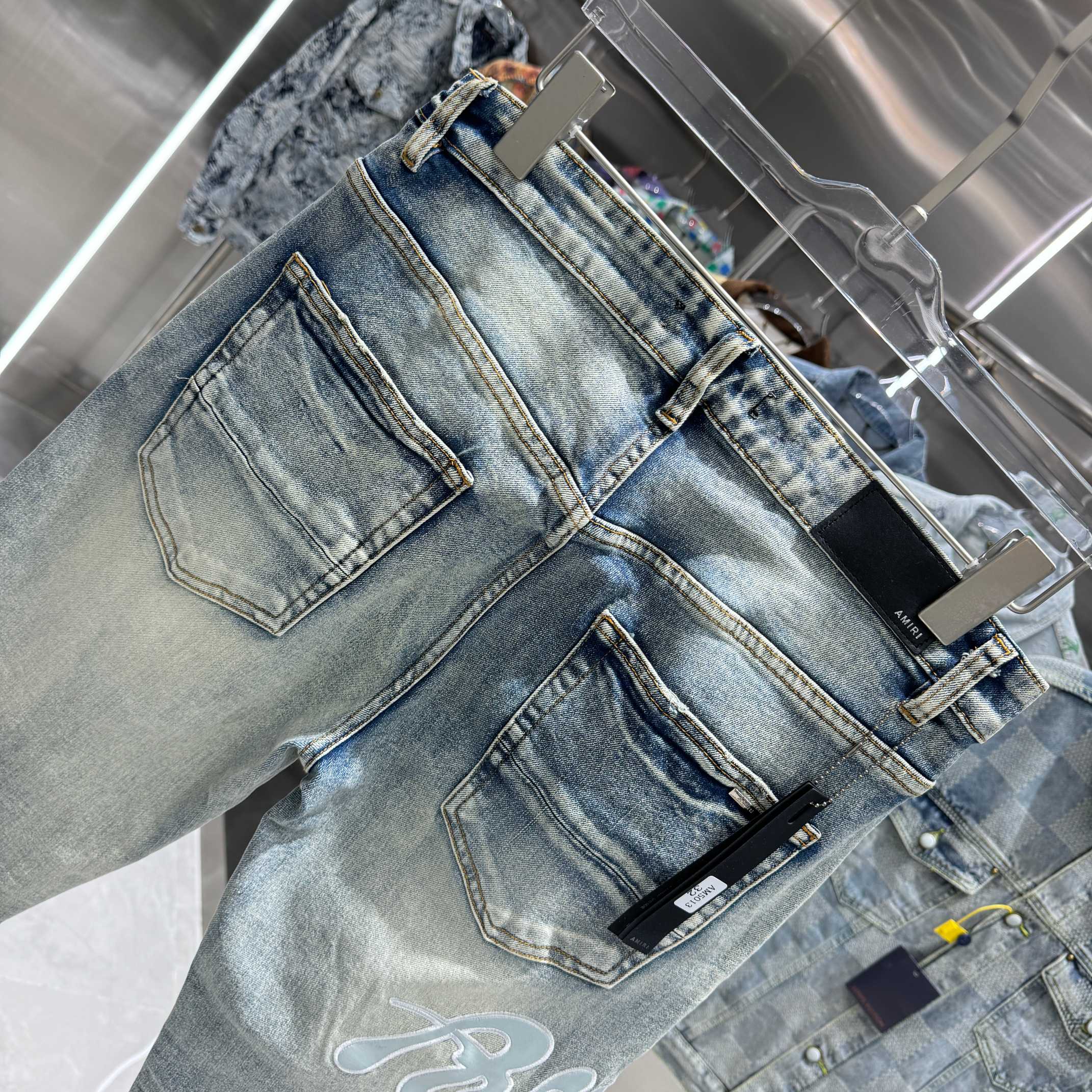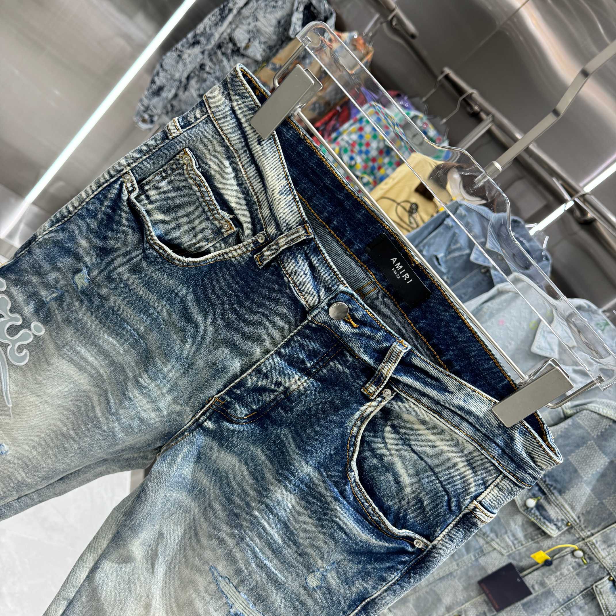 这款衣服是AAAAA 1:1 质量 (非常棒). 使用了和原版一模一样的材料. 商标部分也保持了和AMIRI一样. 图片拍摄是实物衣服拍摄, 您所收到的实物保证和我们图片一模一样.