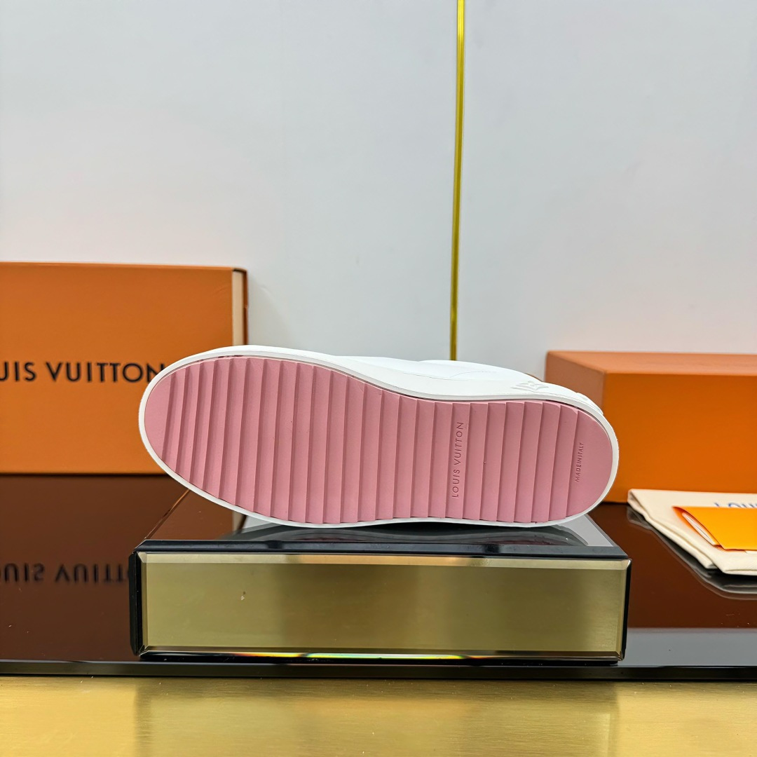 这款鞋子是AAAAA 1:1 质量 (非常棒). 使用了和原版一模一样的材料. 商标部分也保持了和路易威登/Louis Vuitton一样. 图片拍摄是实物鞋子拍摄, 您所收到的实物保证和我们图片一模一样.
