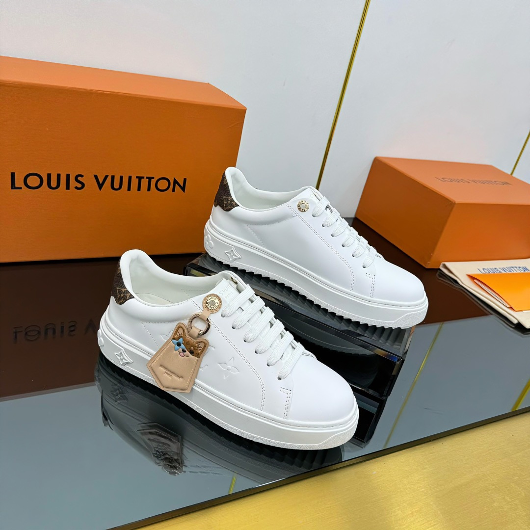 这款鞋子是AAAAA 1:1 质量 (非常棒). 使用了和原版一模一样的材料. 商标部分也保持了和路易威登/Louis Vuitton一样. 图片拍摄是实物鞋子拍摄, 您所收到的实物保证和我们图片一模一样.