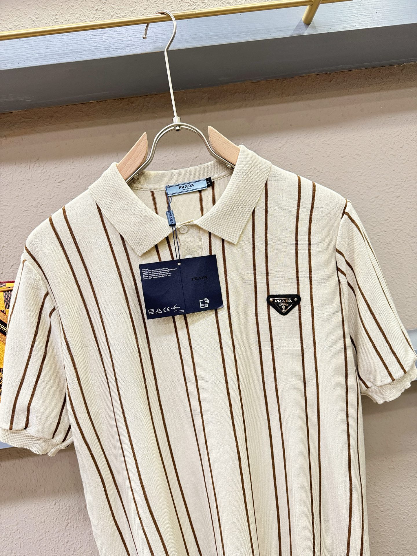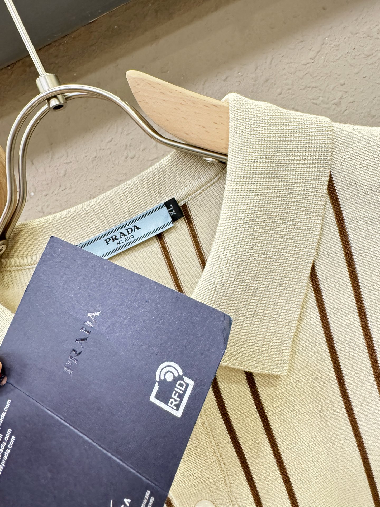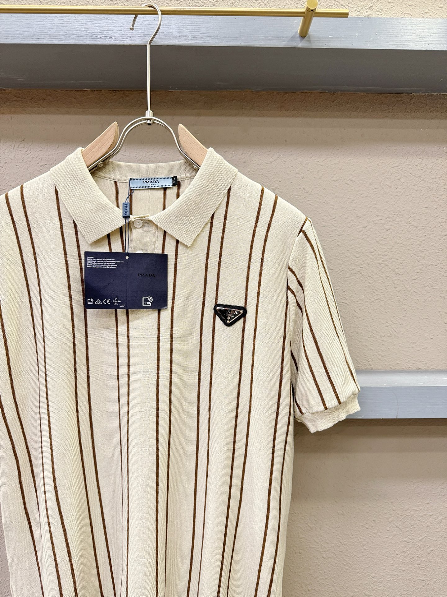 这款衣服是AAAAA 1:1 质量 (非常棒). 使用了和原版一模一样的材料. 商标部分也保持了和普拉达/Prada一样. 图片拍摄是实物衣服拍摄, 您所收到的实物保证和我们图片一模一样.