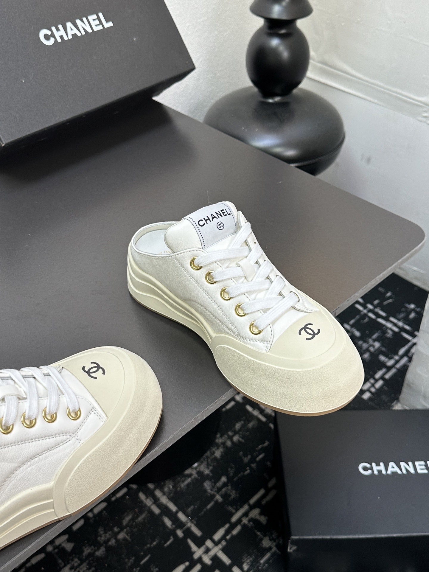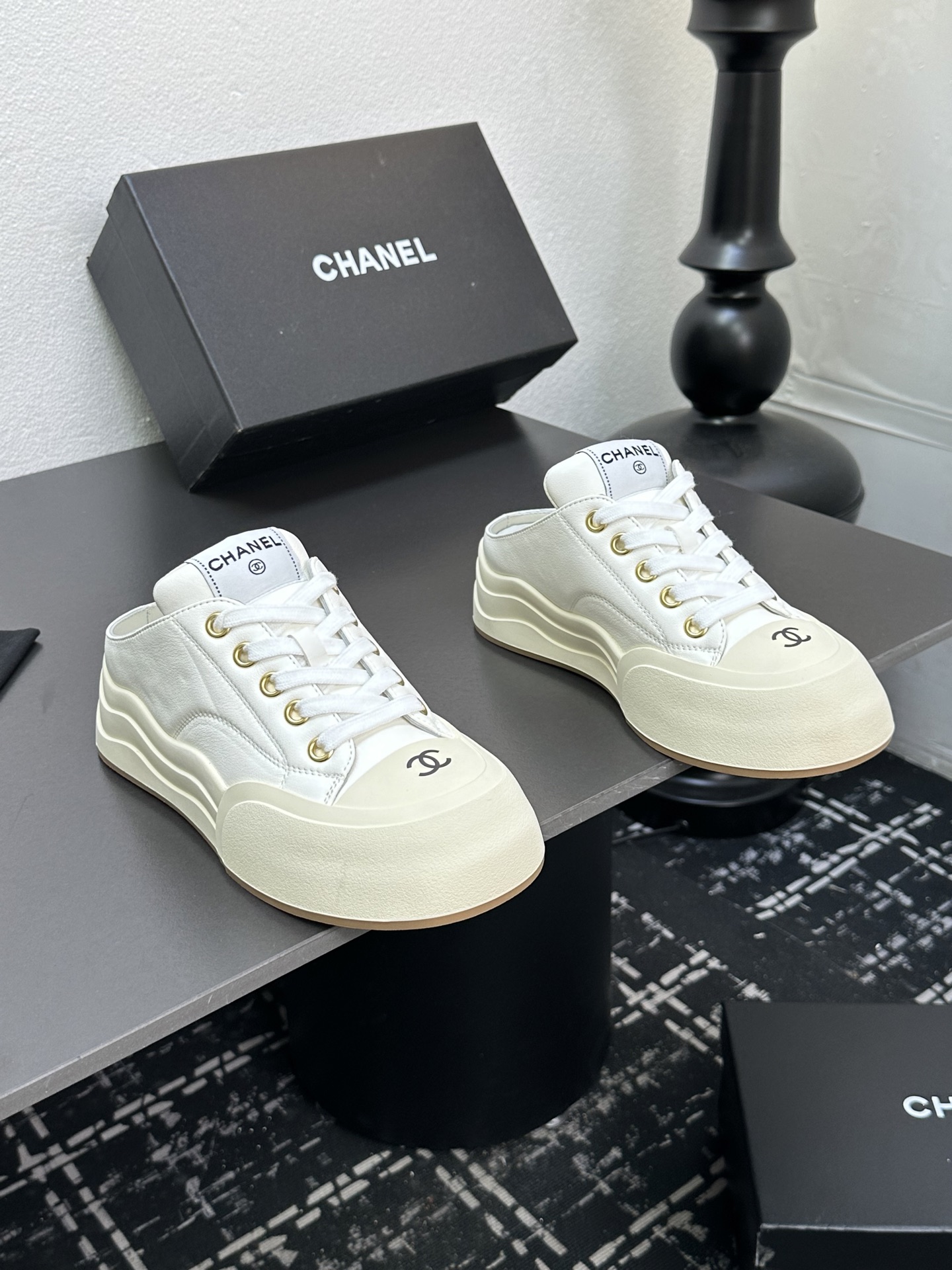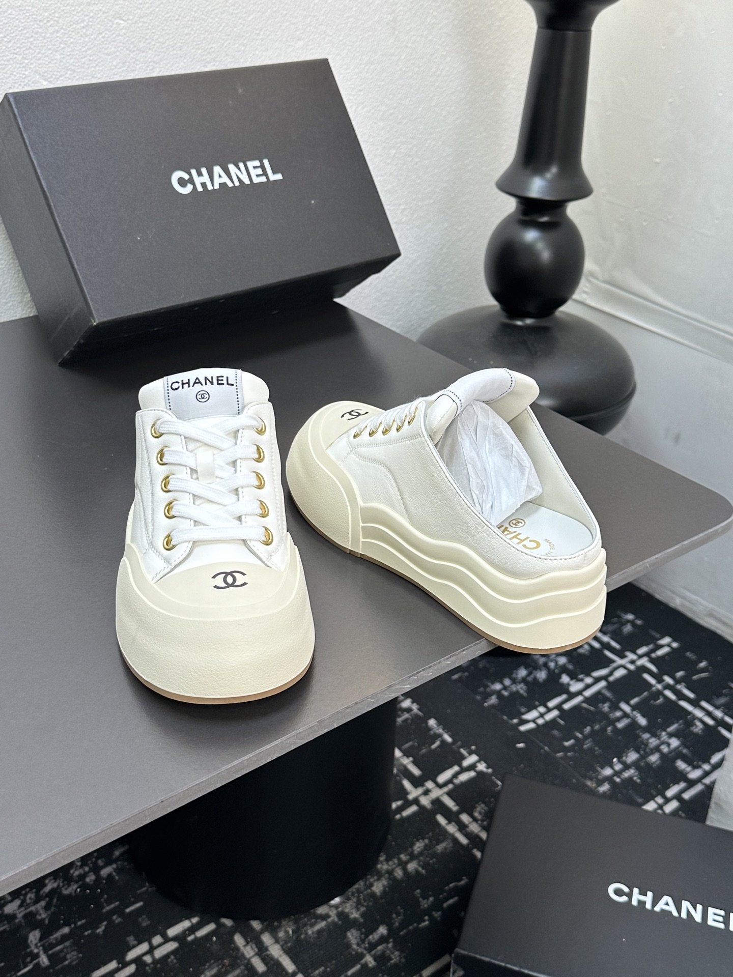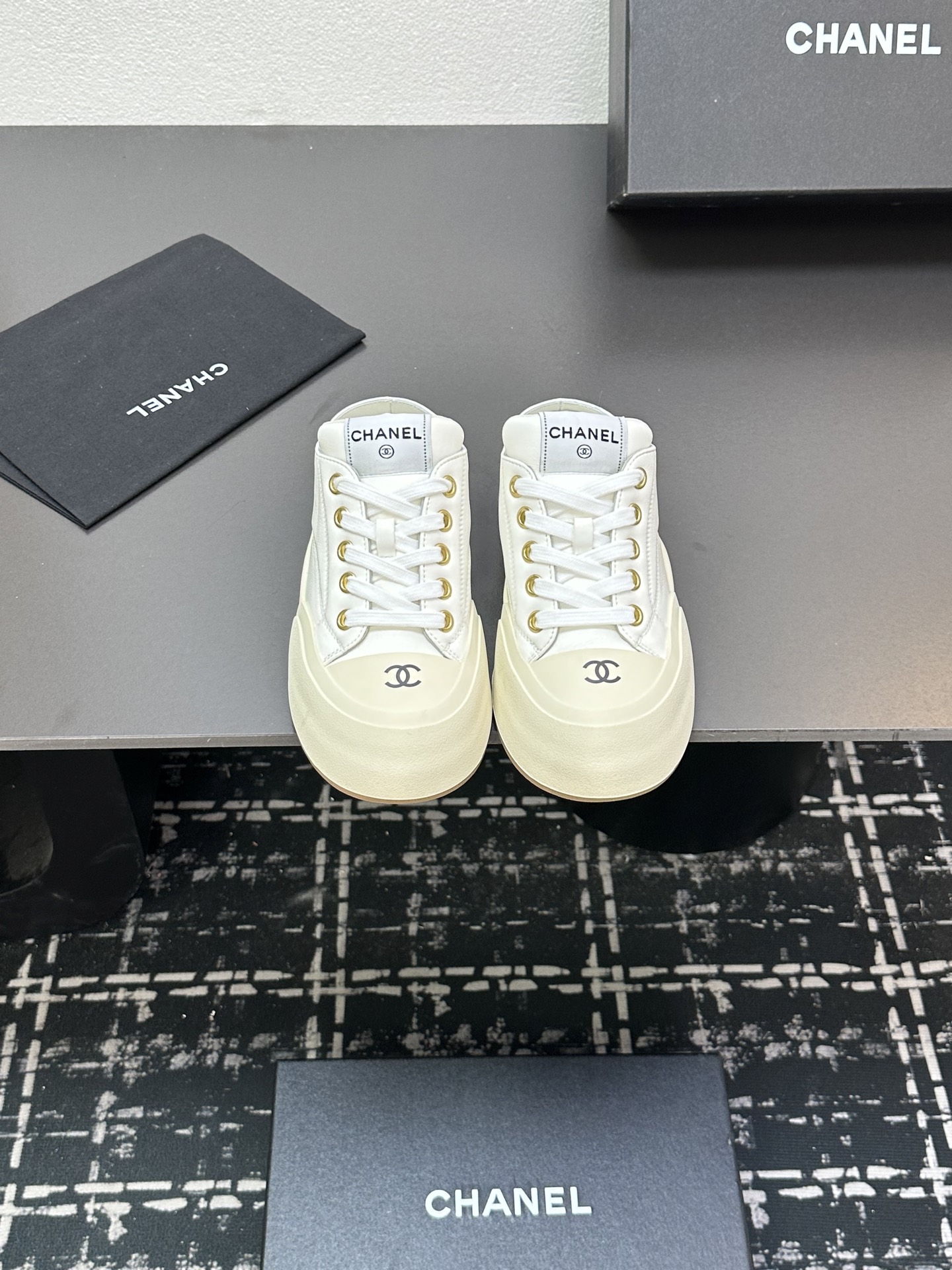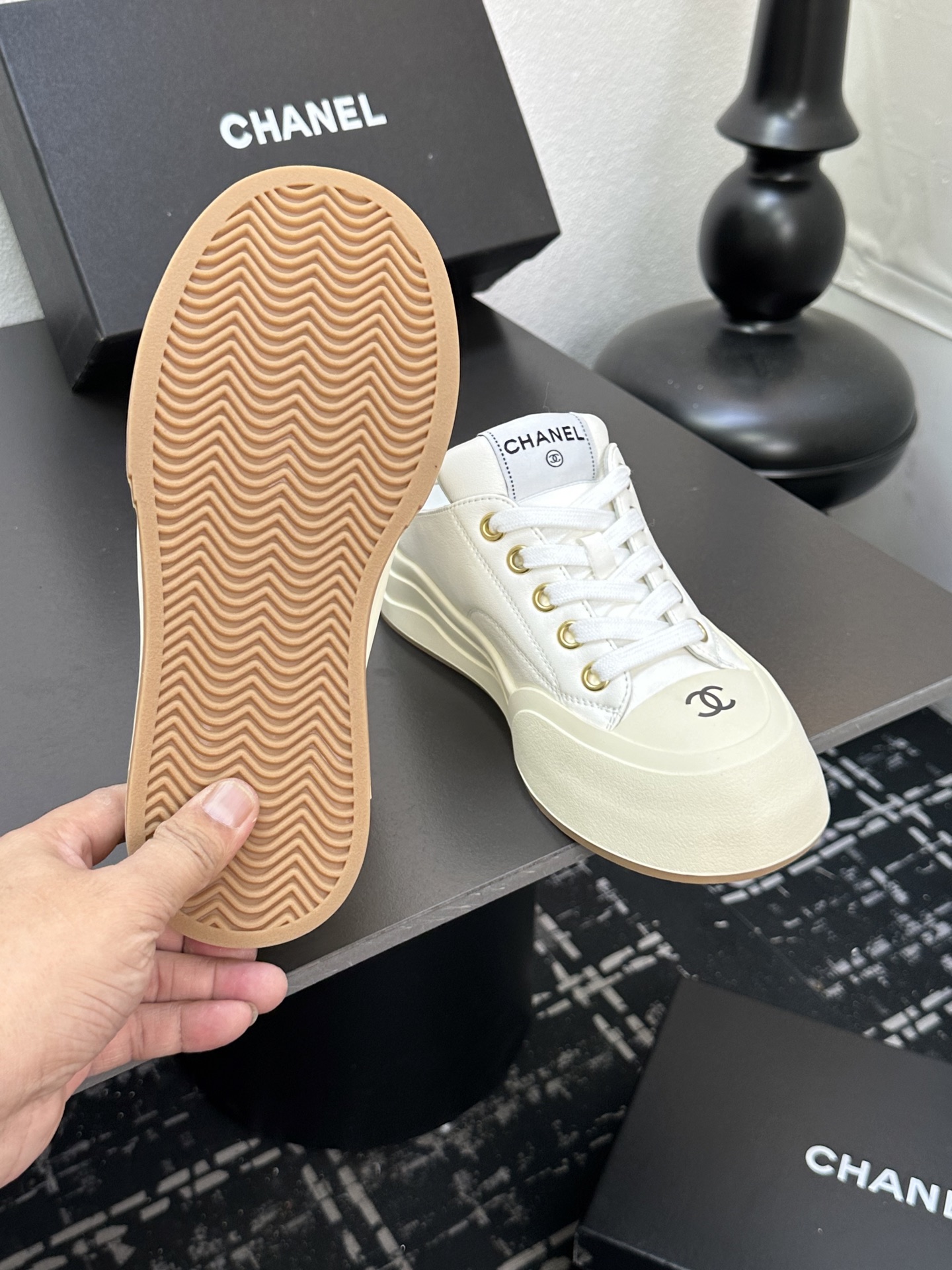 这款鞋子是AAAAA 1:1 质量 (非常棒). 使用了和原版一模一样的材料. 商标部分也保持了和香奈儿/Chanel一样. 图片拍摄是实物鞋子拍摄, 您所收到的实物保证和我们图片一模一样.