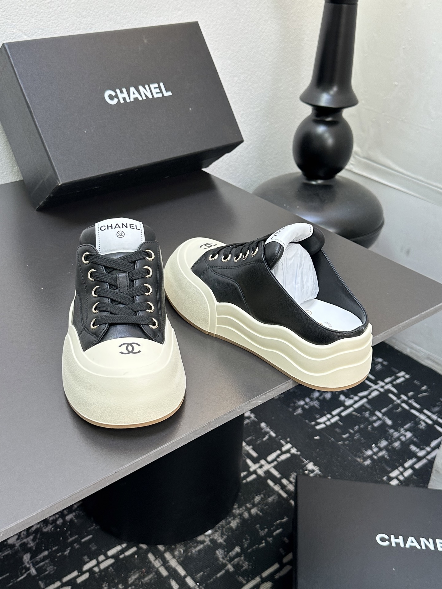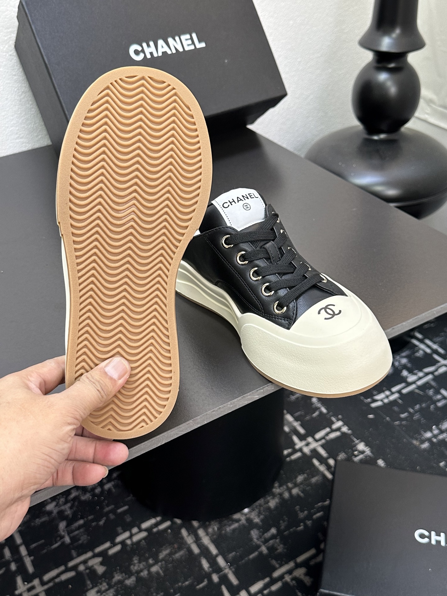 这款鞋子是AAAAA 1:1 质量 (非常棒). 使用了和原版一模一样的材料. 商标部分也保持了和香奈儿/Chanel一样. 图片拍摄是实物鞋子拍摄, 您所收到的实物保证和我们图片一模一样.