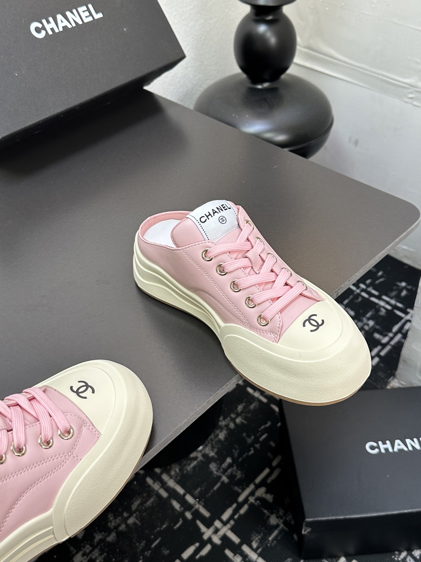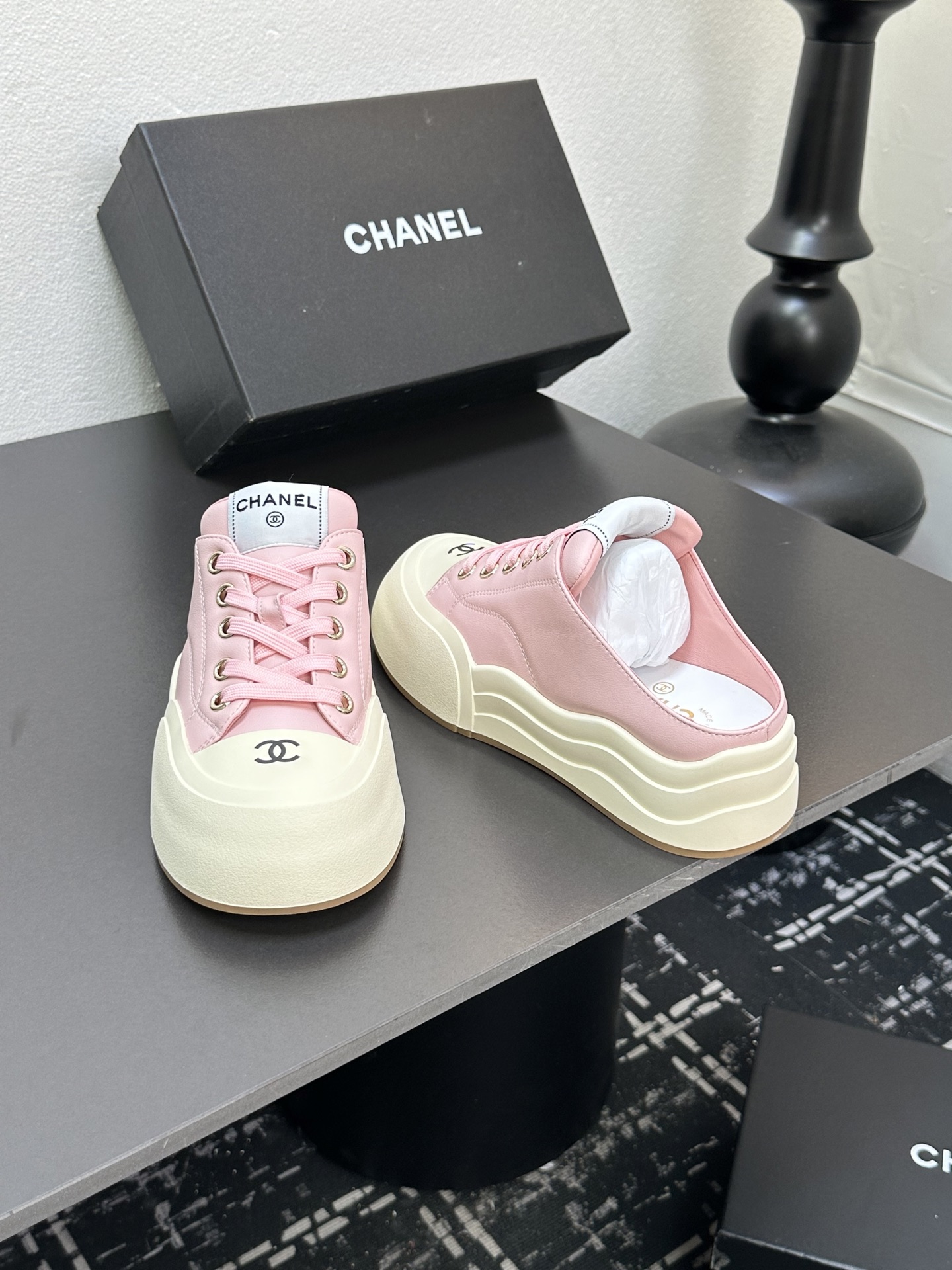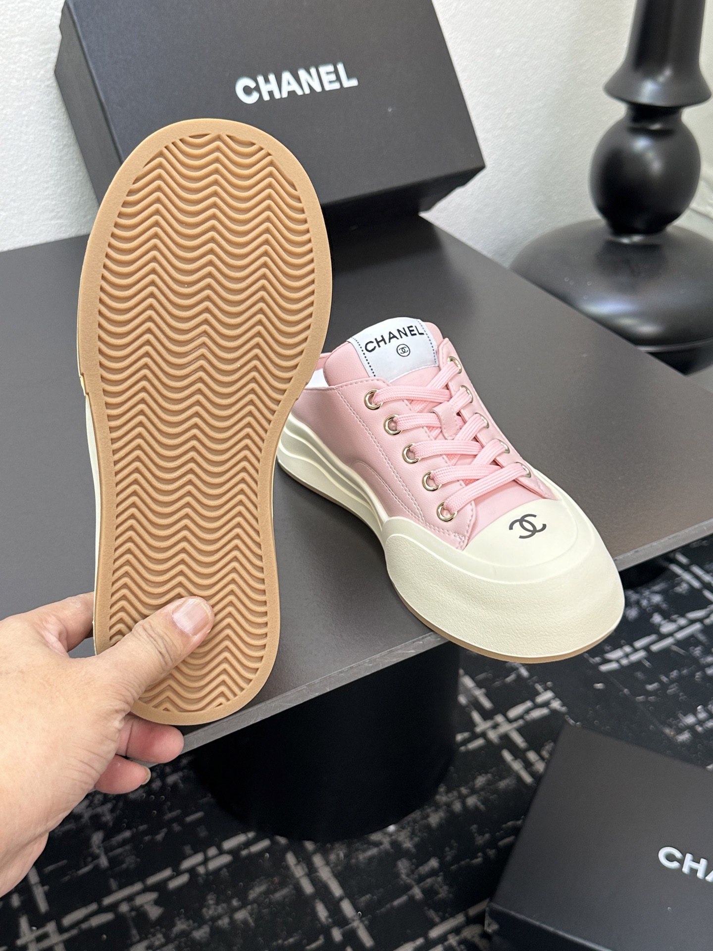 这款鞋子是AAAAA 1:1 质量 (非常棒). 使用了和原版一模一样的材料. 商标部分也保持了和香奈儿/Chanel一样. 图片拍摄是实物鞋子拍摄, 您所收到的实物保证和我们图片一模一样.