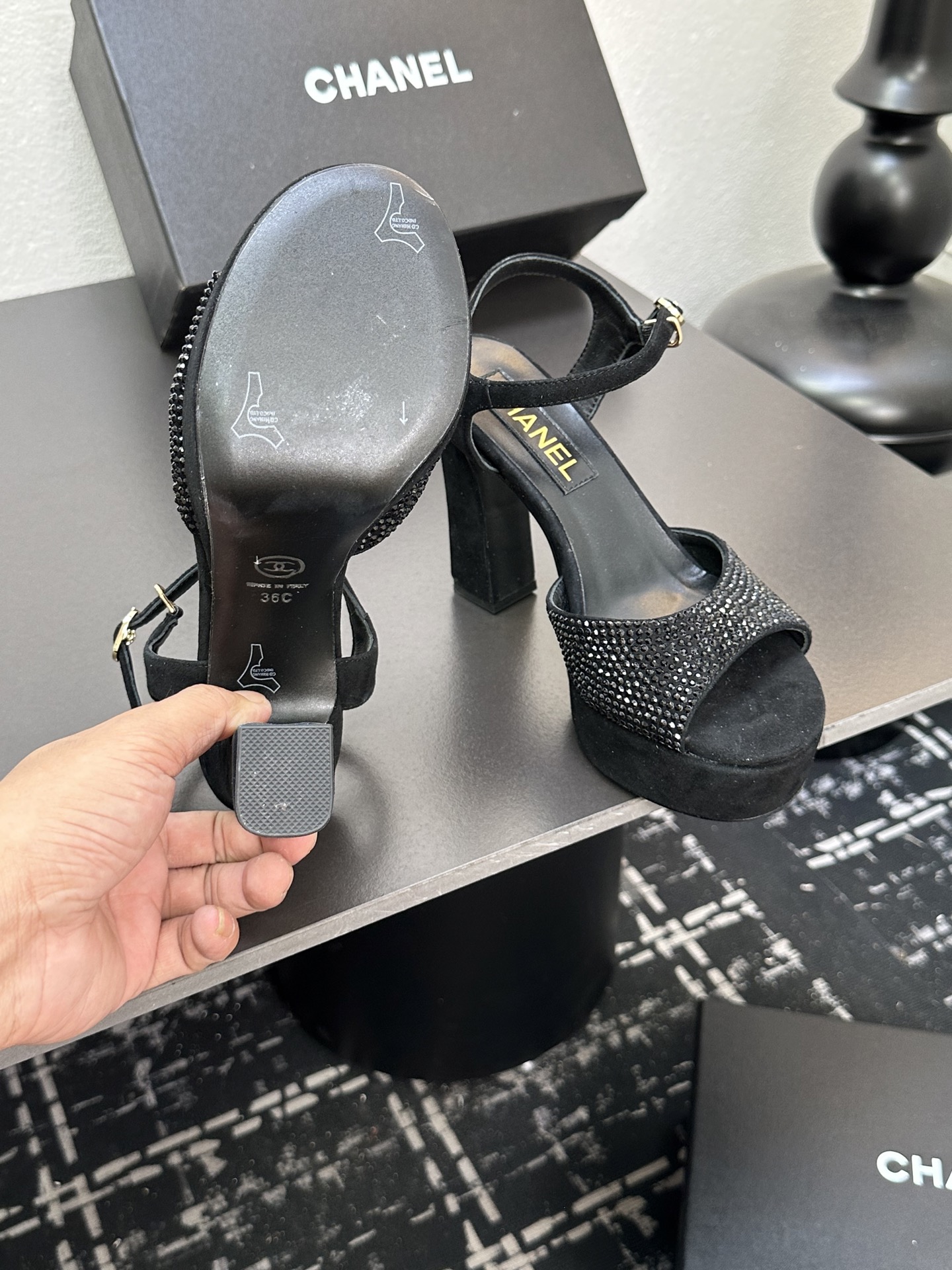 这款鞋子是AAAAA 1:1 质量 (非常棒). 使用了和原版一模一样的材料. 商标部分也保持了和香奈儿/Chanel一样. 图片拍摄是实物鞋子拍摄, 您所收到的实物保证和我们图片一模一样.
