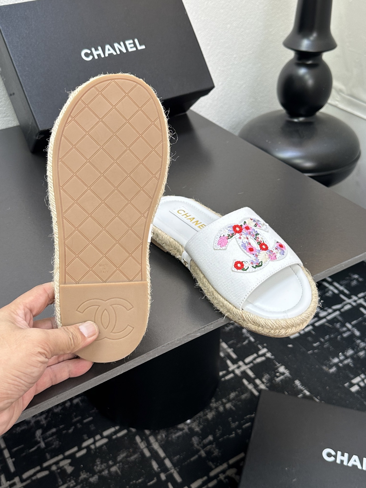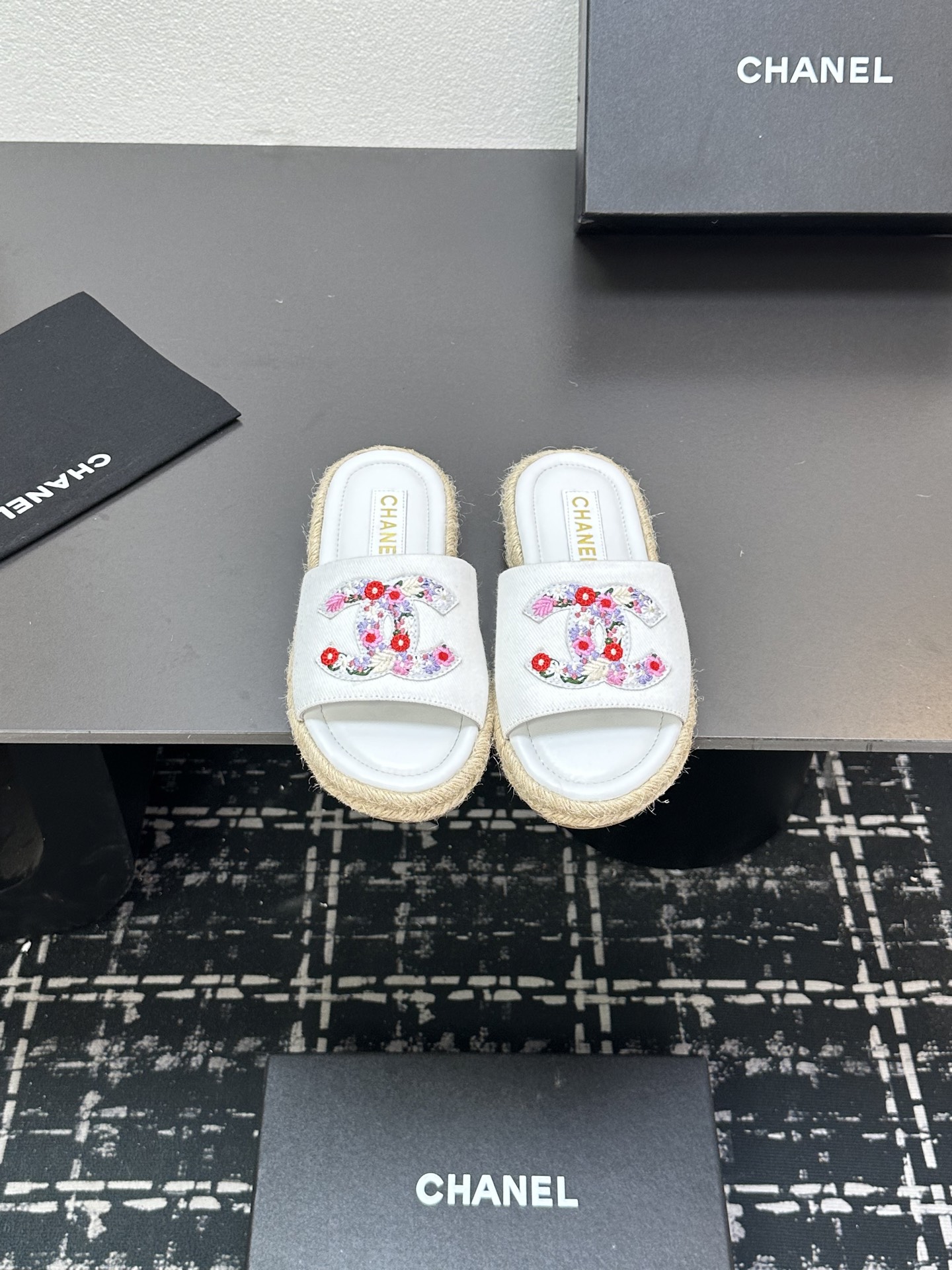 这款鞋子是AAAAA 1:1 质量 (非常棒). 使用了和原版一模一样的材料. 商标部分也保持了和香奈儿/Chanel一样. 图片拍摄是实物鞋子拍摄, 您所收到的实物保证和我们图片一模一样.