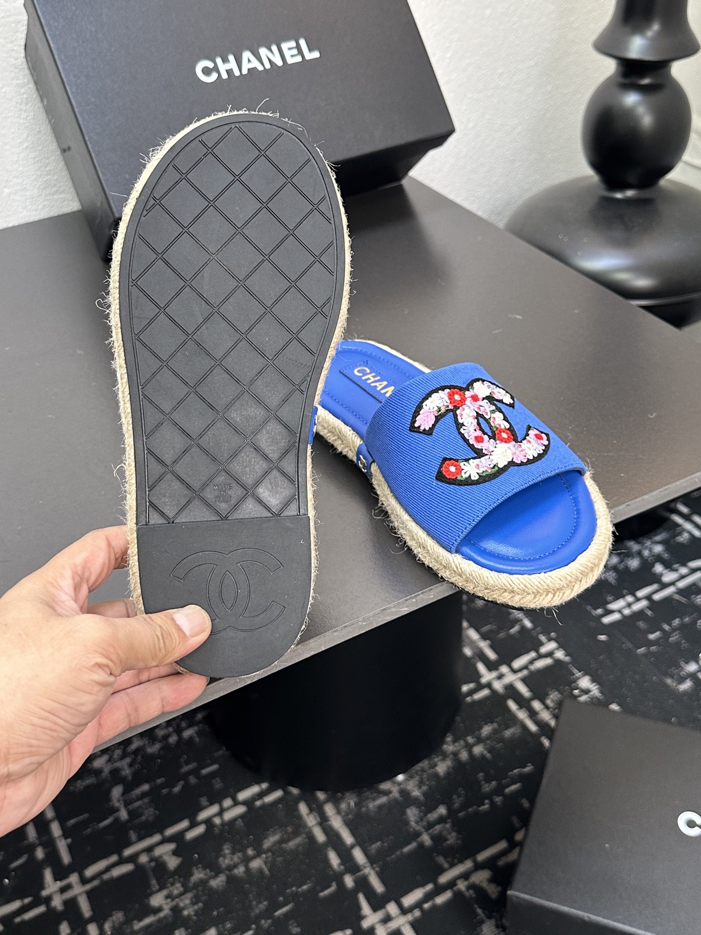 这款鞋子是AAAAA 1:1 质量 (非常棒). 使用了和原版一模一样的材料. 商标部分也保持了和香奈儿/Chanel一样. 图片拍摄是实物鞋子拍摄, 您所收到的实物保证和我们图片一模一样.