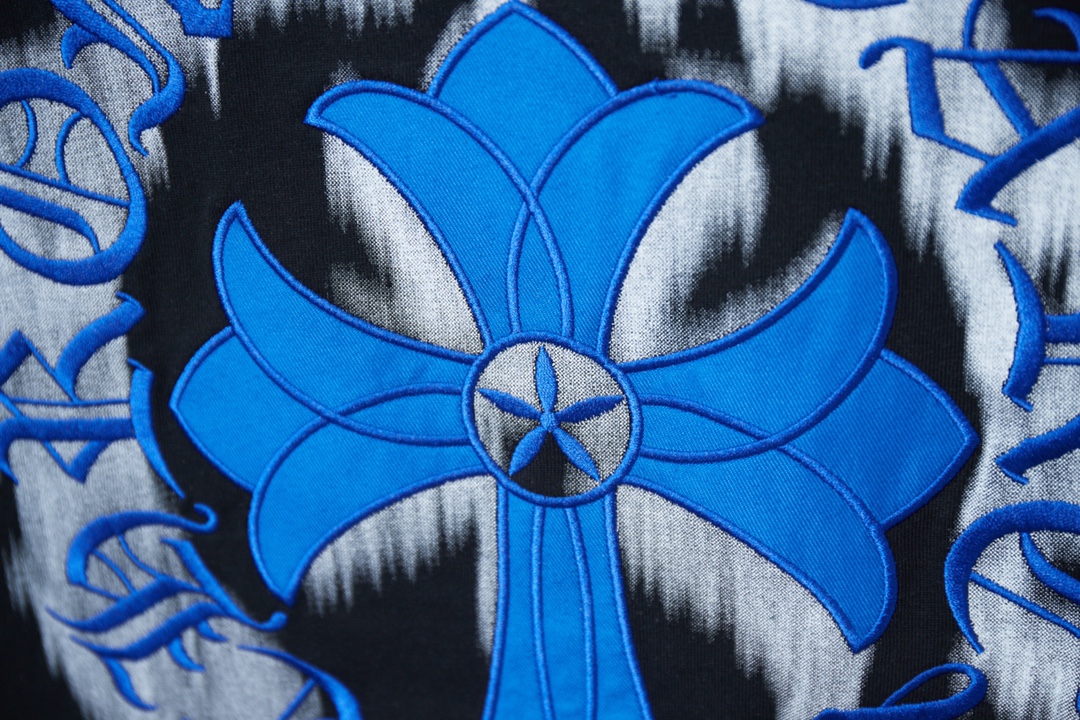 这款衣服是AAAAA 1:1 质量 (非常棒). 使用了和原版一模一样的材料. 商标部分也保持了和克罗心/Chrome Hearts一样. 图片拍摄是实物衣服拍摄, 您所收到的实物保证和我们图片一模一样.
