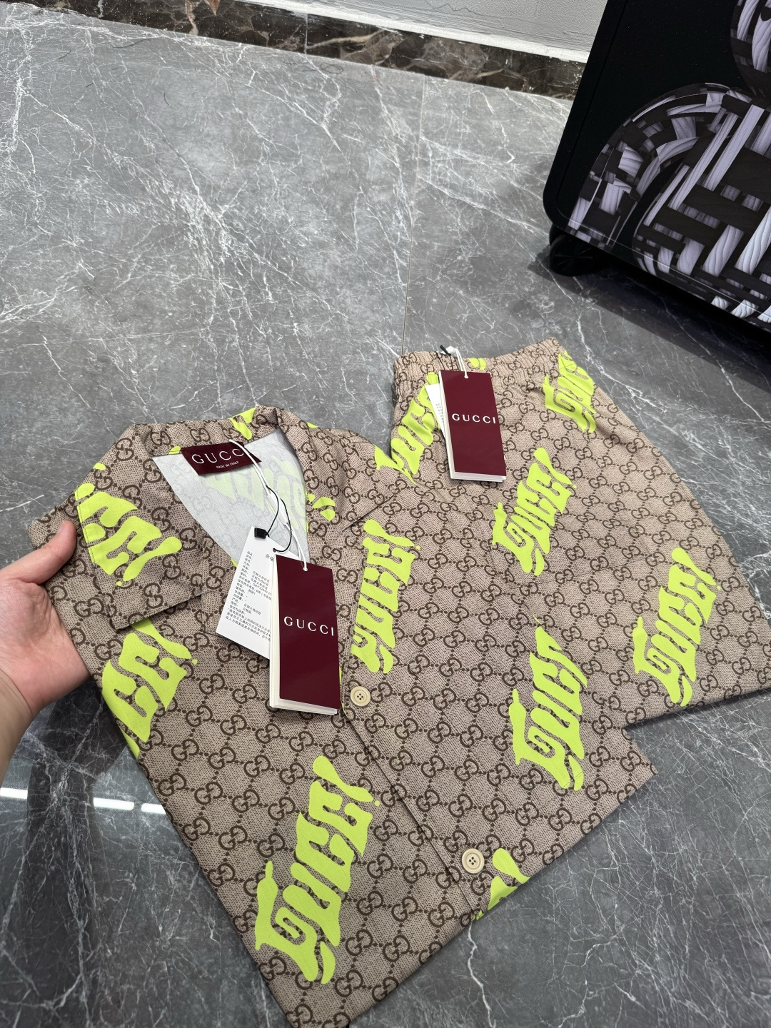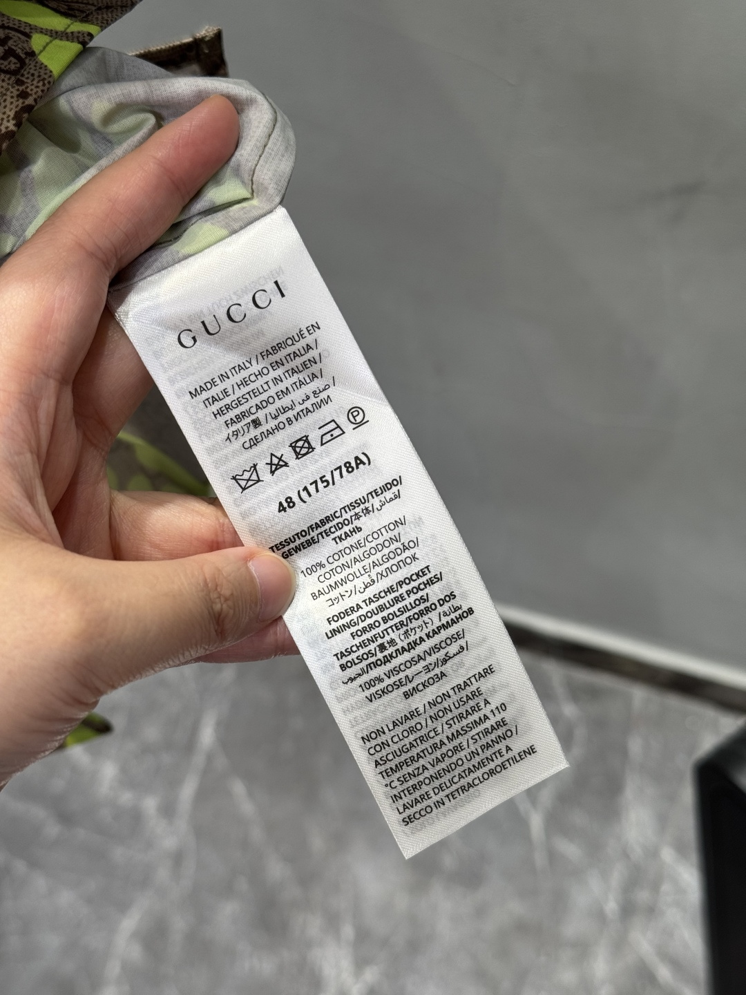 这款衣服是AAAAA 1:1 质量 (非常棒). 使用了和原版一模一样的材料. 商标部分也保持了和古奇/Gucci一样. 图片拍摄是实物衣服拍摄, 您所收到的实物保证和我们图片一模一样.