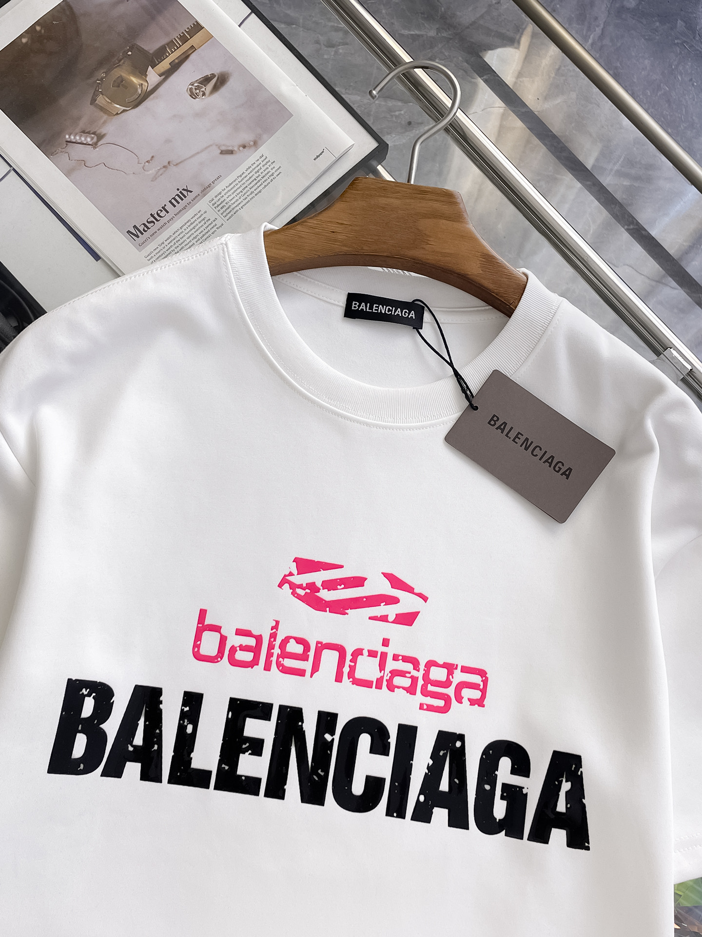 这款衣服是AAAAA 1:1 质量 (非常棒). 使用了和原版一模一样的材料. 商标部分也保持了和巴黎世家/Balenciaga一样. 图片拍摄是实物衣服拍摄, 您所收到的实物保证和我们图片一模一样.