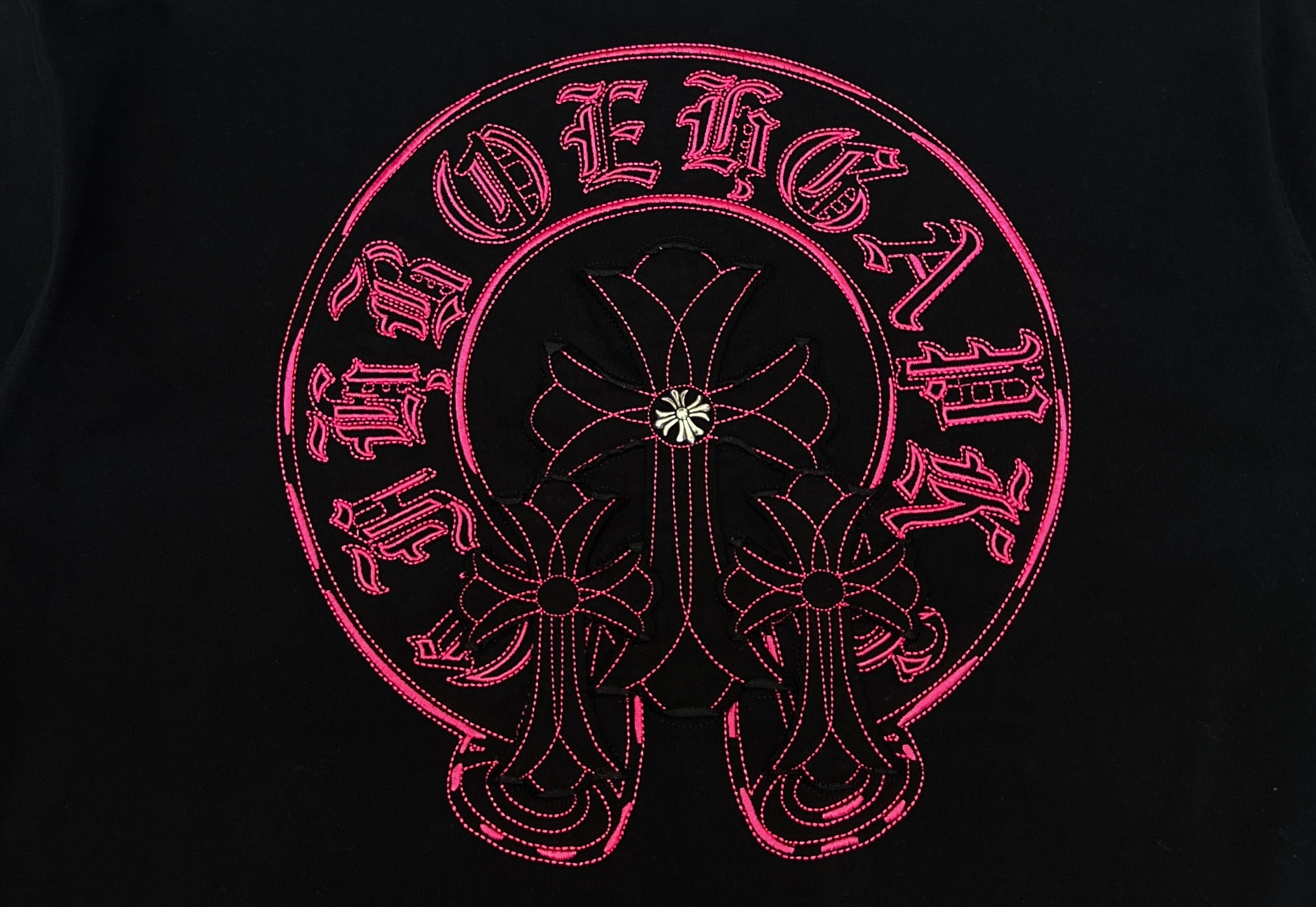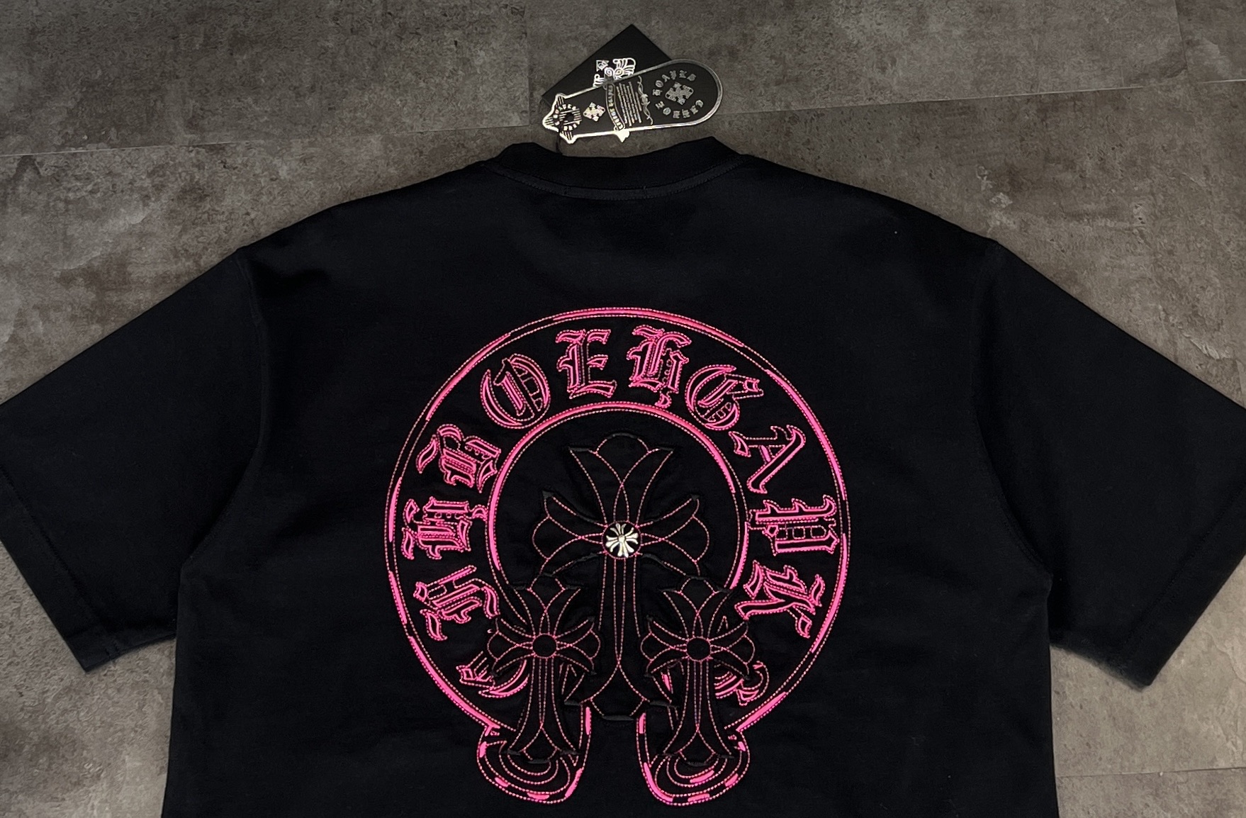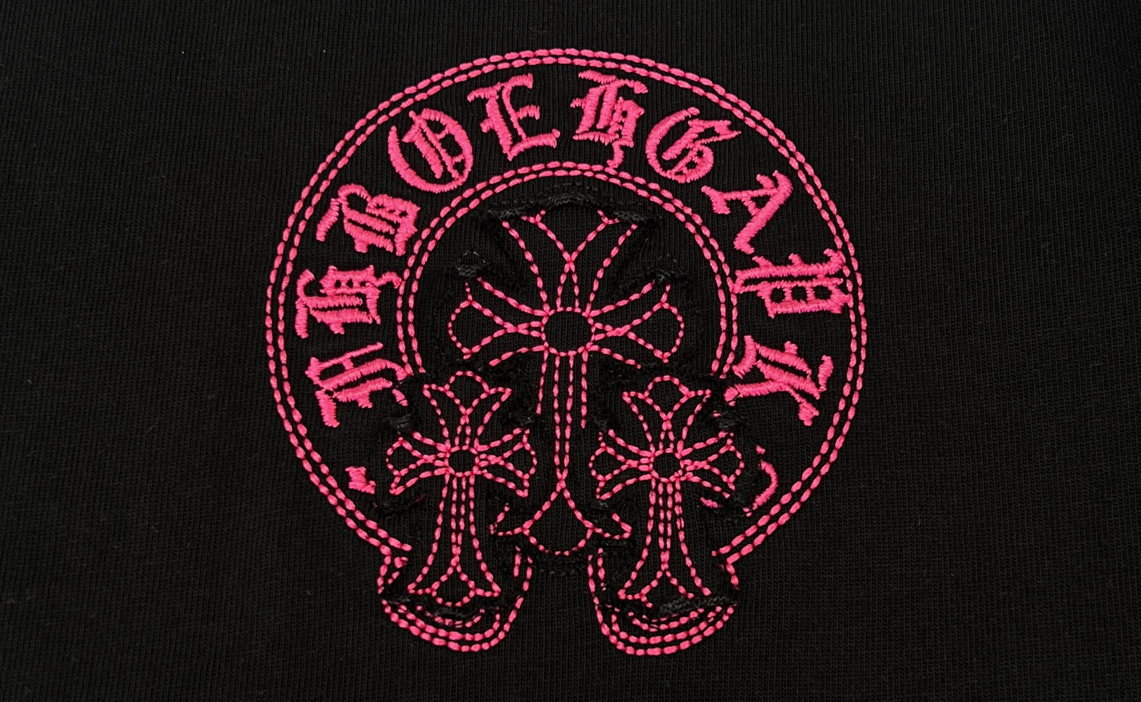 这款衣服是AAAAA 1:1 质量 (非常棒). 使用了和原版一模一样的材料. 商标部分也保持了和克罗心/Chrome Hearts一样. 图片拍摄是实物衣服拍摄, 您所收到的实物保证和我们图片一模一样.