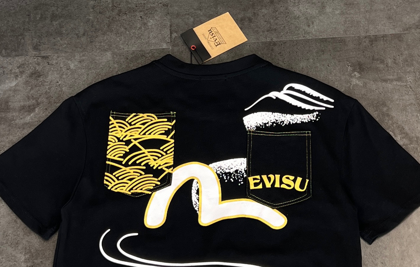 这款衣服是AAAAA 1:1 质量 (非常棒). 使用了和原版一模一样的材料. 商标部分也保持了和EVISU一样. 图片拍摄是实物衣服拍摄, 您所收到的实物保证和我们图片一模一样.