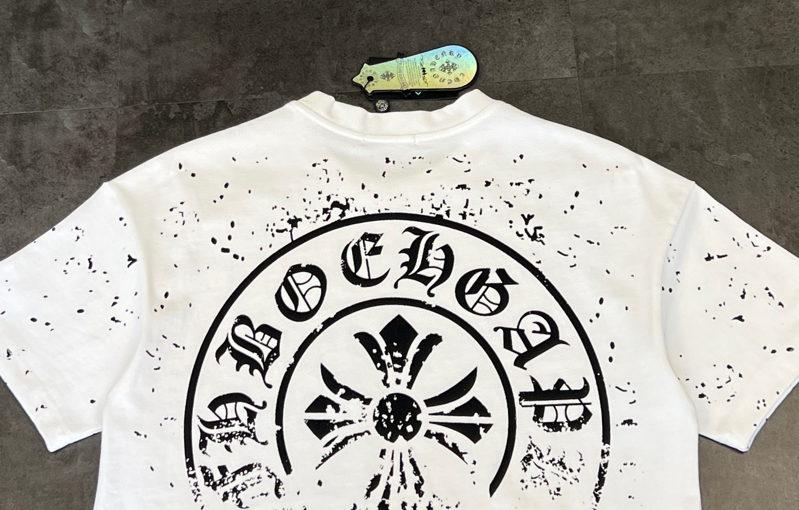 这款衣服是AAAAA 1:1 质量 (非常棒). 使用了和原版一模一样的材料. 商标部分也保持了和克罗心/Chrome Hearts一样. 图片拍摄是实物衣服拍摄, 您所收到的实物保证和我们图片一模一样.