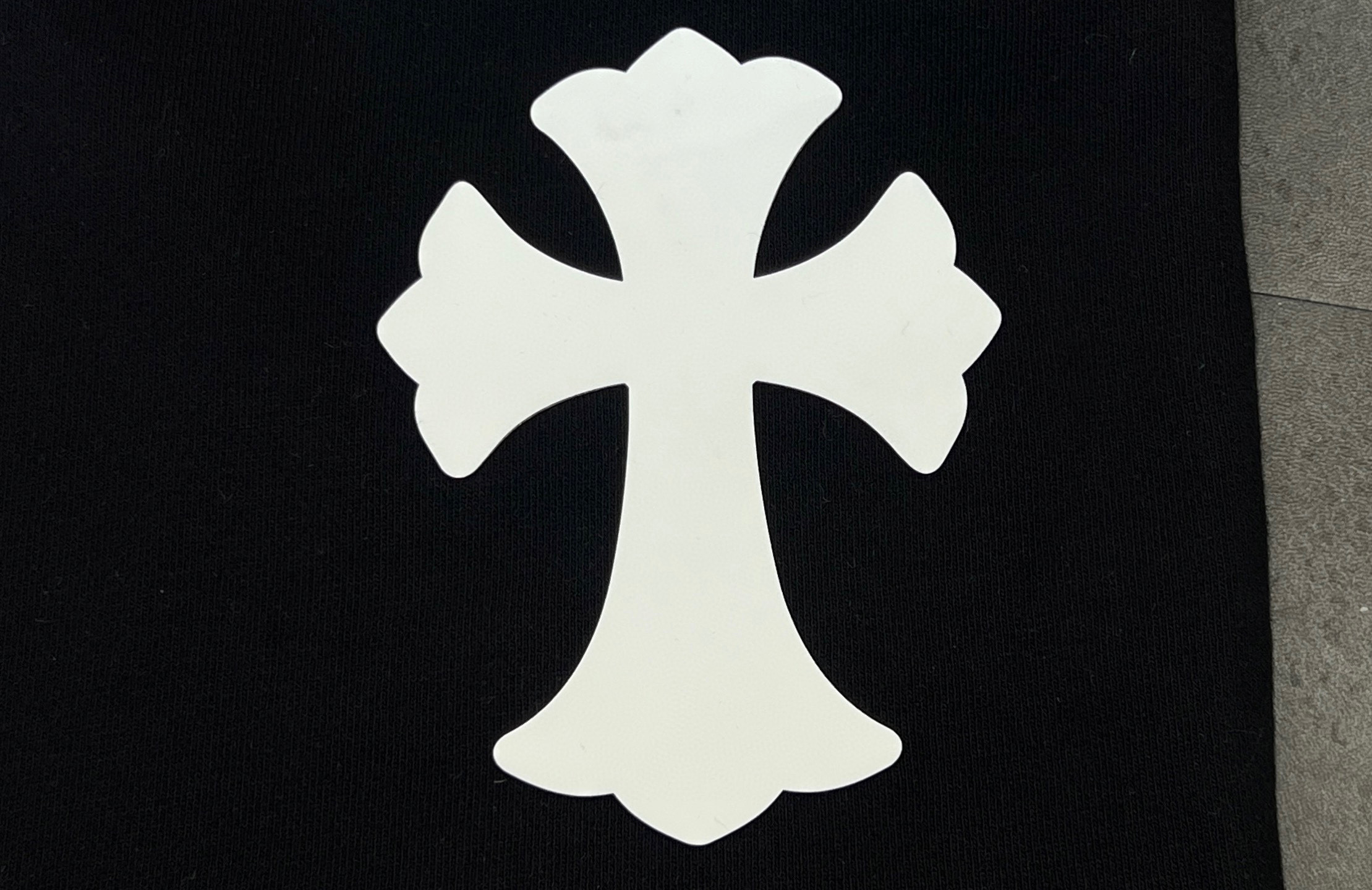 这款衣服是AAAAA 1:1 质量 (非常棒). 使用了和原版一模一样的材料. 商标部分也保持了和克罗心/Chrome Hearts一样. 图片拍摄是实物衣服拍摄, 您所收到的实物保证和我们图片一模一样.