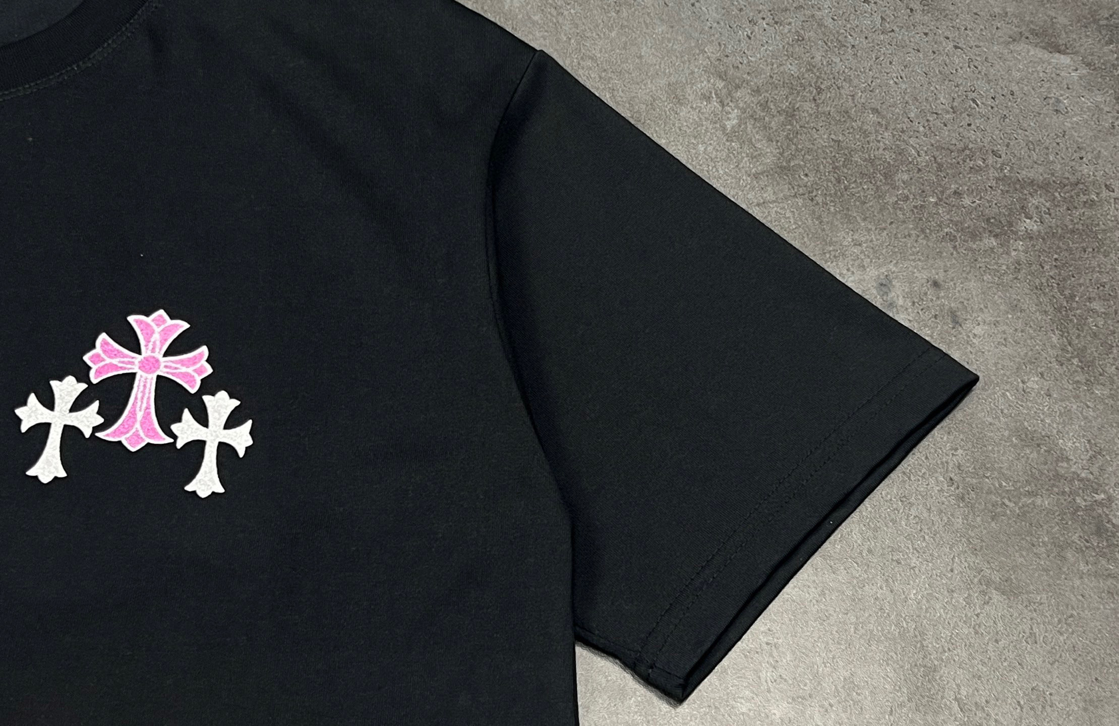 这款衣服是AAAAA 1:1 质量 (非常棒). 使用了和原版一模一样的材料. 商标部分也保持了和克罗心/Chrome Hearts一样. 图片拍摄是实物衣服拍摄, 您所收到的实物保证和我们图片一模一样.