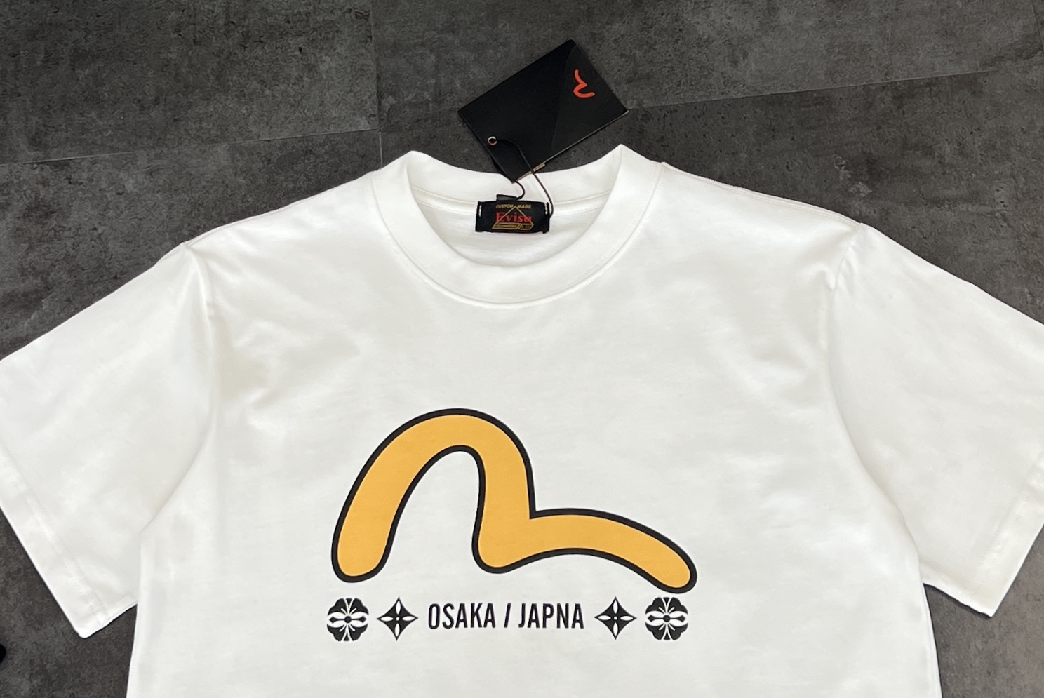 这款衣服是AAAAA 1:1 质量 (非常棒). 使用了和原版一模一样的材料. 商标部分也保持了和EVISU一样. 图片拍摄是实物衣服拍摄, 您所收到的实物保证和我们图片一模一样.