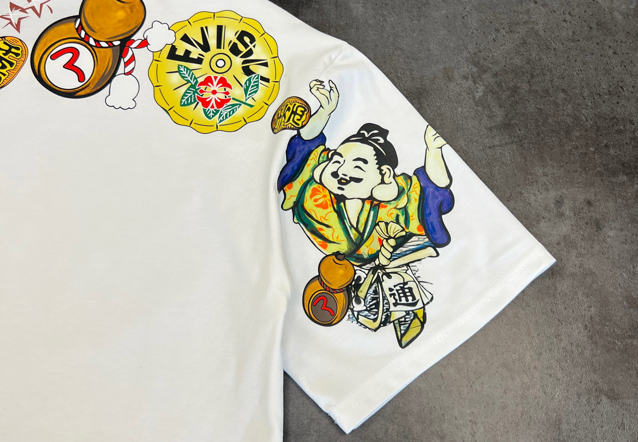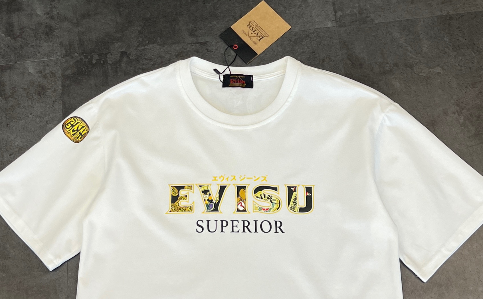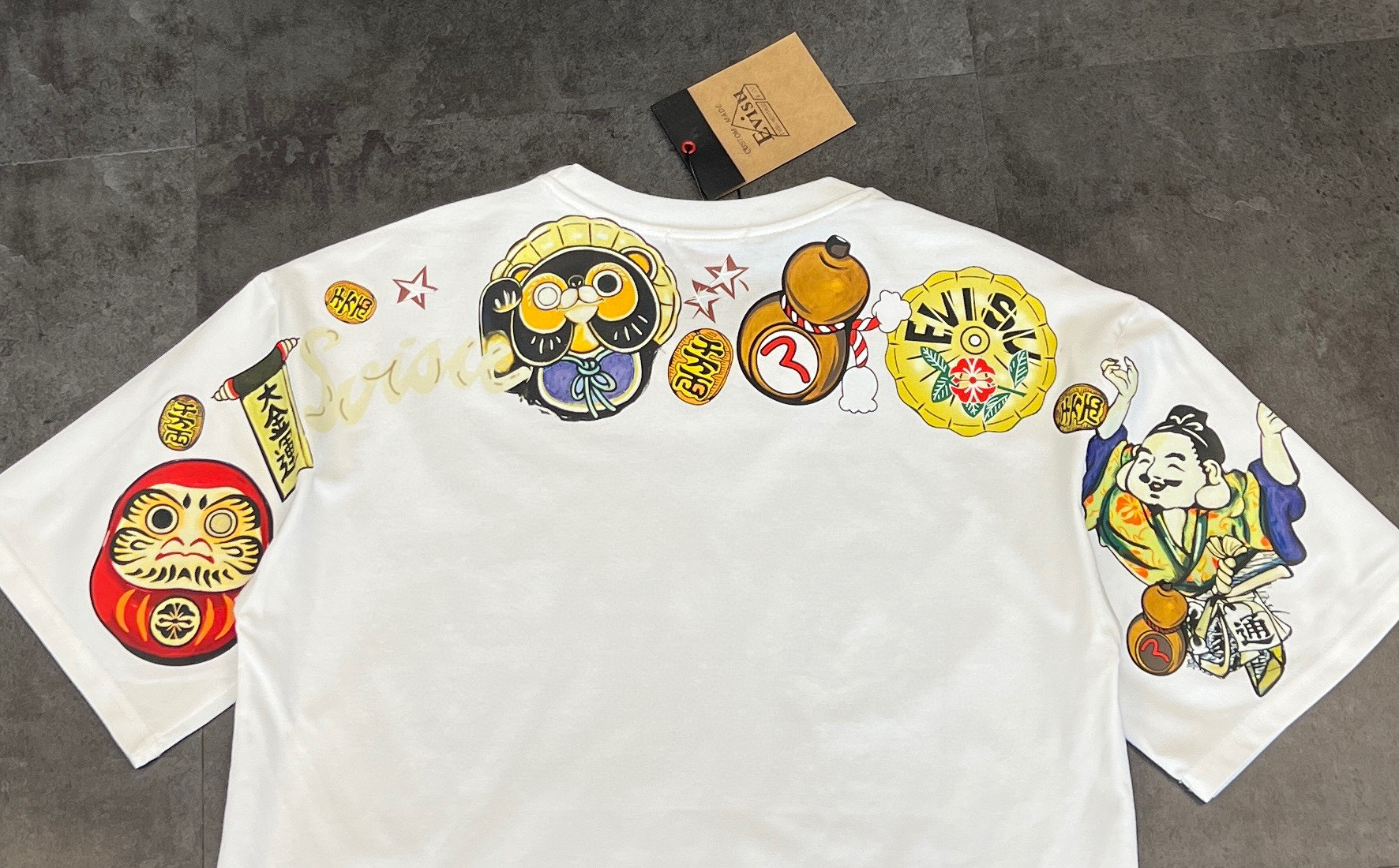 这款衣服是AAAAA 1:1 质量 (非常棒). 使用了和原版一模一样的材料. 商标部分也保持了和EVISU一样. 图片拍摄是实物衣服拍摄, 您所收到的实物保证和我们图片一模一样.