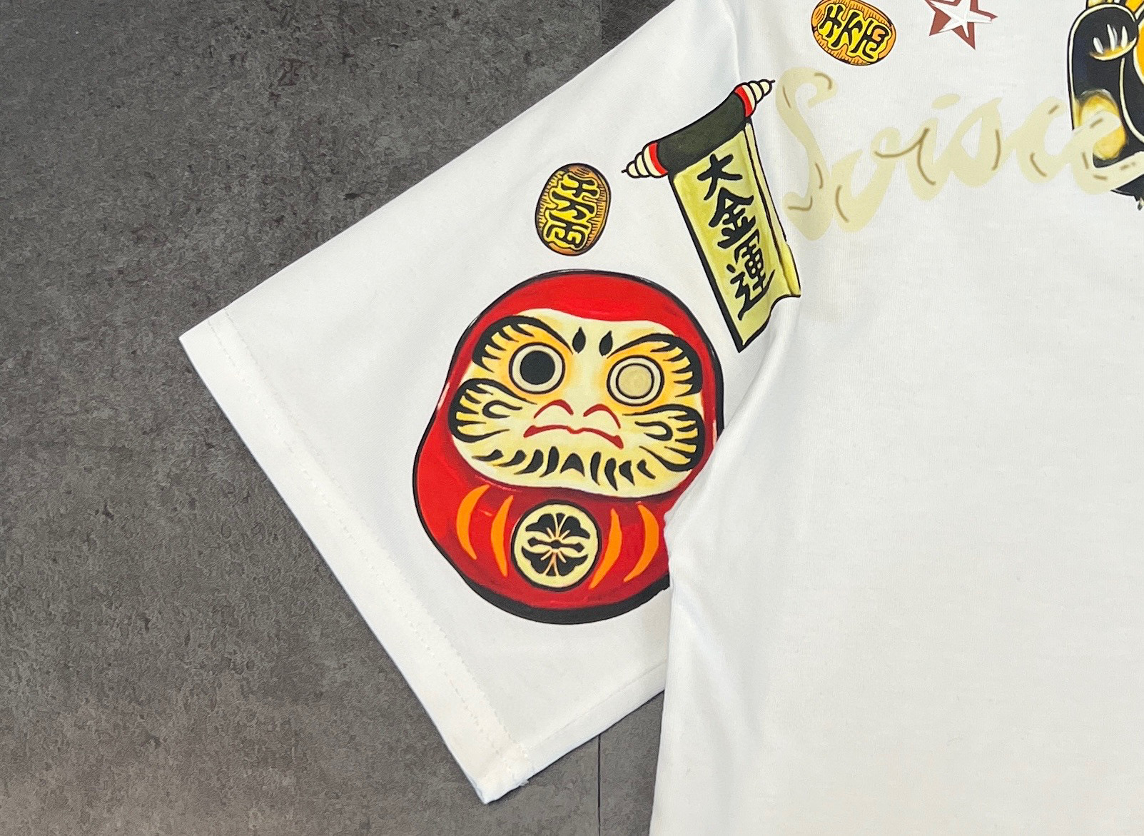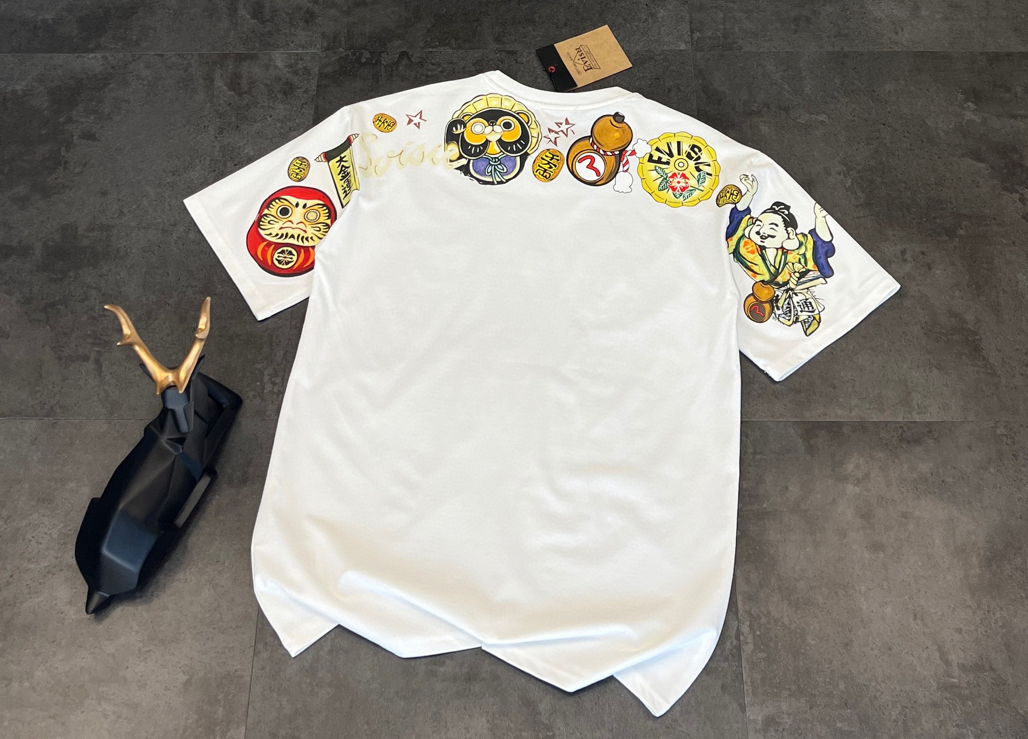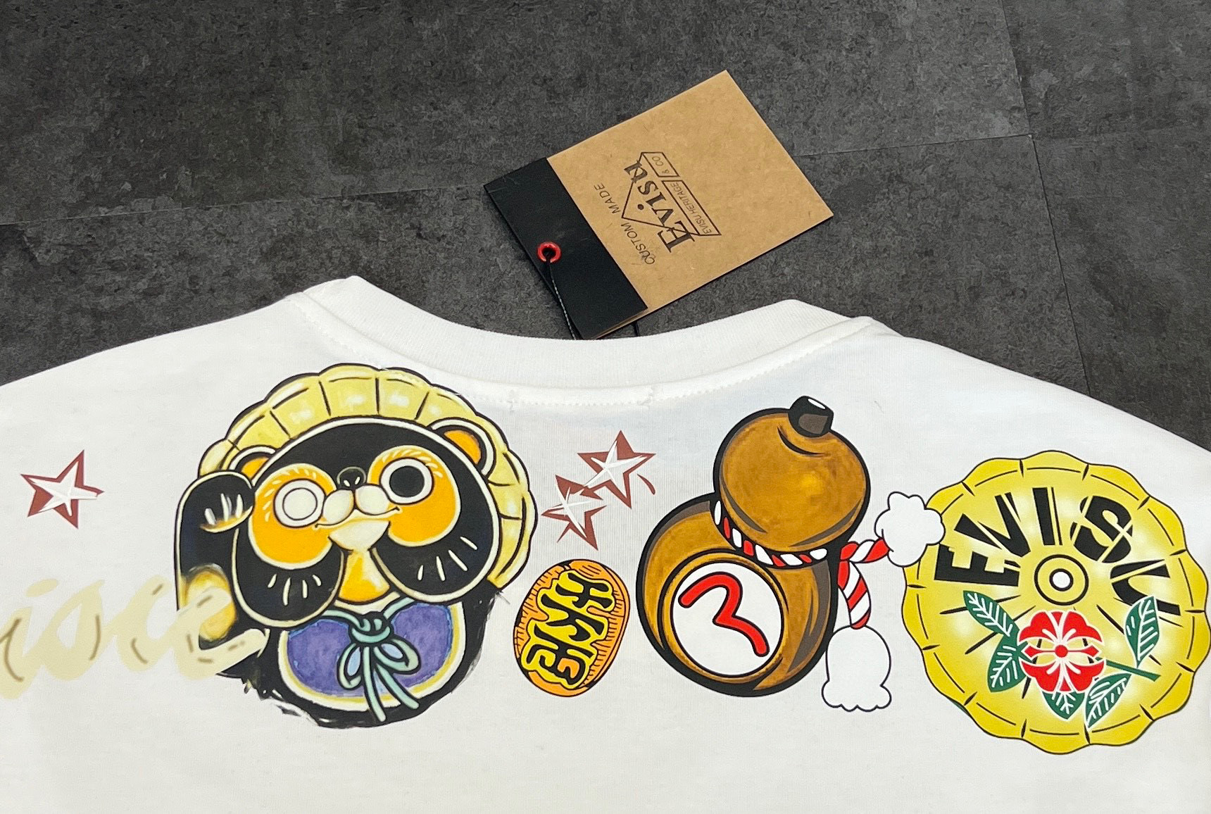 这款衣服是AAAAA 1:1 质量 (非常棒). 使用了和原版一模一样的材料. 商标部分也保持了和EVISU一样. 图片拍摄是实物衣服拍摄, 您所收到的实物保证和我们图片一模一样.