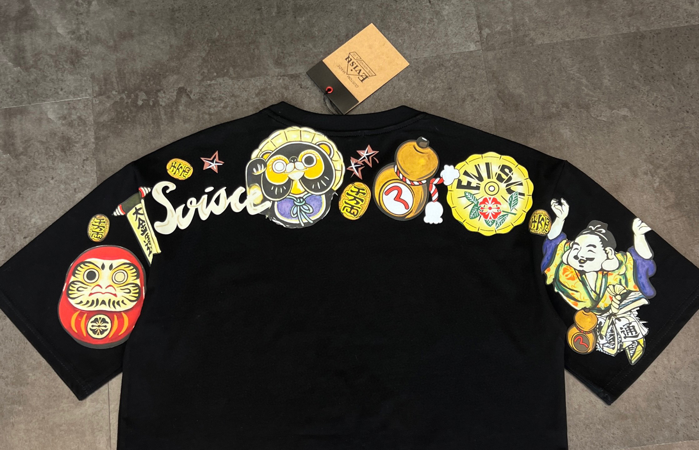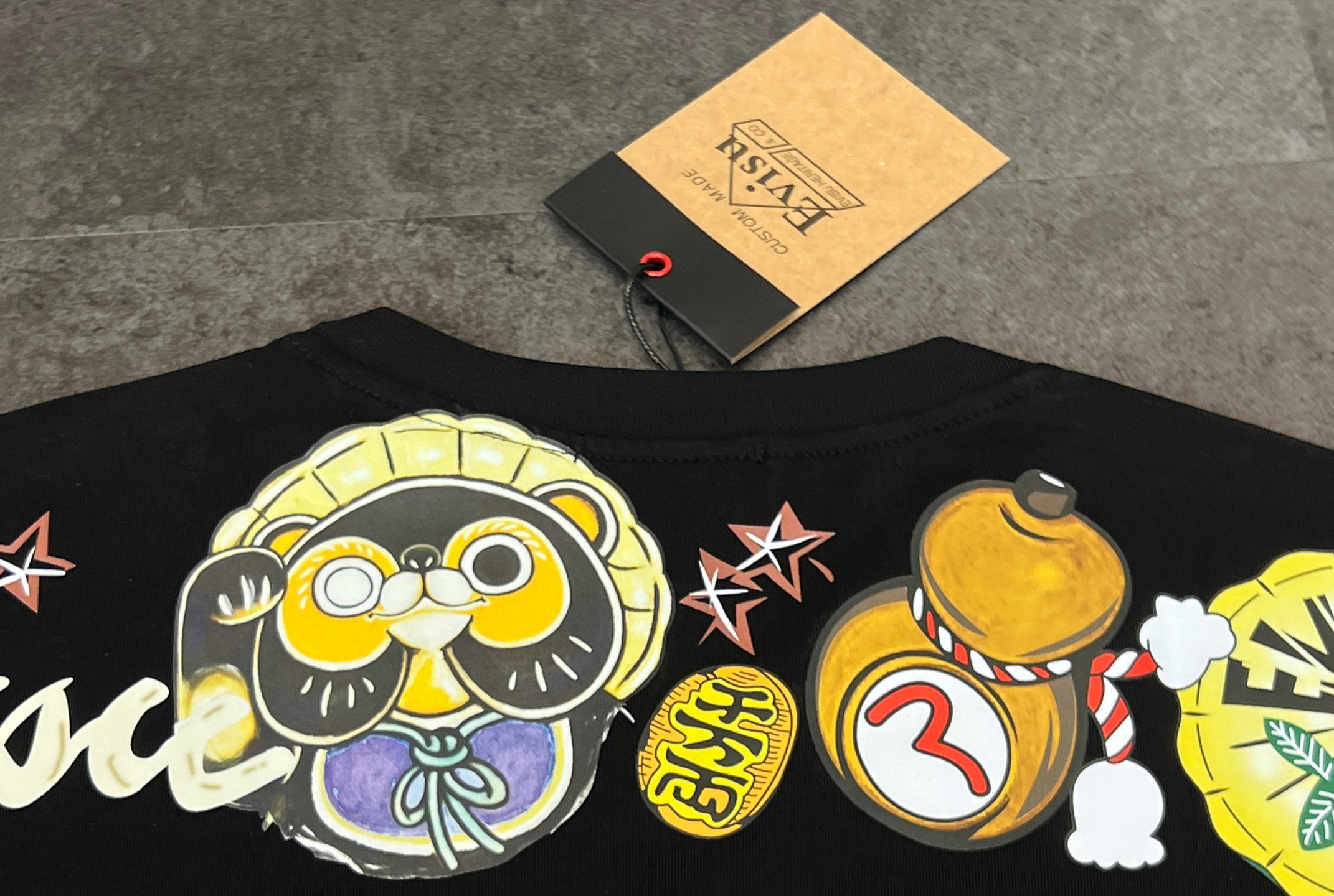 这款衣服是AAAAA 1:1 质量 (非常棒). 使用了和原版一模一样的材料. 商标部分也保持了和EVISU一样. 图片拍摄是实物衣服拍摄, 您所收到的实物保证和我们图片一模一样.
