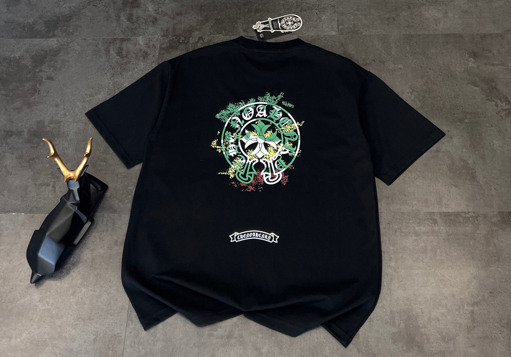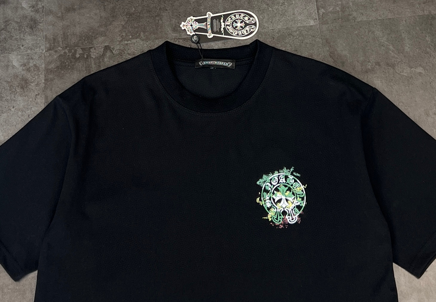 这款衣服是AAAAA 1:1 质量 (非常棒). 使用了和原版一模一样的材料. 商标部分也保持了和克罗心/Chrome Hearts一样. 图片拍摄是实物衣服拍摄, 您所收到的实物保证和我们图片一模一样.