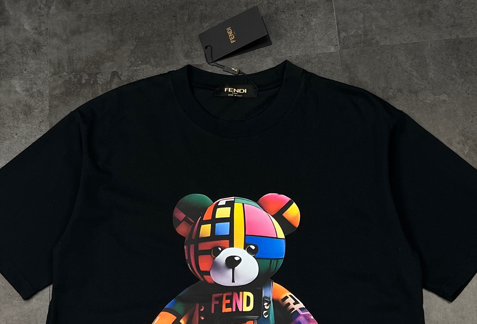 这款衣服是AAAAA 1:1 质量 (非常棒). 使用了和原版一模一样的材料. 商标部分也保持了和芬迪/Fendi一样. 图片拍摄是实物衣服拍摄, 您所收到的实物保证和我们图片一模一样.