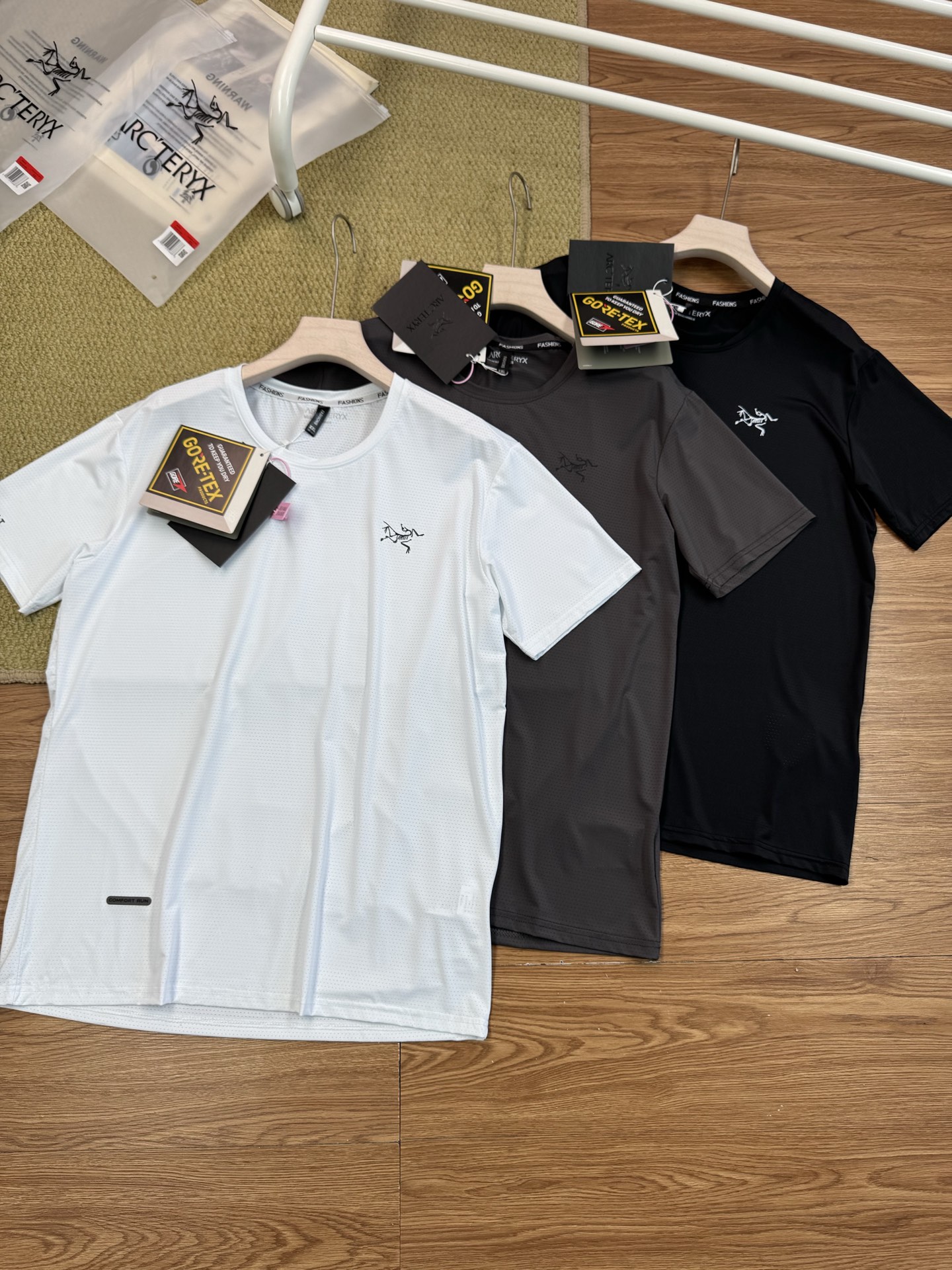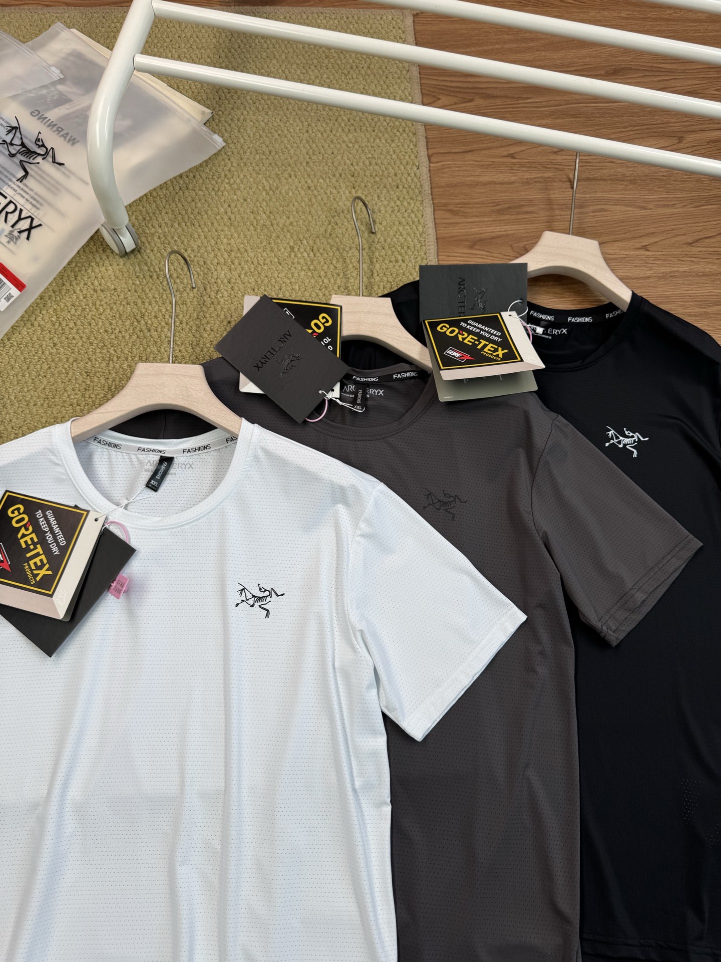 这款衣服是AAAAA 1:1 质量 (非常棒). 使用了和原版一模一样的材料. 商标部分也保持了和ARC'TERYX一样. 图片拍摄是实物衣服拍摄, 您所收到的实物保证和我们图片一模一样.