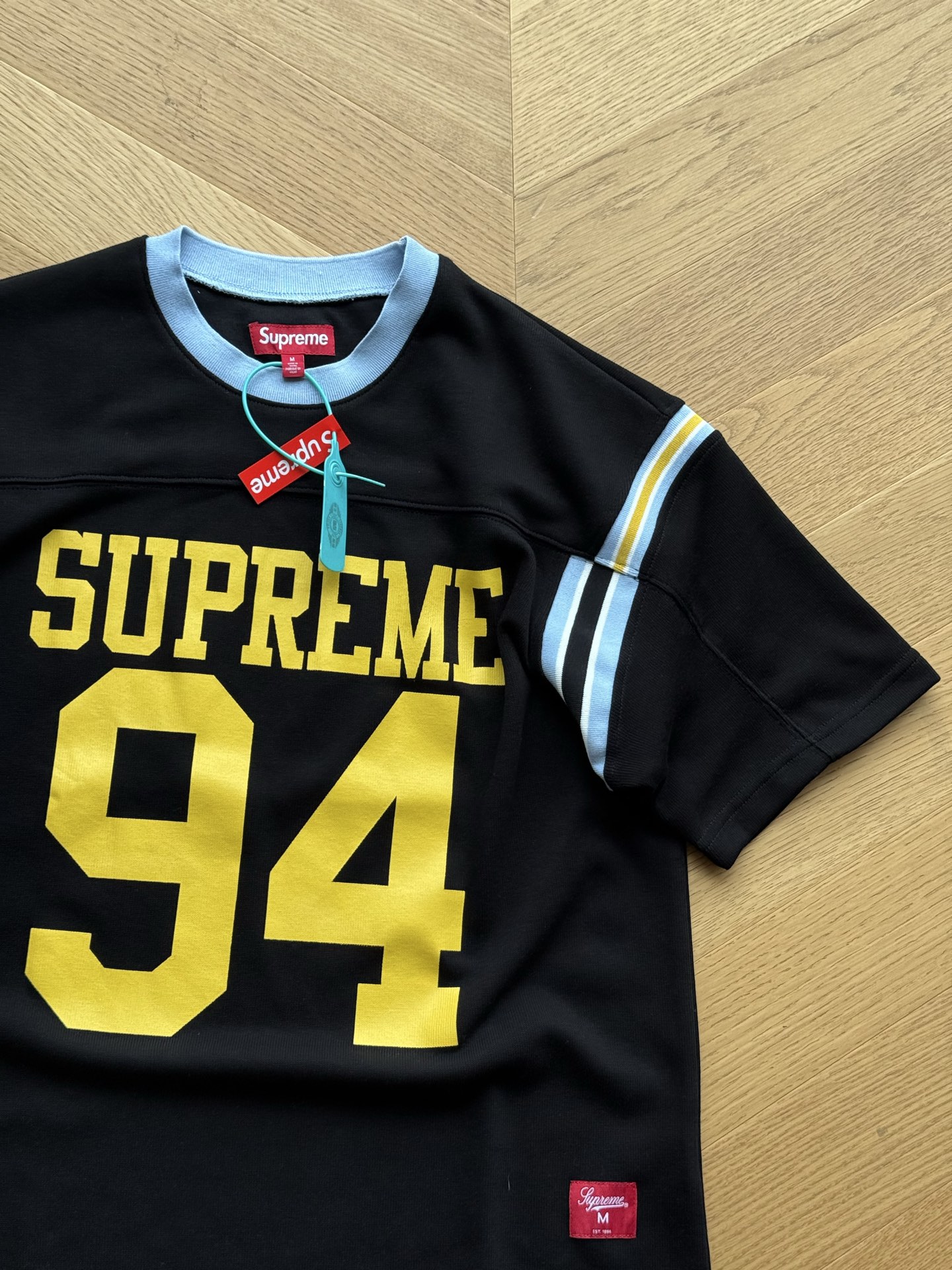 这款衣服是AAAAA 1:1 质量 (非常棒). 使用了和原版一模一样的材料. 商标部分也保持了和Superme一样. 图片拍摄是实物衣服拍摄, 您所收到的实物保证和我们图片一模一样.