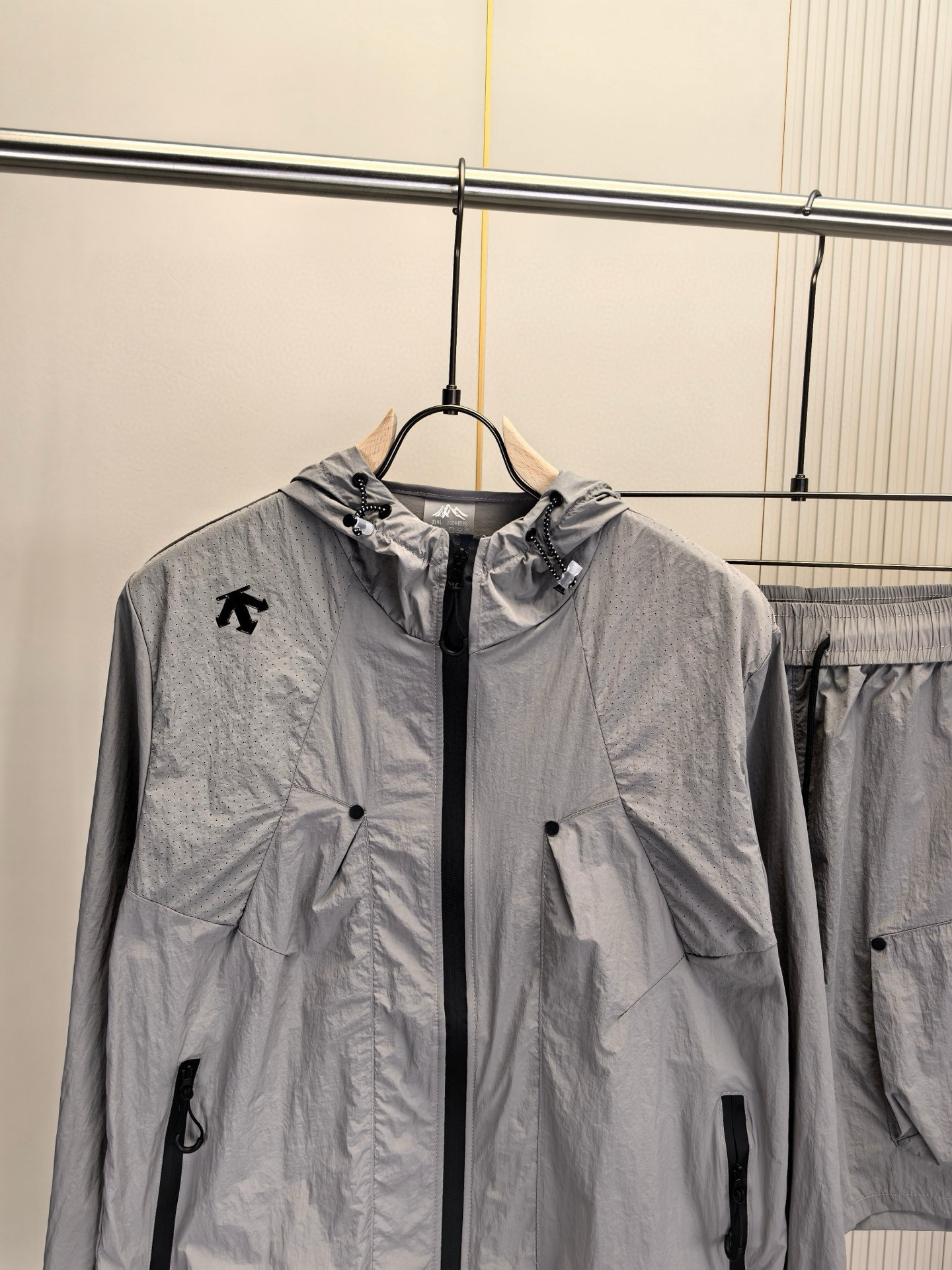 这款衣服是AAAAA 1:1 质量 (非常棒). 使用了和原版一模一样的材料. 商标部分也保持了和Descente一样. 图片拍摄是实物衣服拍摄, 您所收到的实物保证和我们图片一模一样.