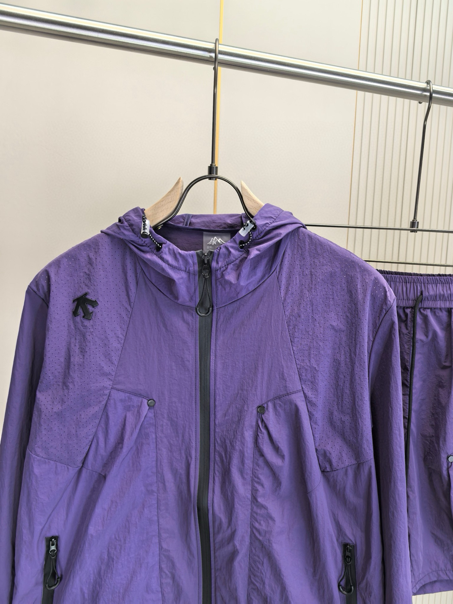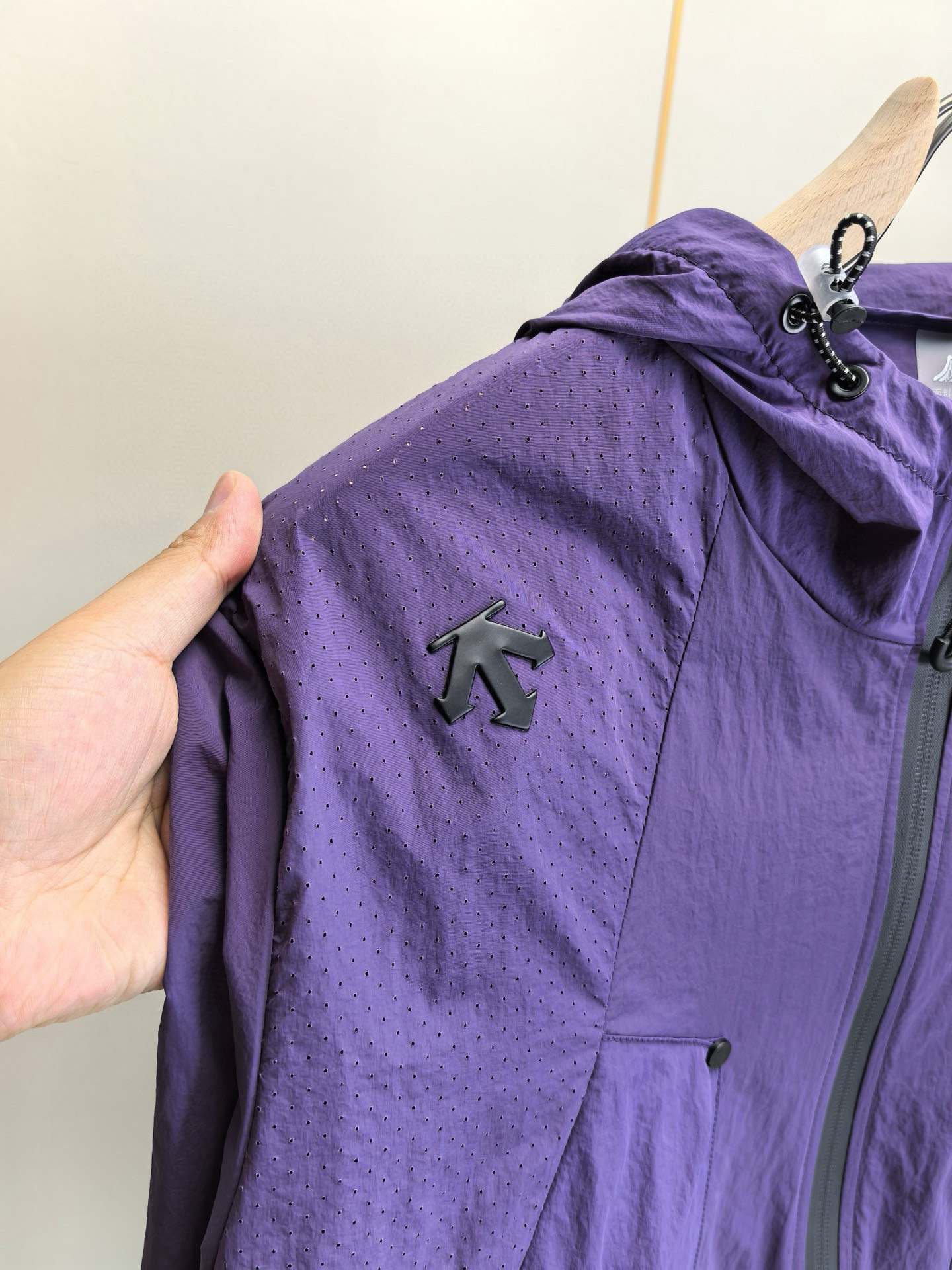 这款衣服是AAAAA 1:1 质量 (非常棒). 使用了和原版一模一样的材料. 商标部分也保持了和Descente一样. 图片拍摄是实物衣服拍摄, 您所收到的实物保证和我们图片一模一样.