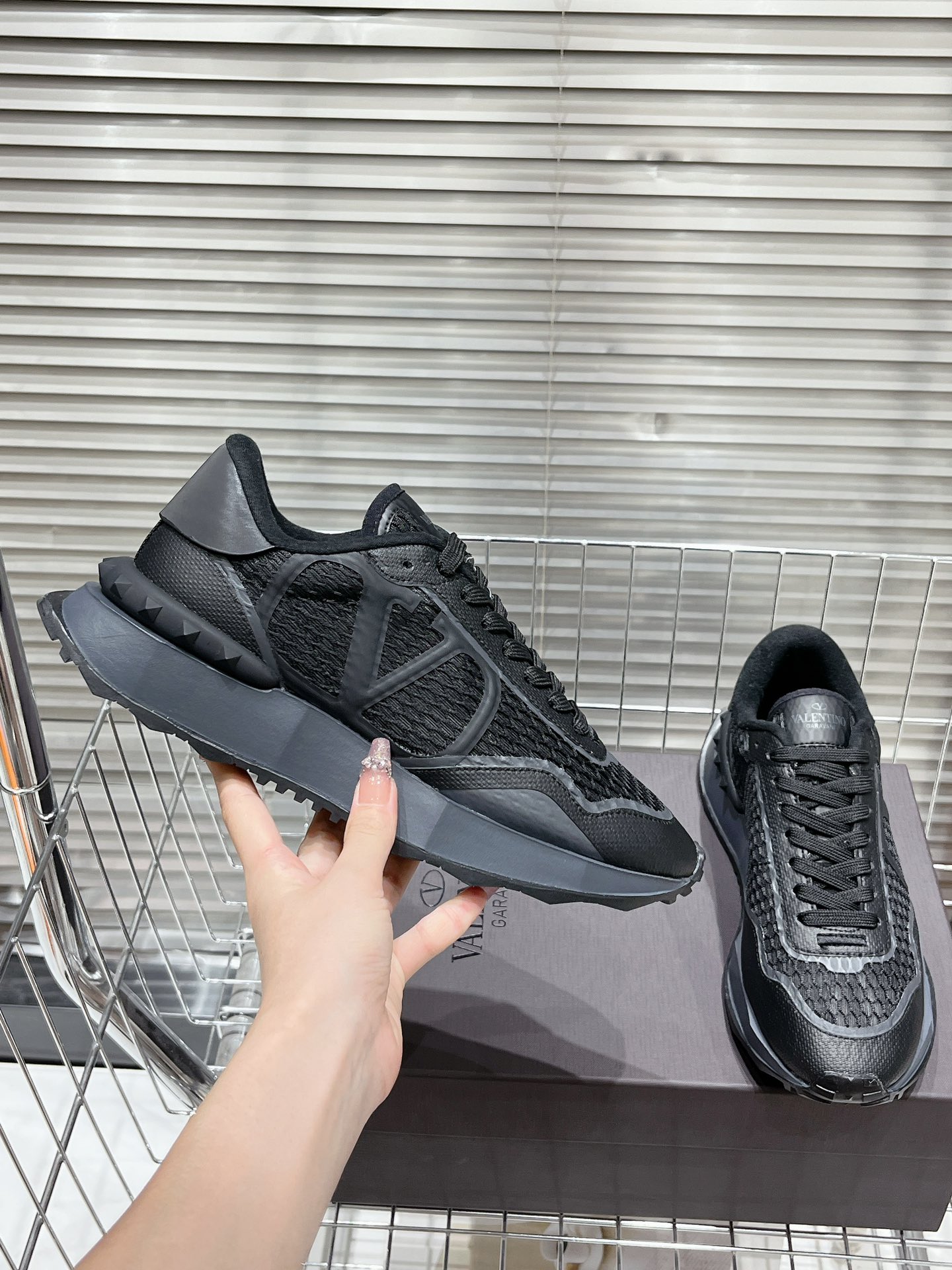 这款鞋子是AAAAA 1:1 质量 (非常棒). 使用了和原版一模一样的材料. 商标部分也保持了和华伦天奴/Valentino一样. 图片拍摄是实物鞋子拍摄, 您所收到的实物保证和我们图片一模一样.