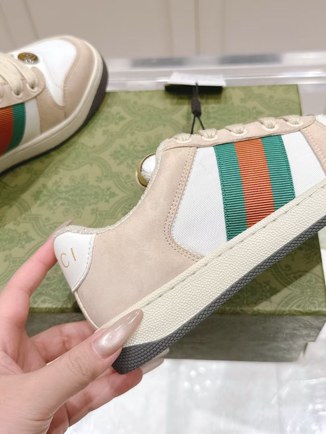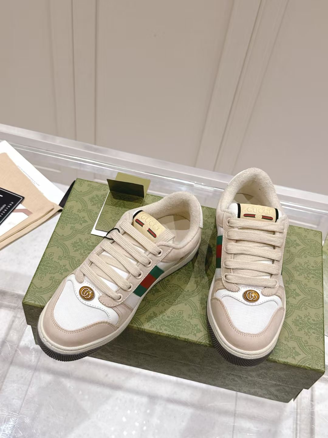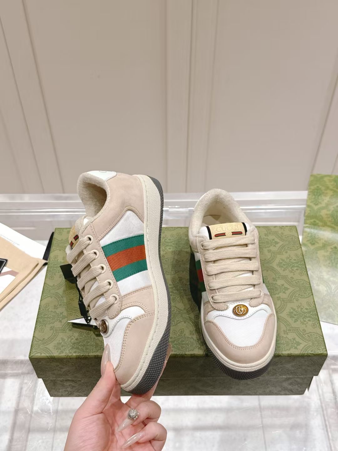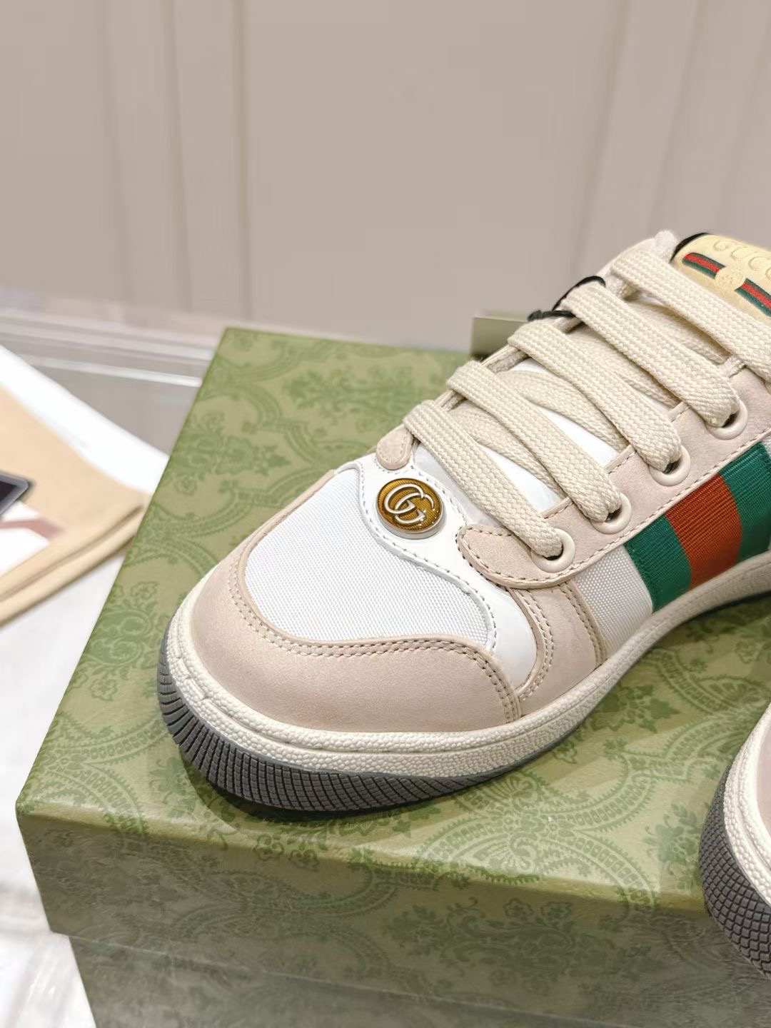 这款鞋子是AAAAA 1:1 质量 (非常棒). 使用了和原版一模一样的材料. 商标部分也保持了和古奇/Gucci一样. 图片拍摄是实物鞋子拍摄, 您所收到的实物保证和我们图片一模一样.