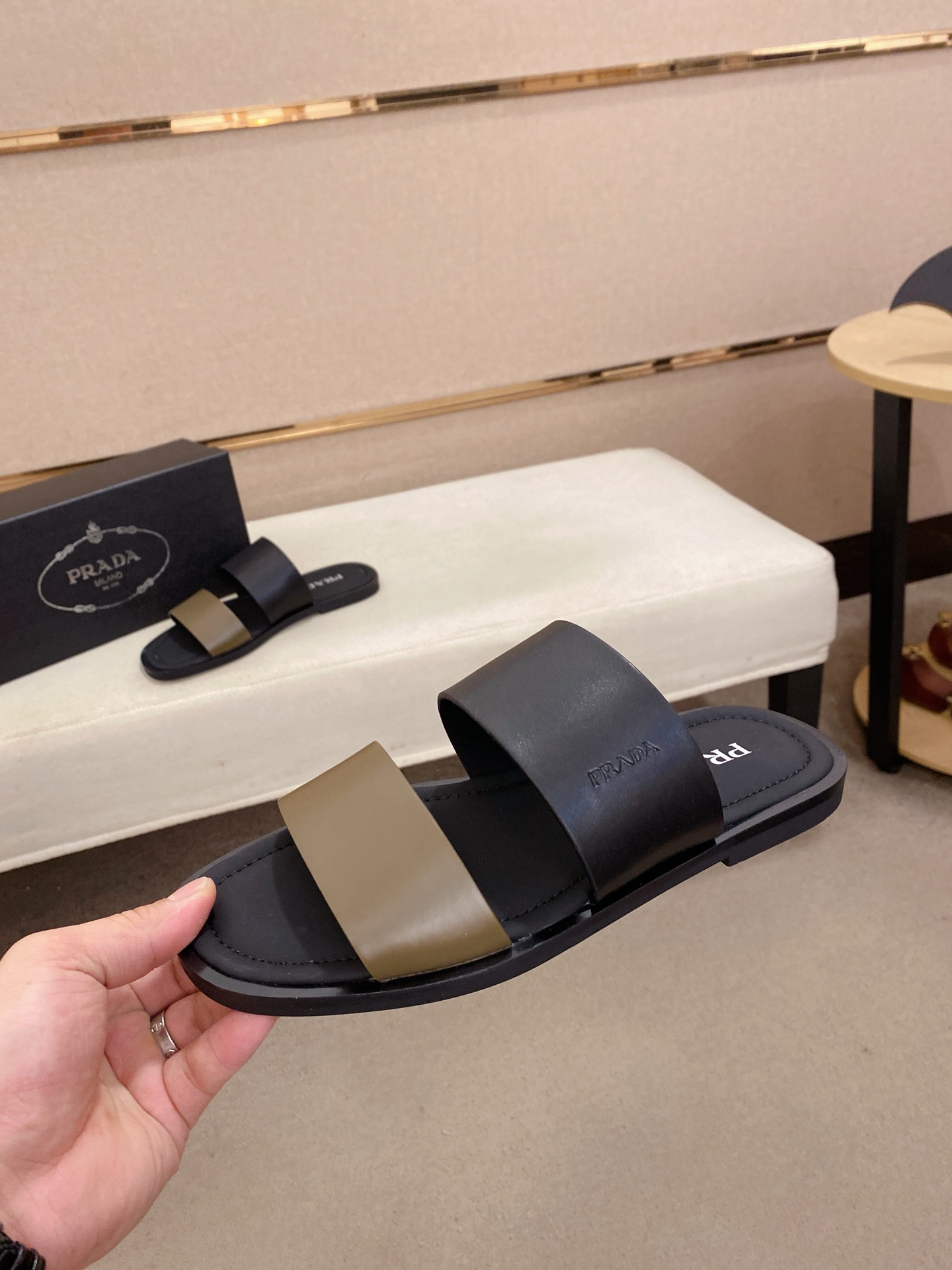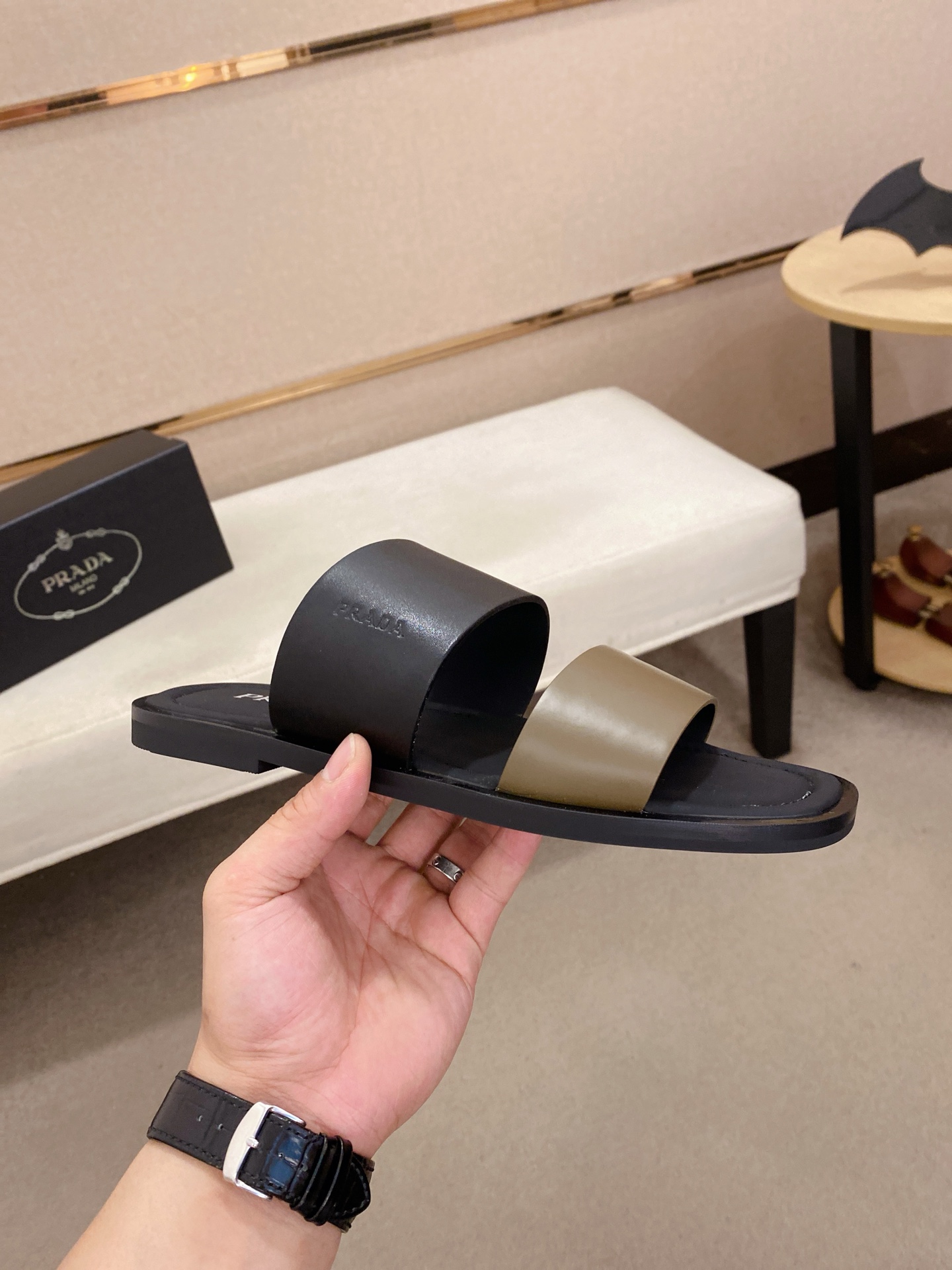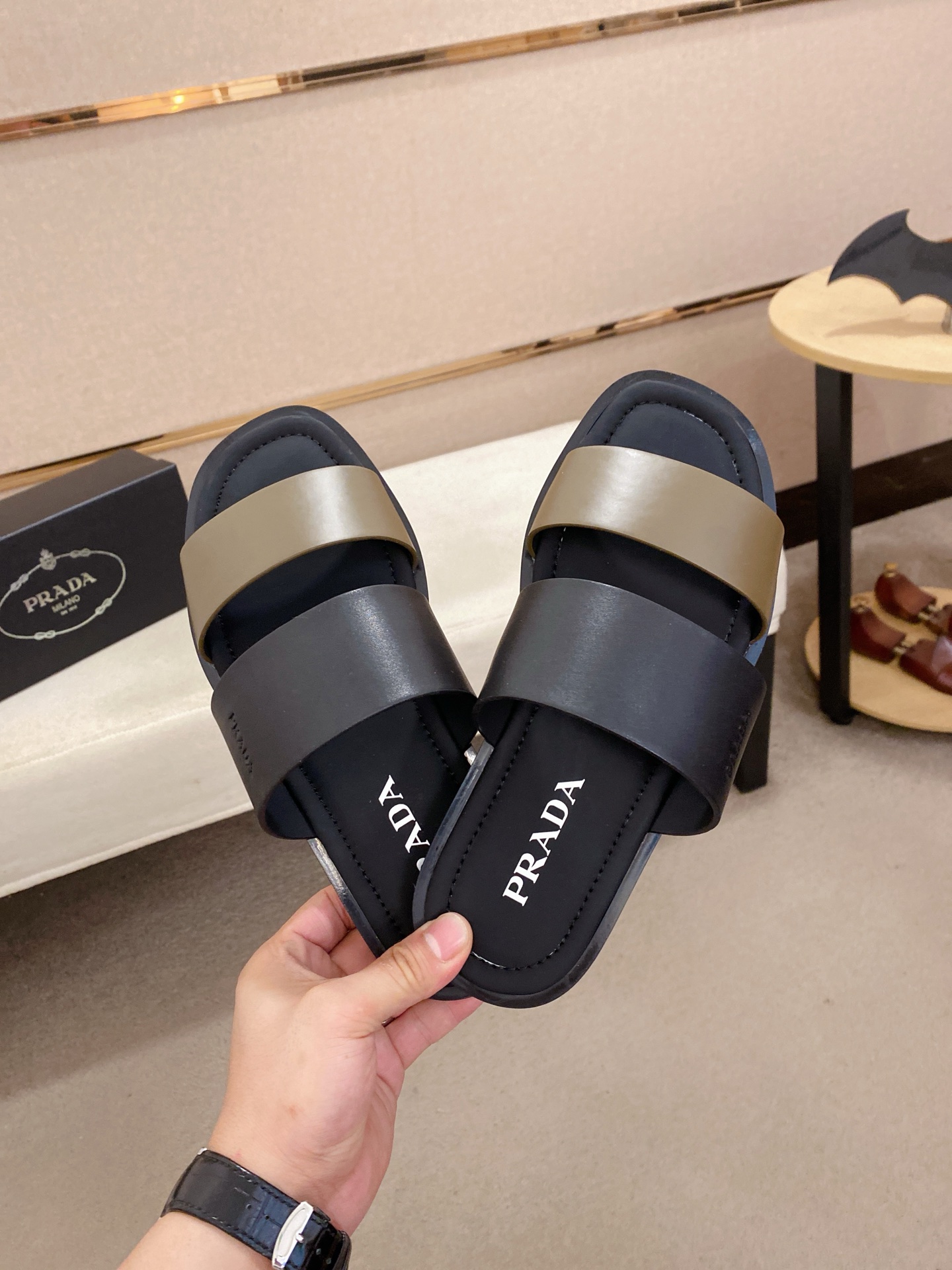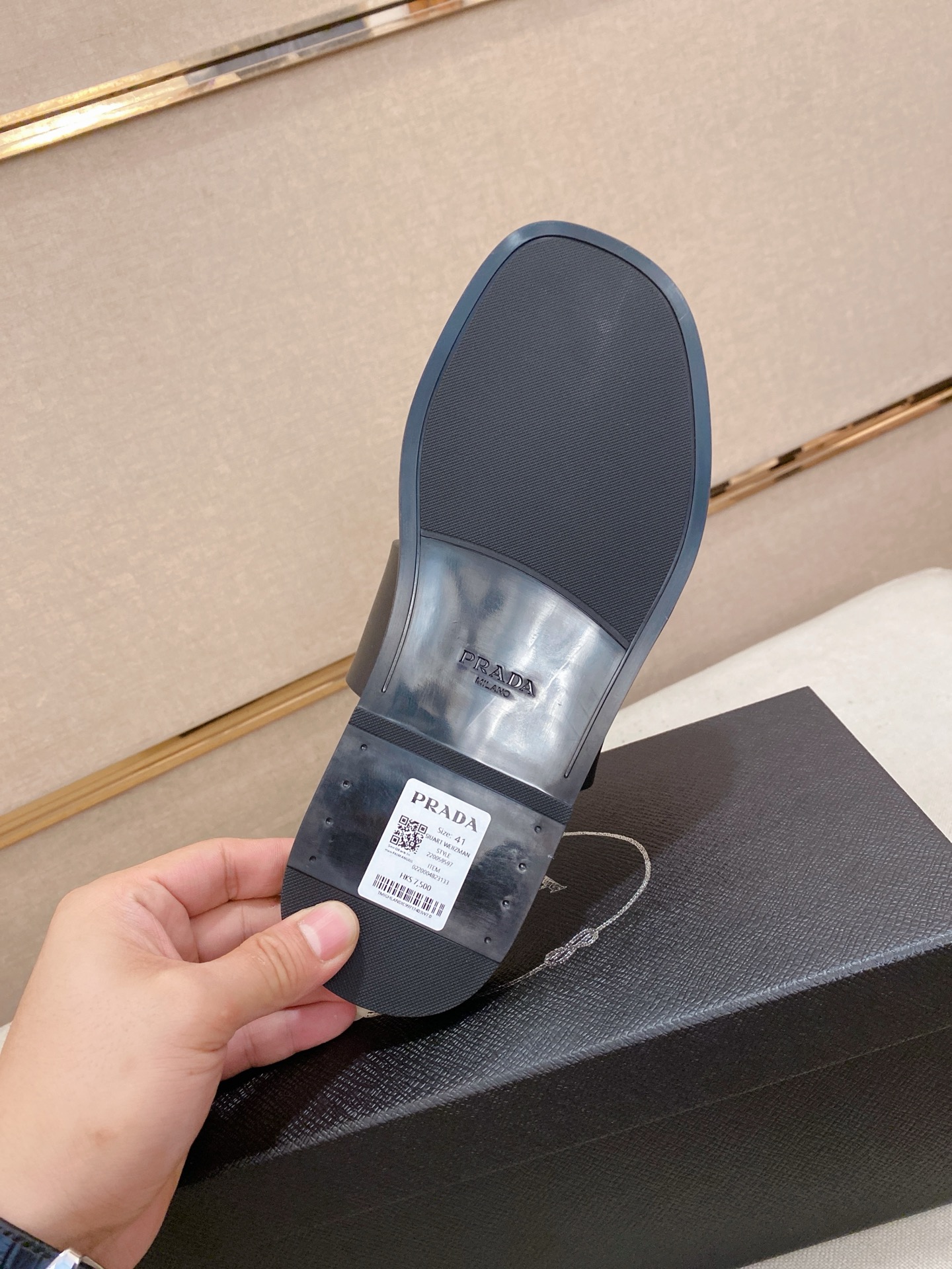 这款鞋子是AAAAA 1:1 质量 (非常棒). 使用了和原版一模一样的材料. 商标部分也保持了和普拉达/Prada一样. 图片拍摄是实物鞋子拍摄, 您所收到的实物保证和我们图片一模一样.