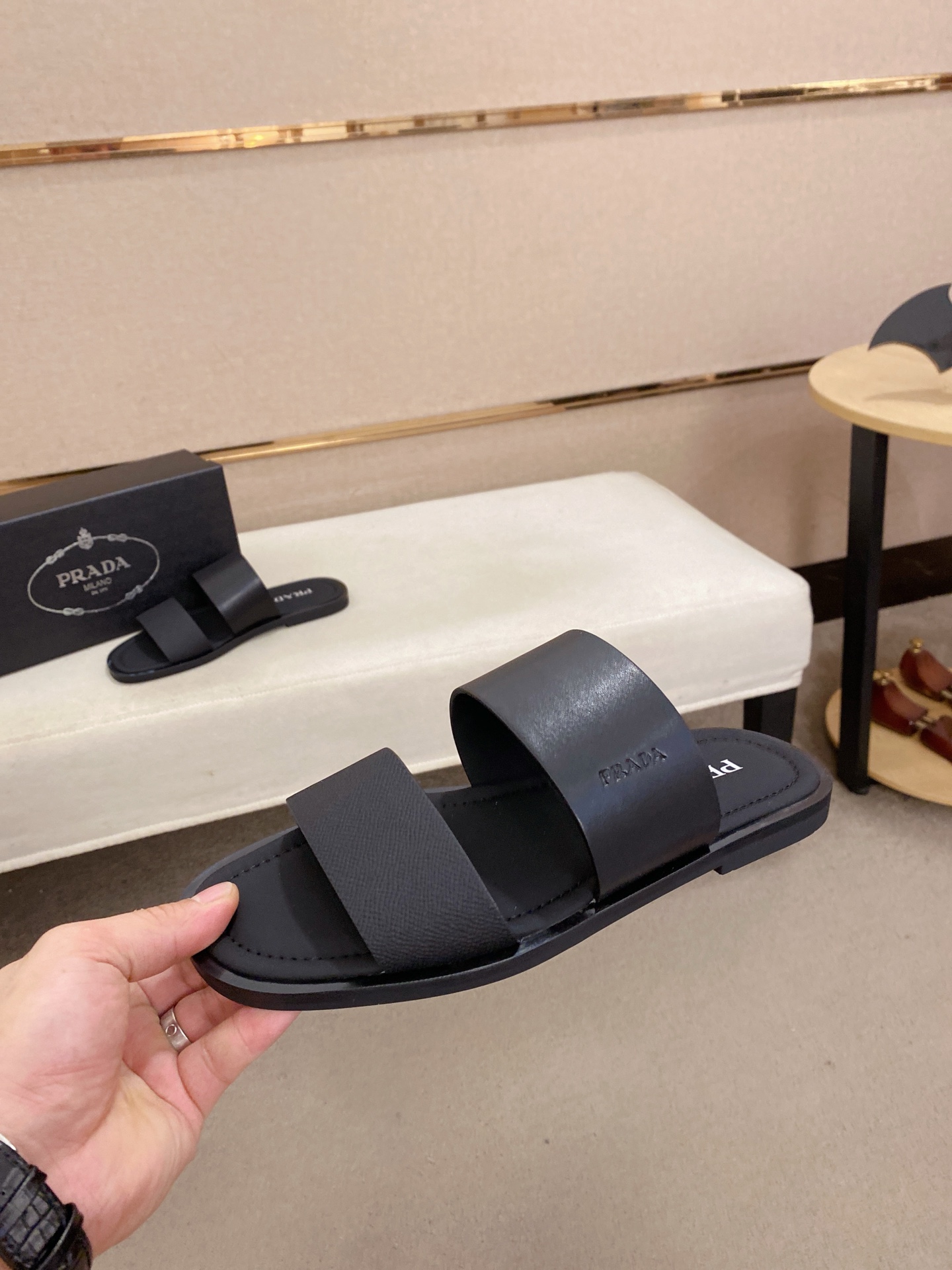 这款鞋子是AAAAA 1:1 质量 (非常棒). 使用了和原版一模一样的材料. 商标部分也保持了和普拉达/Prada一样. 图片拍摄是实物鞋子拍摄, 您所收到的实物保证和我们图片一模一样.