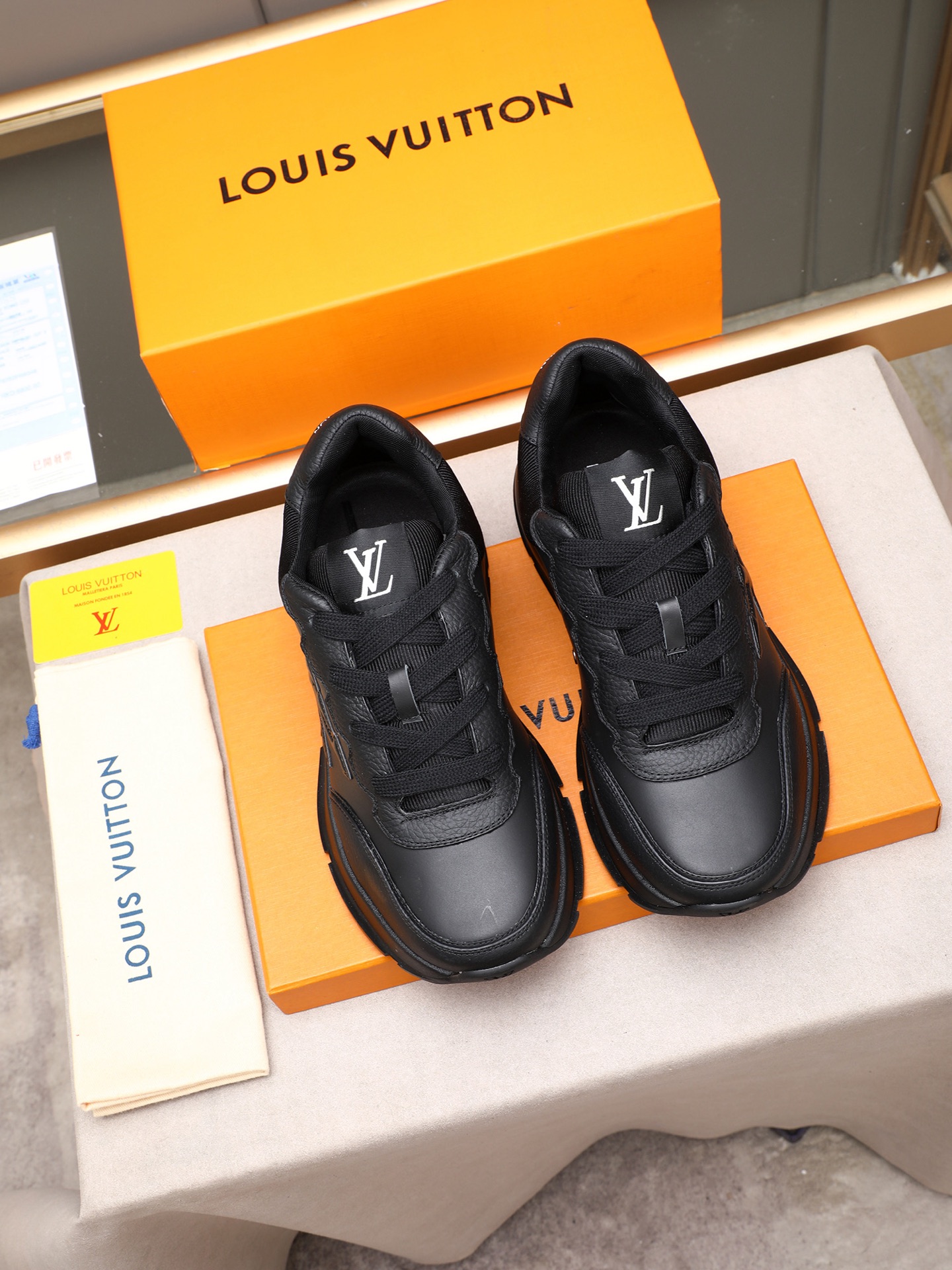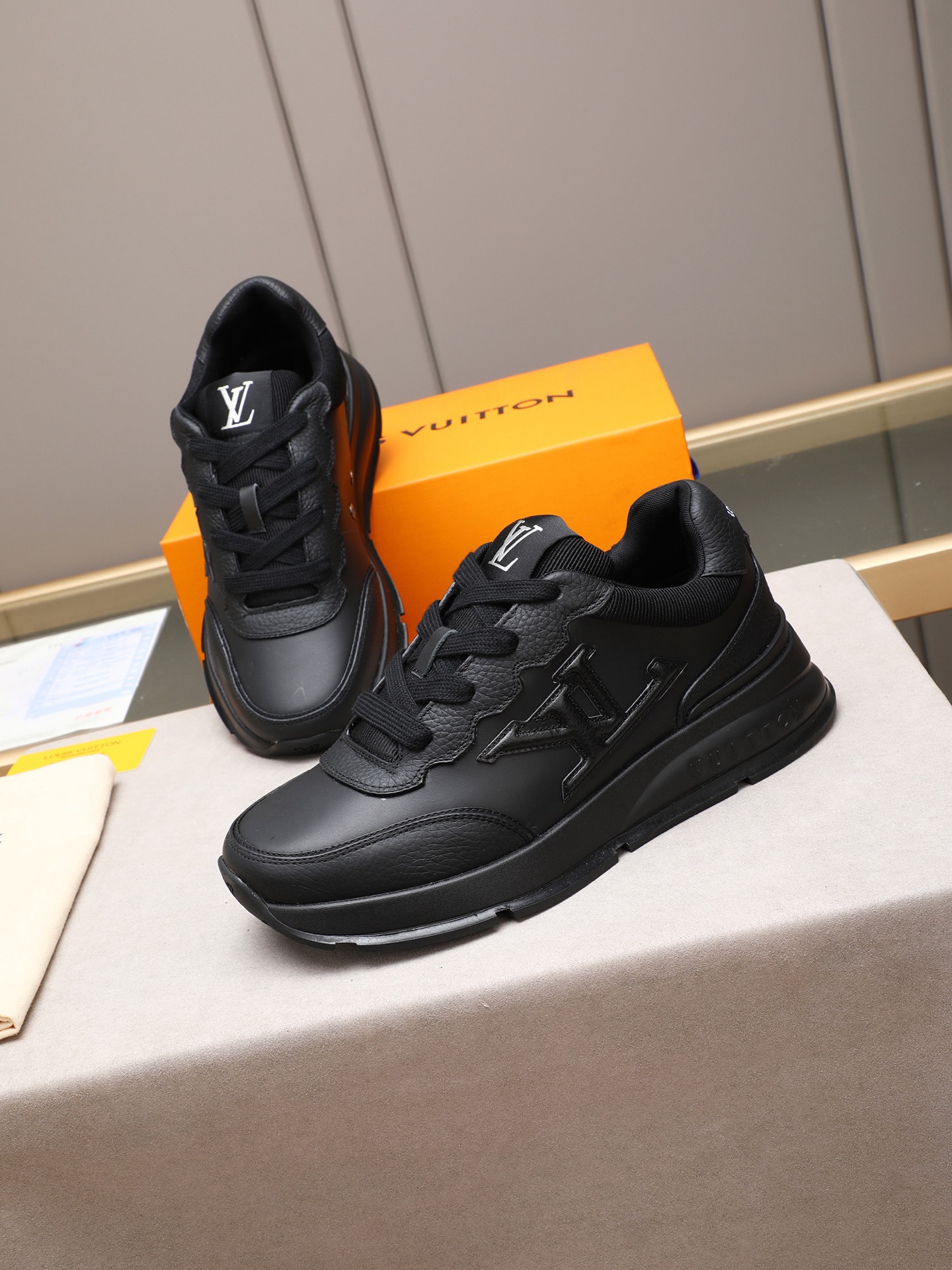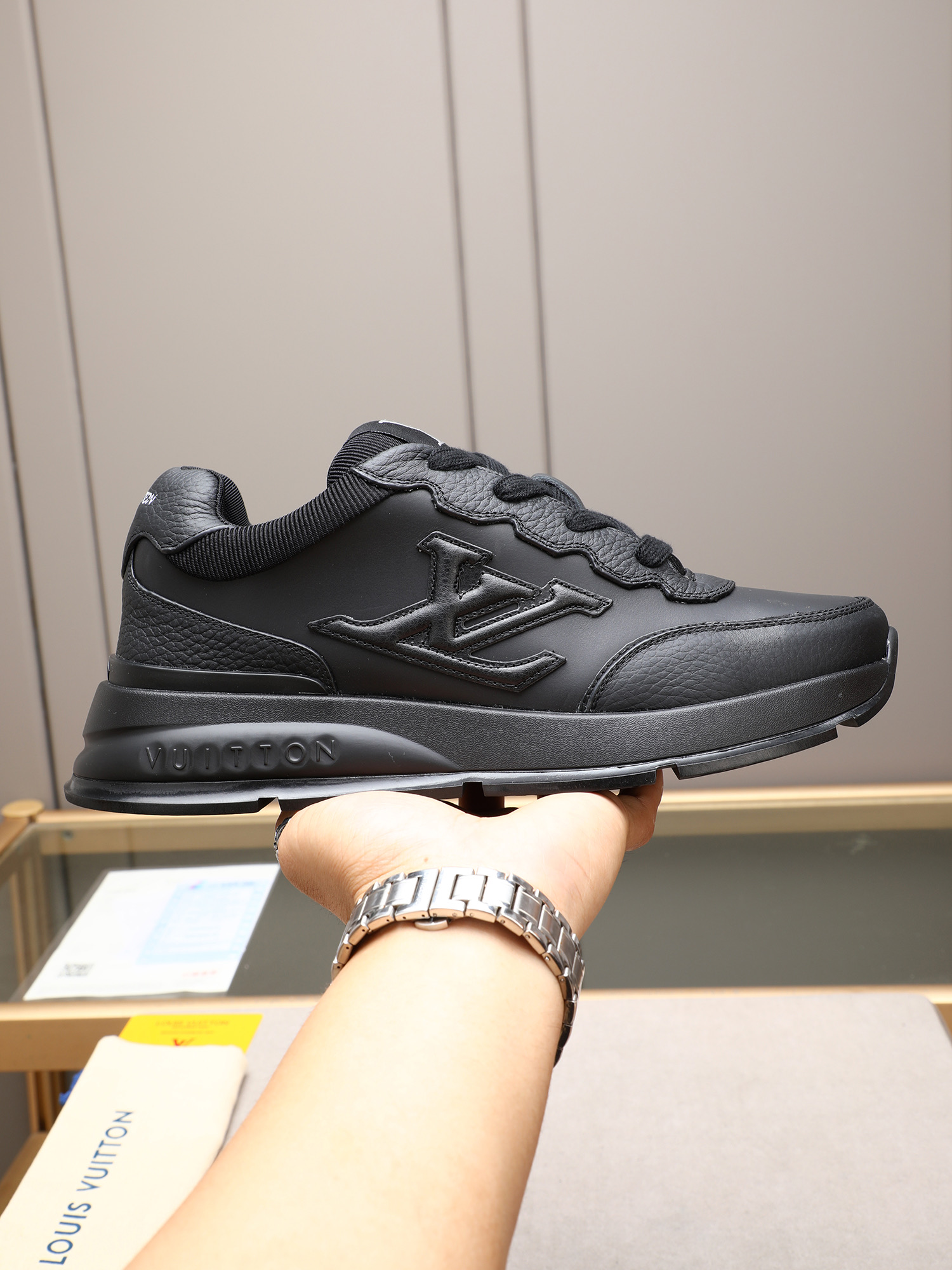 这款鞋子是AAAAA 1:1 质量 (非常棒). 使用了和原版一模一样的材料. 商标部分也保持了和路易威登/Louis Vuitton一样. 图片拍摄是实物鞋子拍摄, 您所收到的实物保证和我们图片一模一样.