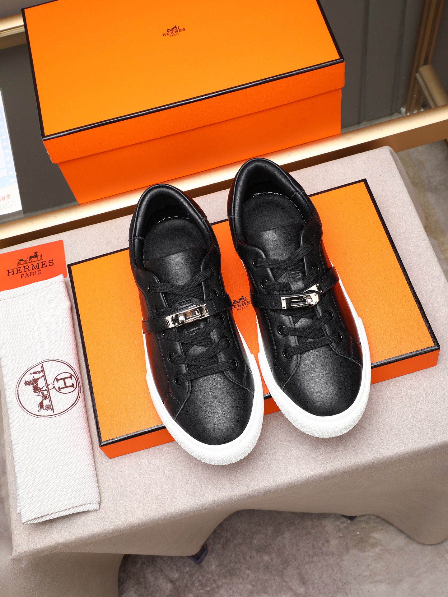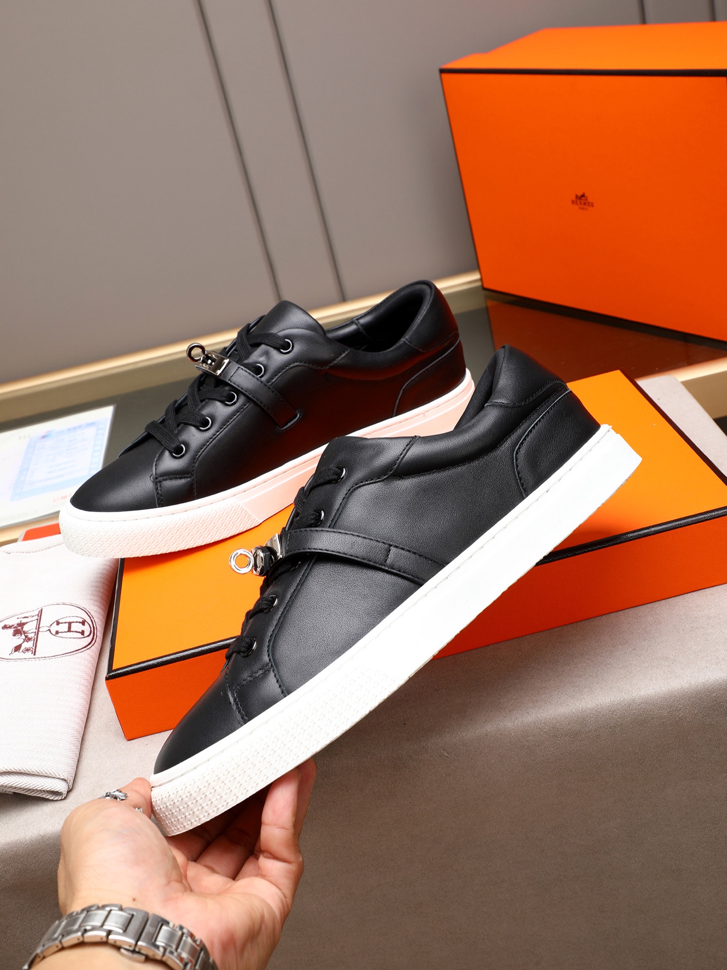 这款鞋子是AAAAA 1:1 质量 (非常棒). 使用了和原版一模一样的材料. 商标部分也保持了和爱马仕/Hermes一样. 图片拍摄是实物鞋子拍摄, 您所收到的实物保证和我们图片一模一样.