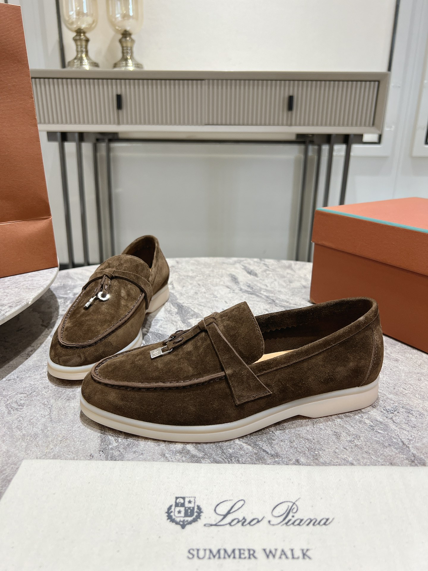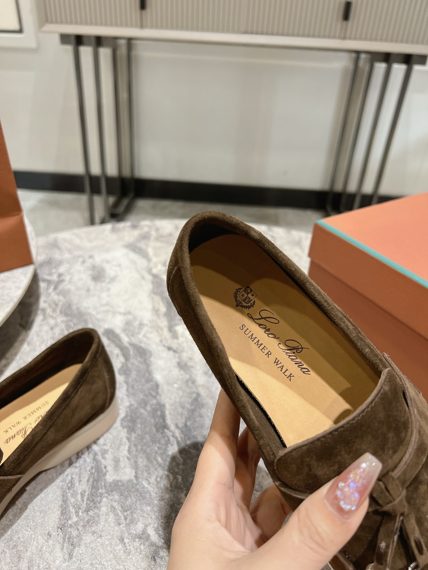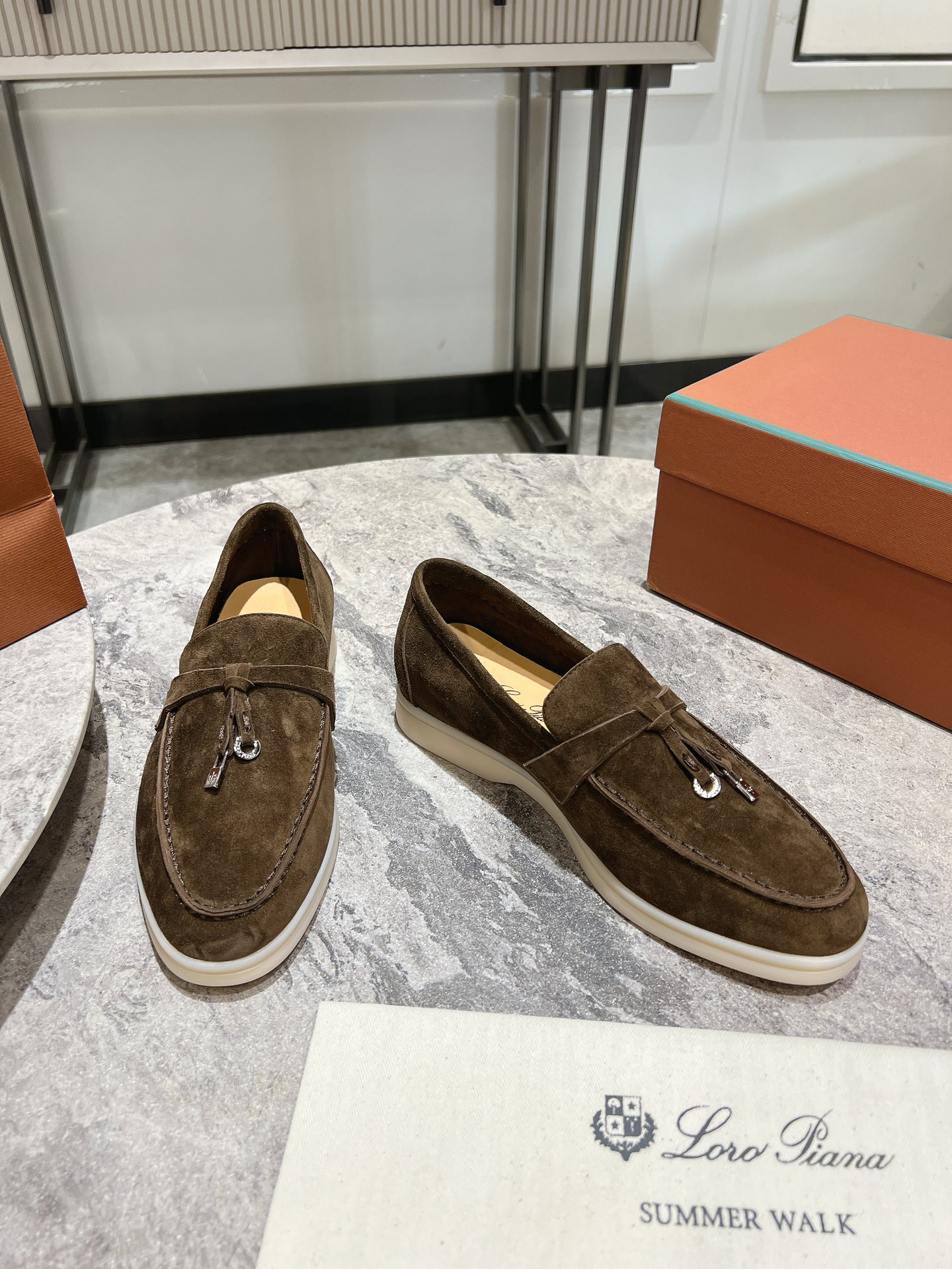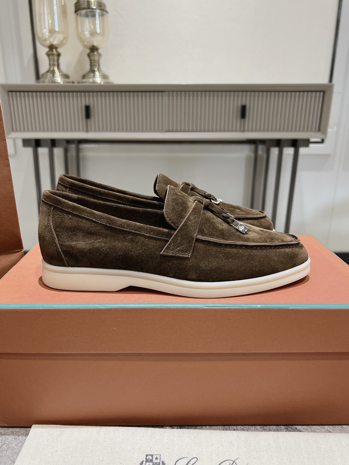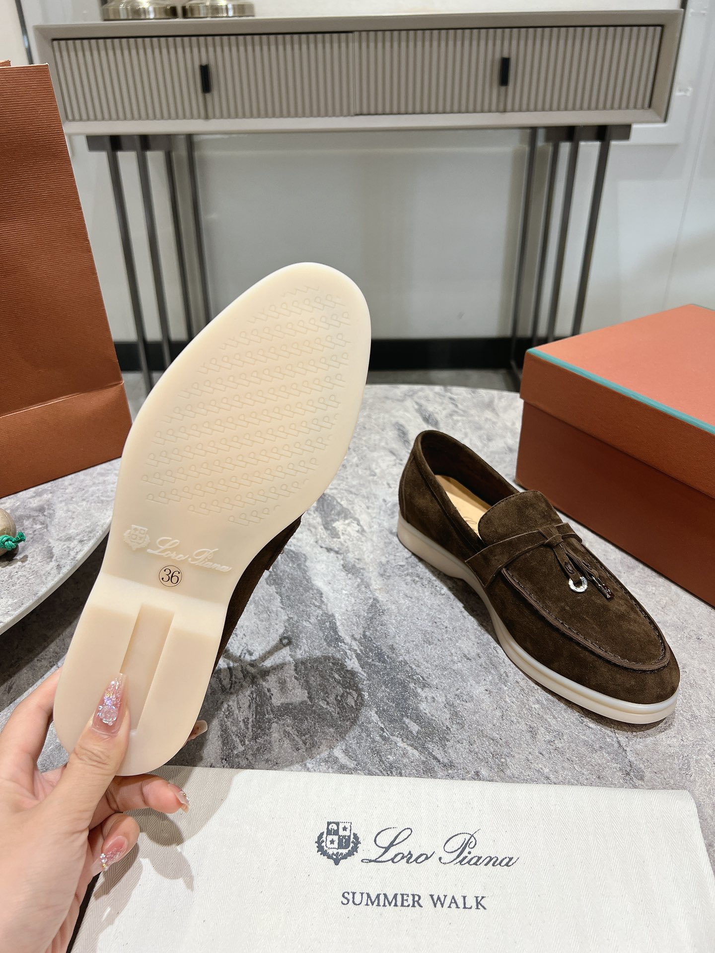 这款鞋子是AAAAA 1:1 质量 (非常棒). 使用了和原版一模一样的材料. 商标部分也保持了和洛罗皮亚纳/Loro Piana一样. 图片拍摄是实物鞋子拍摄, 您所收到的实物保证和我们图片一模一样.