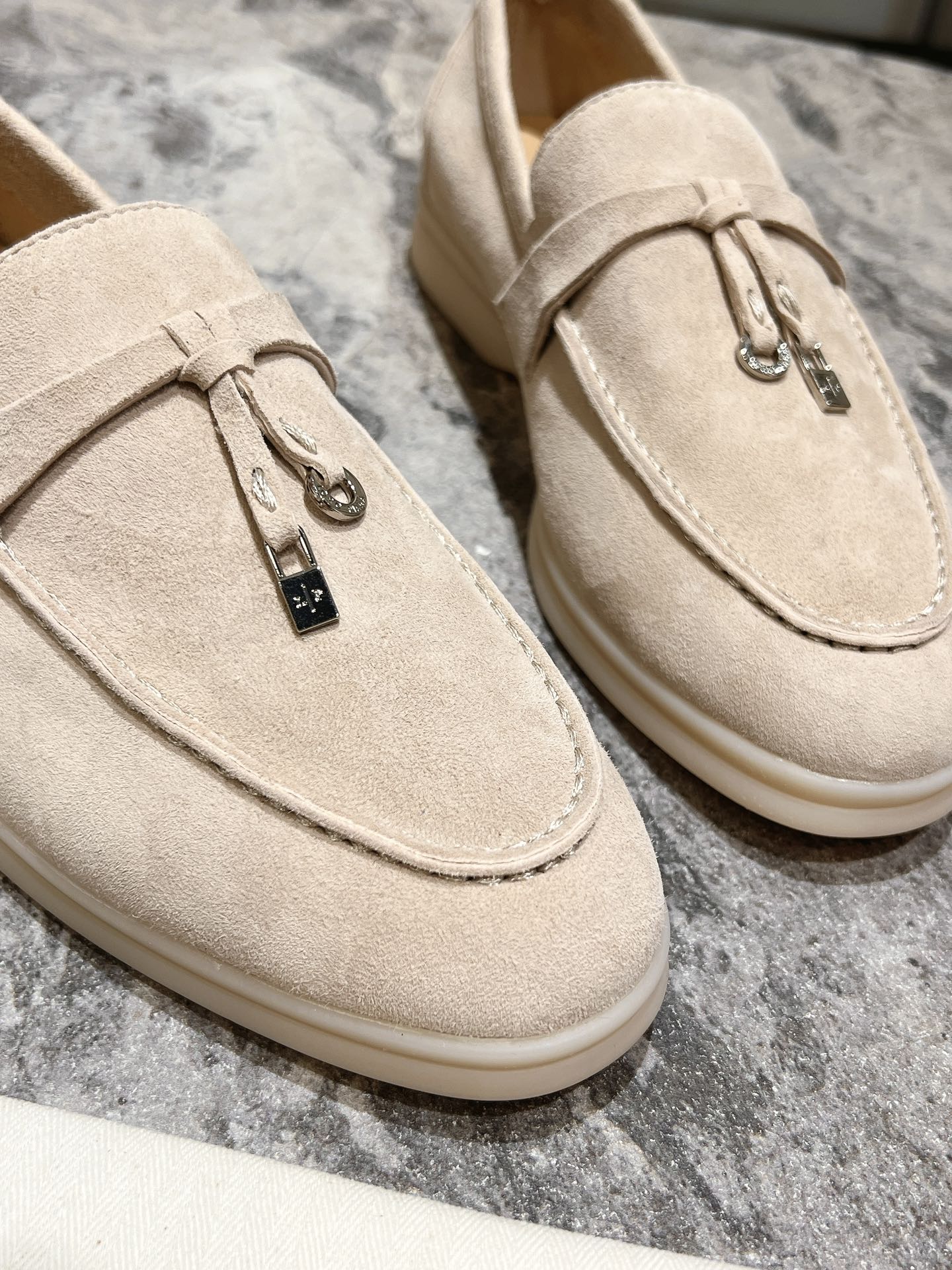 这款鞋子是AAAAA 1:1 质量 (非常棒). 使用了和原版一模一样的材料. 商标部分也保持了和洛罗皮亚纳/Loro Piana一样. 图片拍摄是实物鞋子拍摄, 您所收到的实物保证和我们图片一模一样.
