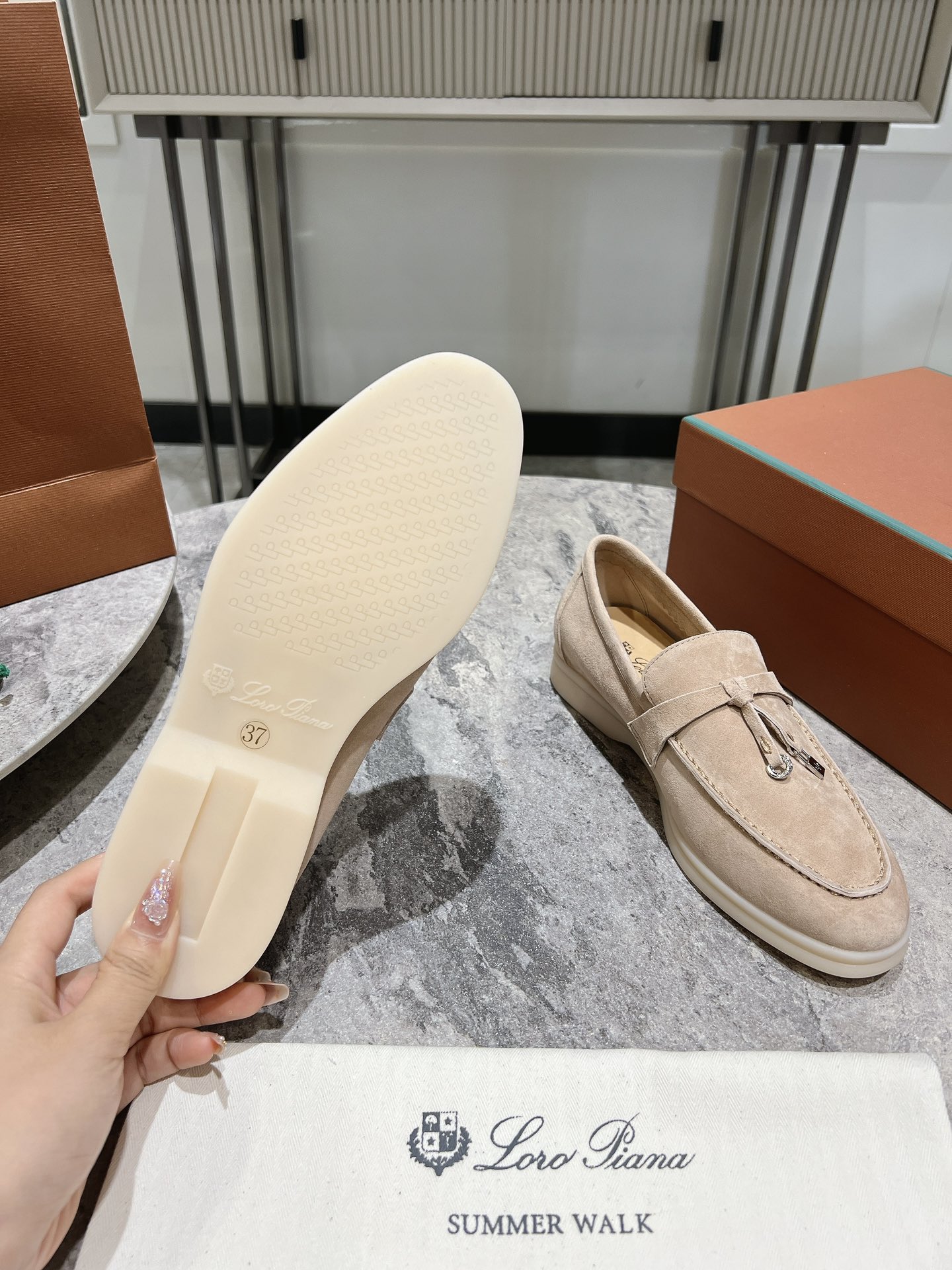 这款鞋子是AAAAA 1:1 质量 (非常棒). 使用了和原版一模一样的材料. 商标部分也保持了和洛罗皮亚纳/Loro Piana一样. 图片拍摄是实物鞋子拍摄, 您所收到的实物保证和我们图片一模一样.