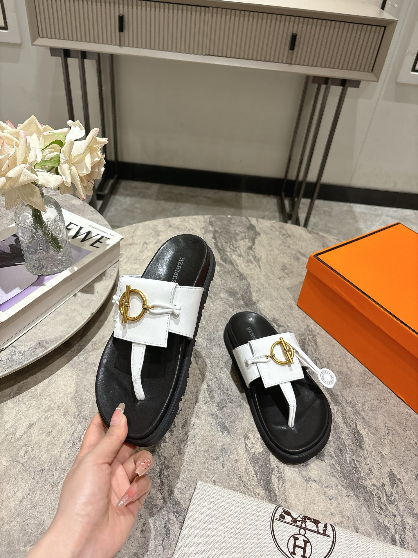 这款鞋子是AAAAA 1:1 质量 (非常棒). 使用了和原版一模一样的材料. 商标部分也保持了和爱马仕/Hermes一样. 图片拍摄是实物鞋子拍摄, 您所收到的实物保证和我们图片一模一样.