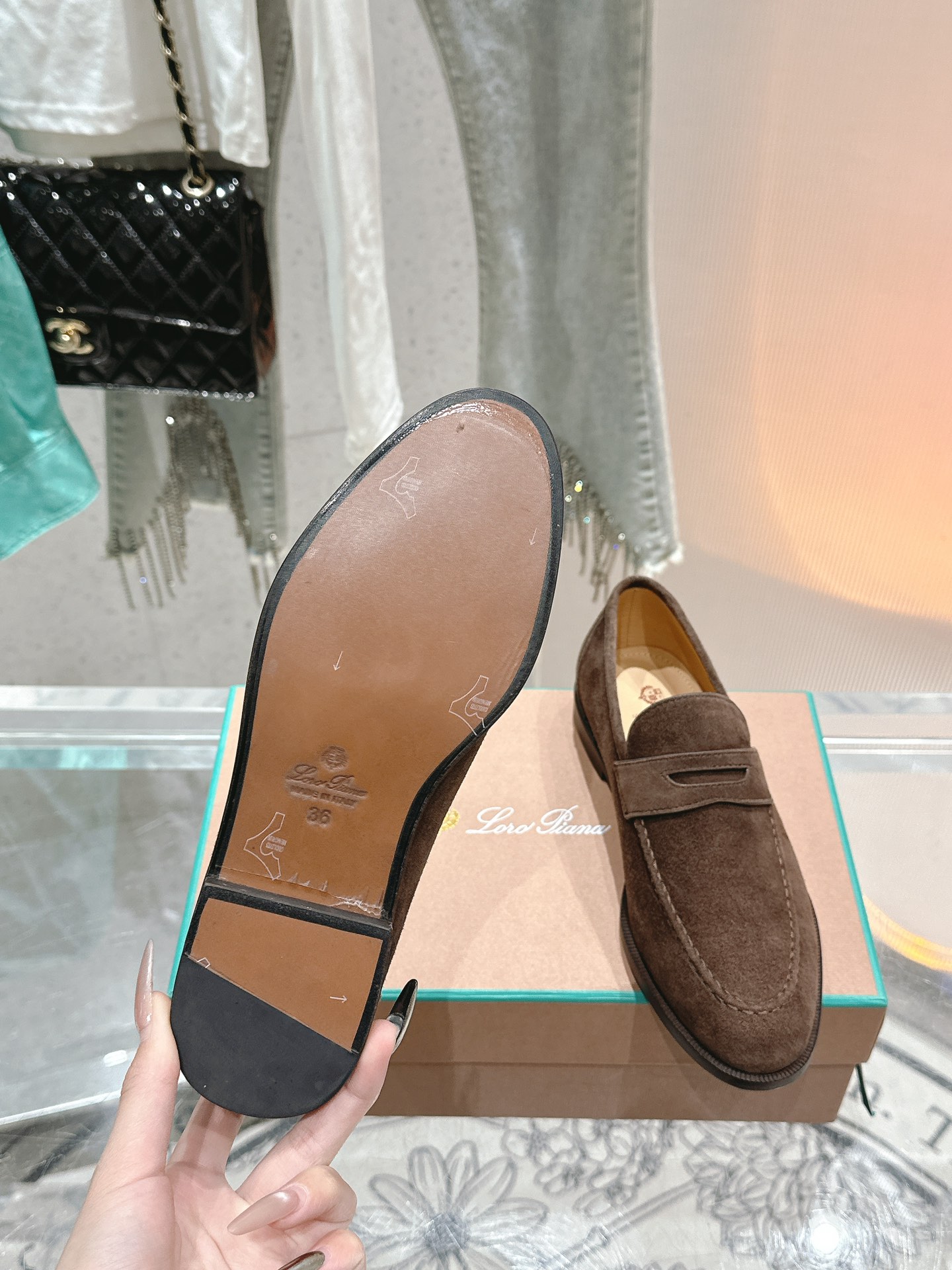 这款鞋子是AAAAA 1:1 质量 (非常棒). 使用了和原版一模一样的材料. 商标部分也保持了和洛罗皮亚纳/Loro Piana一样. 图片拍摄是实物鞋子拍摄, 您所收到的实物保证和我们图片一模一样.