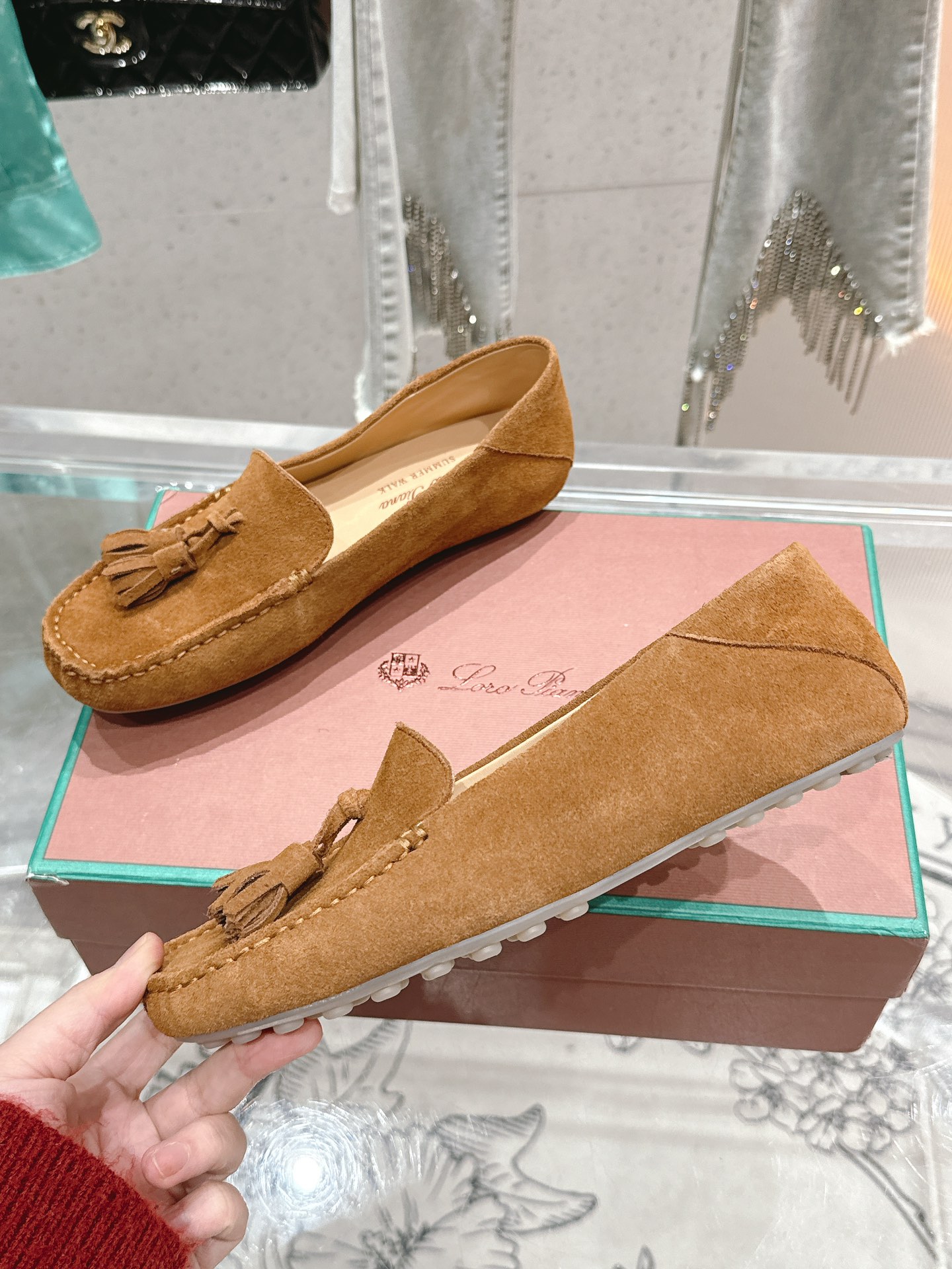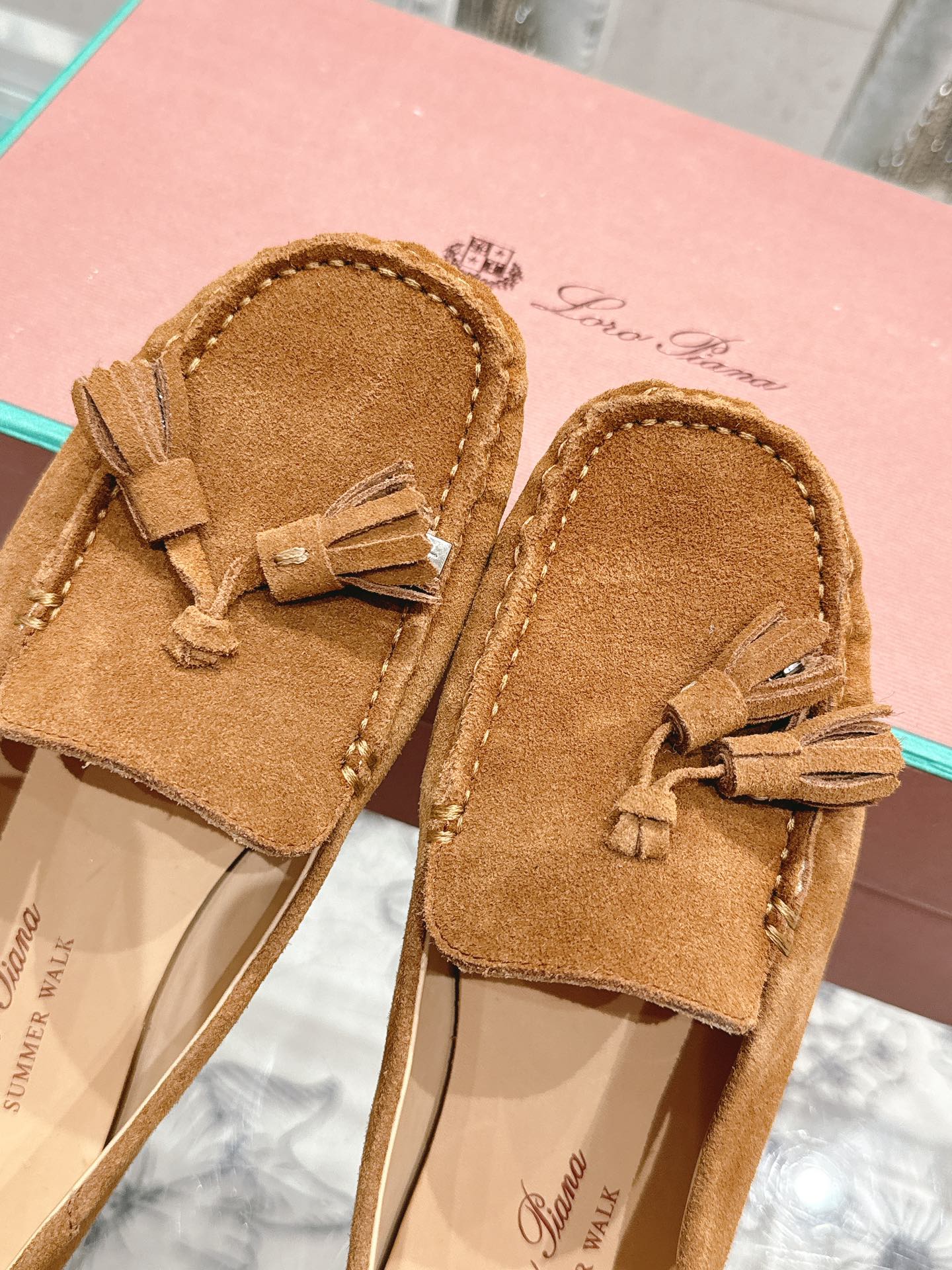 这款鞋子是AAAAA 1:1 质量 (非常棒). 使用了和原版一模一样的材料. 商标部分也保持了和洛罗皮亚纳/Loro Piana一样. 图片拍摄是实物鞋子拍摄, 您所收到的实物保证和我们图片一模一样.