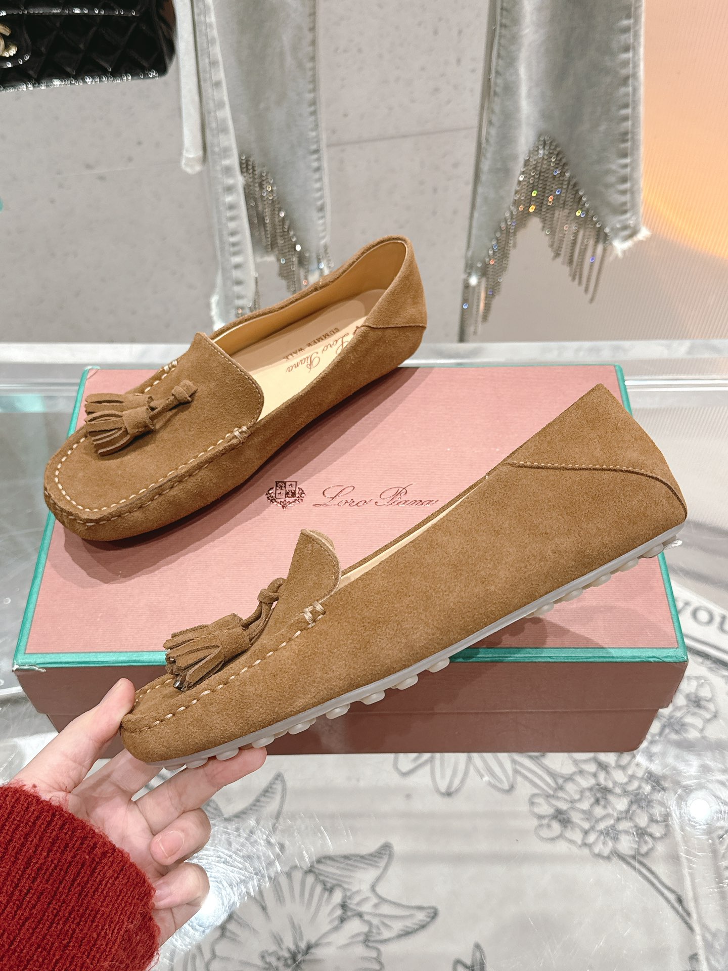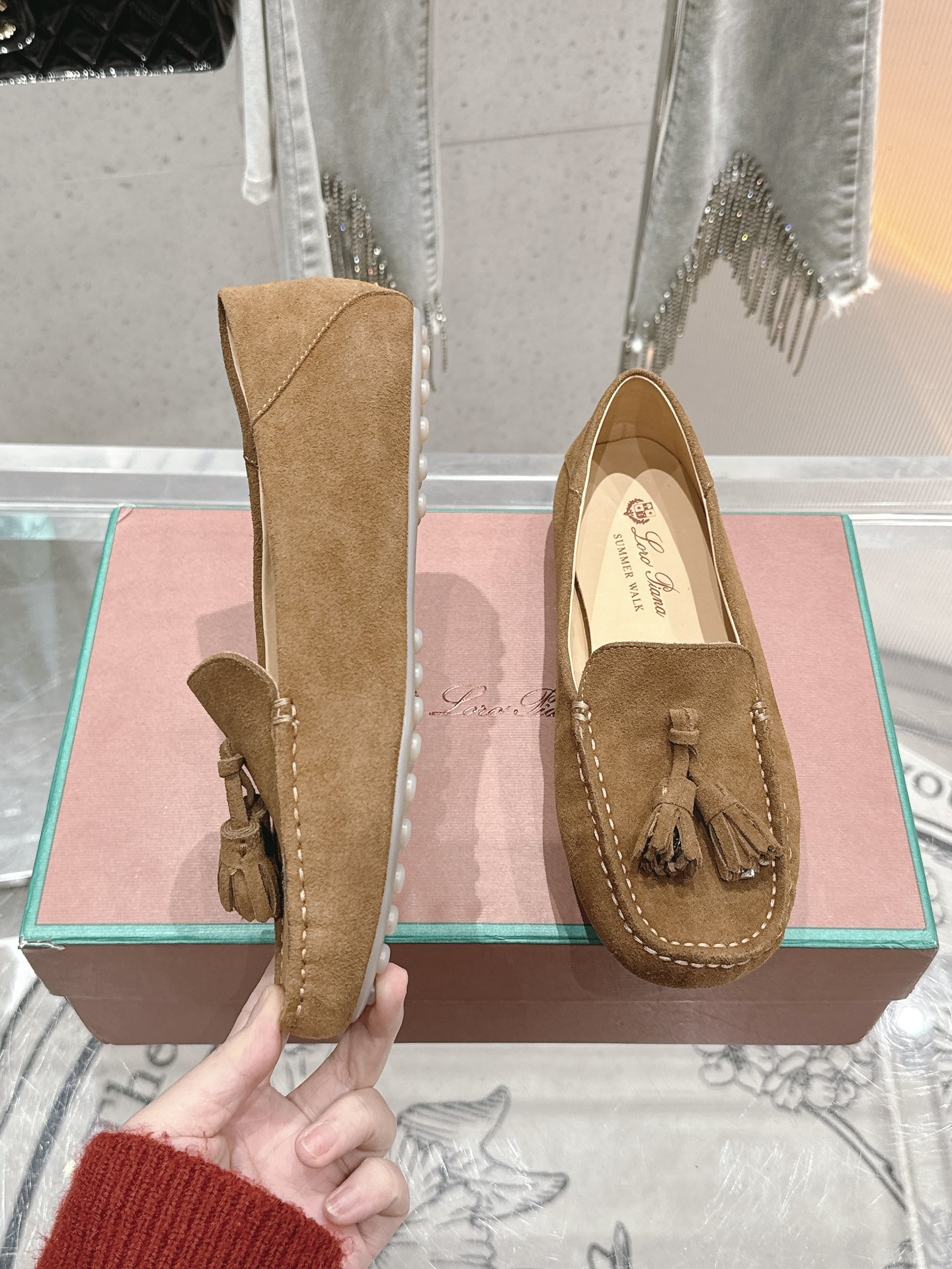 这款鞋子是AAAAA 1:1 质量 (非常棒). 使用了和原版一模一样的材料. 商标部分也保持了和洛罗皮亚纳/Loro Piana一样. 图片拍摄是实物鞋子拍摄, 您所收到的实物保证和我们图片一模一样.