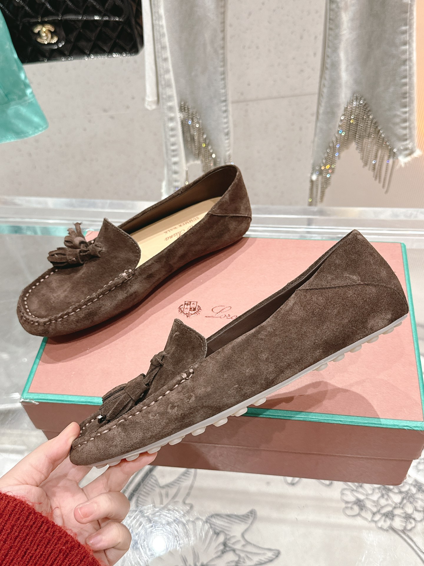 这款鞋子是AAAAA 1:1 质量 (非常棒). 使用了和原版一模一样的材料. 商标部分也保持了和洛罗皮亚纳/Loro Piana一样. 图片拍摄是实物鞋子拍摄, 您所收到的实物保证和我们图片一模一样.
