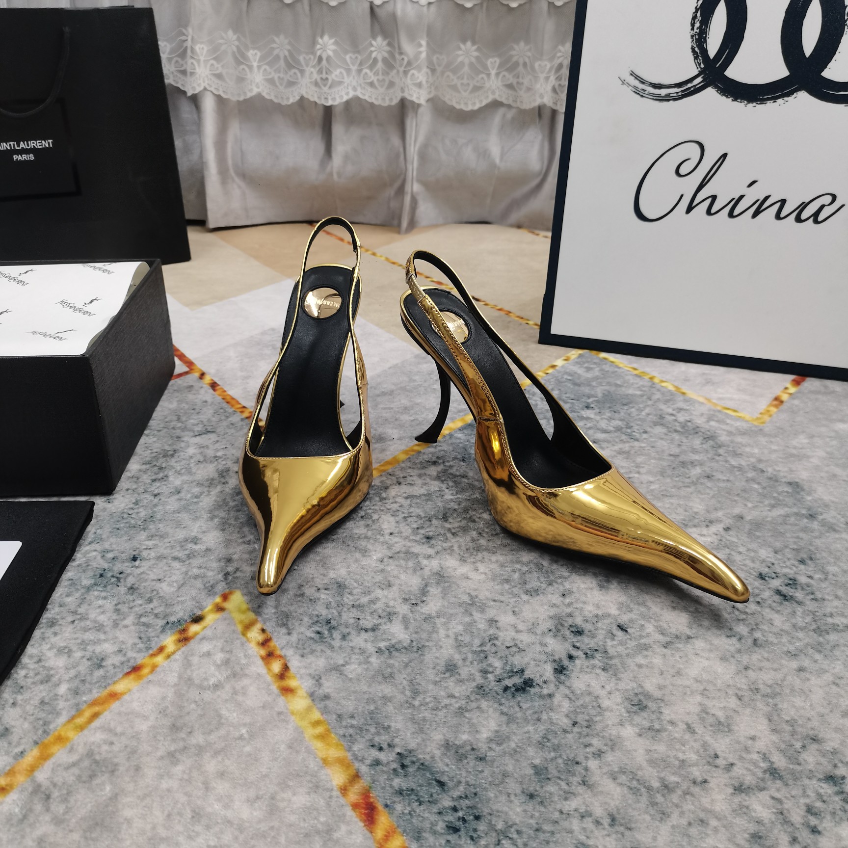 这款鞋子是AAAAA 1:1 质量 (非常棒). 使用了和原版一模一样的材料. 商标部分也保持了和圣罗兰/Saint Laurent一样. 图片拍摄是实物鞋子拍摄, 您所收到的实物保证和我们图片一模一样.