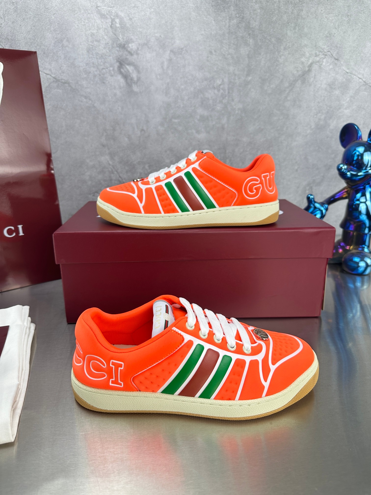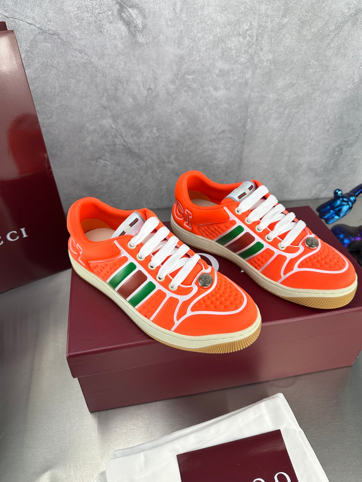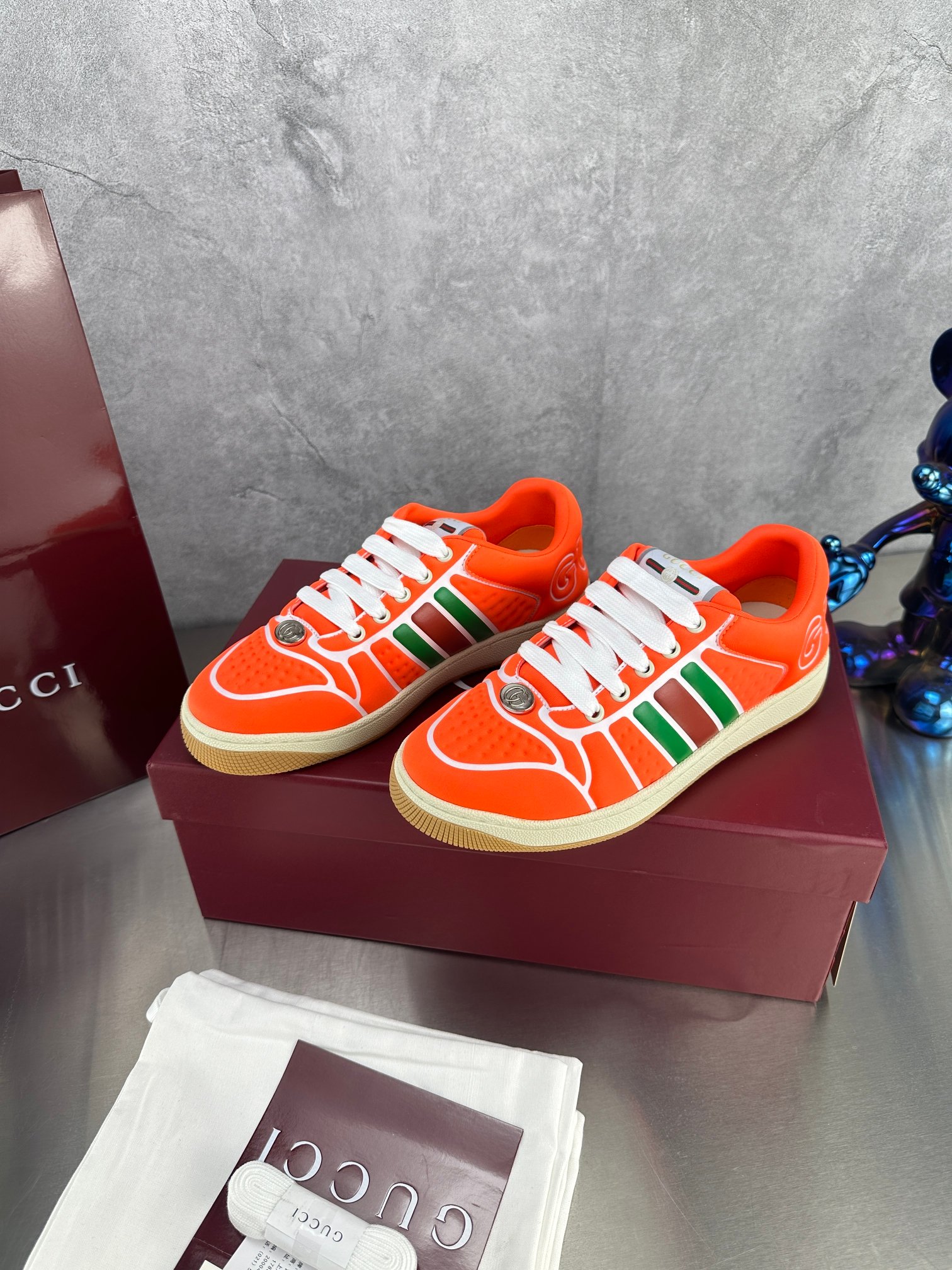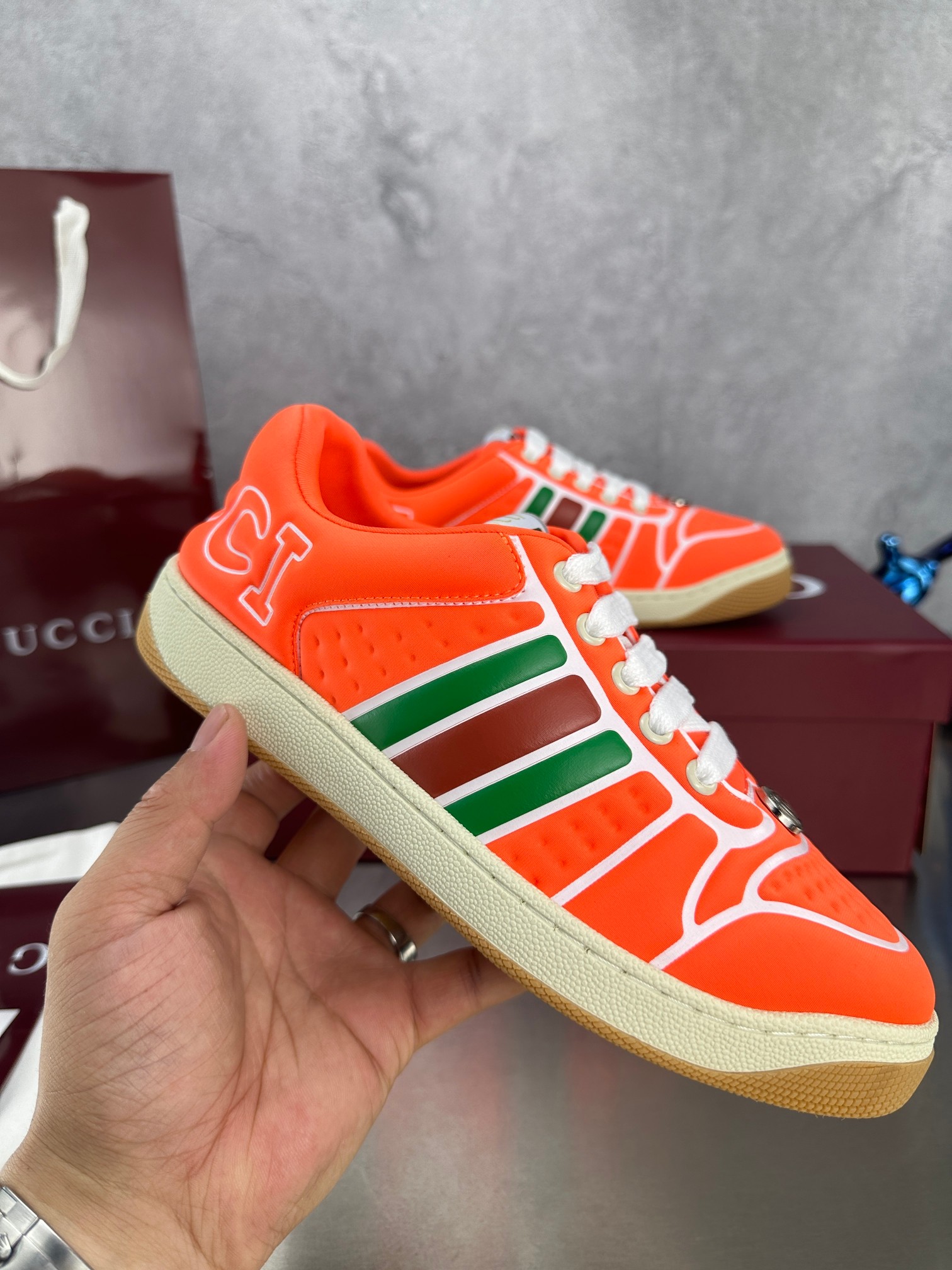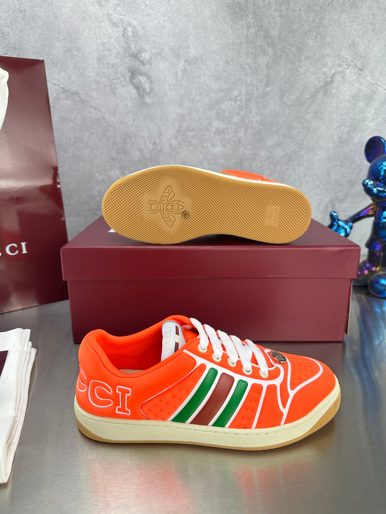 这款鞋子是AAAAA 1:1 质量 (非常棒). 使用了和原版一模一样的材料. 商标部分也保持了和古奇/Gucci一样. 图片拍摄是实物鞋子拍摄, 您所收到的实物保证和我们图片一模一样.